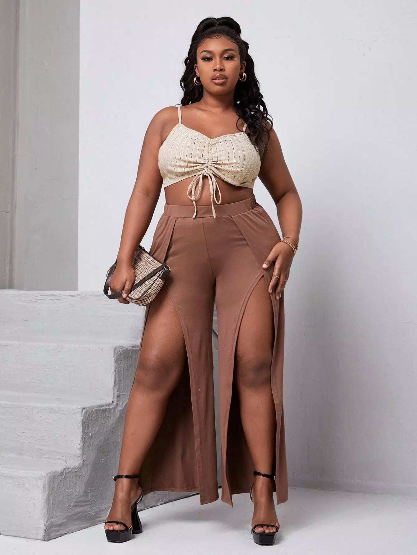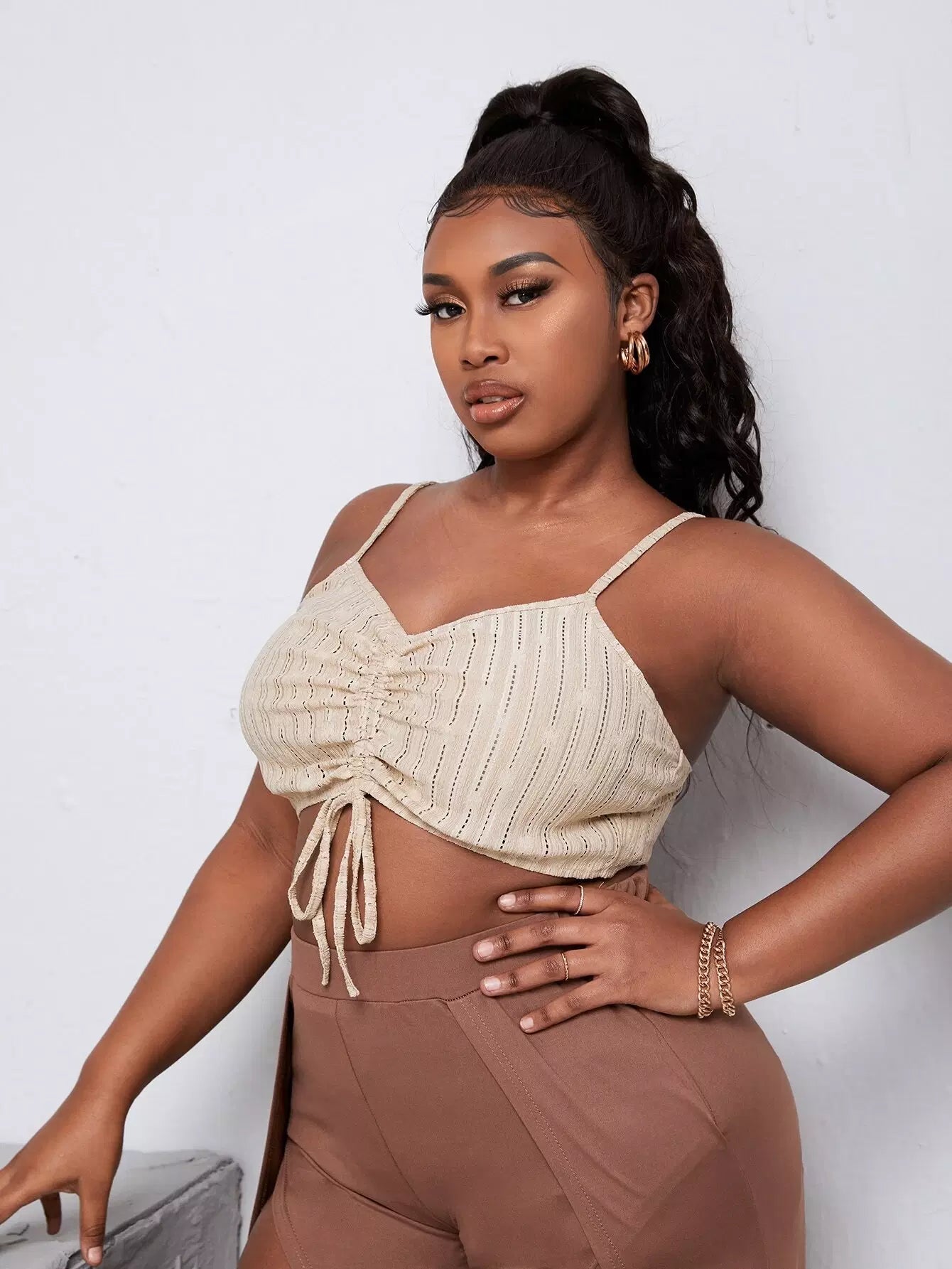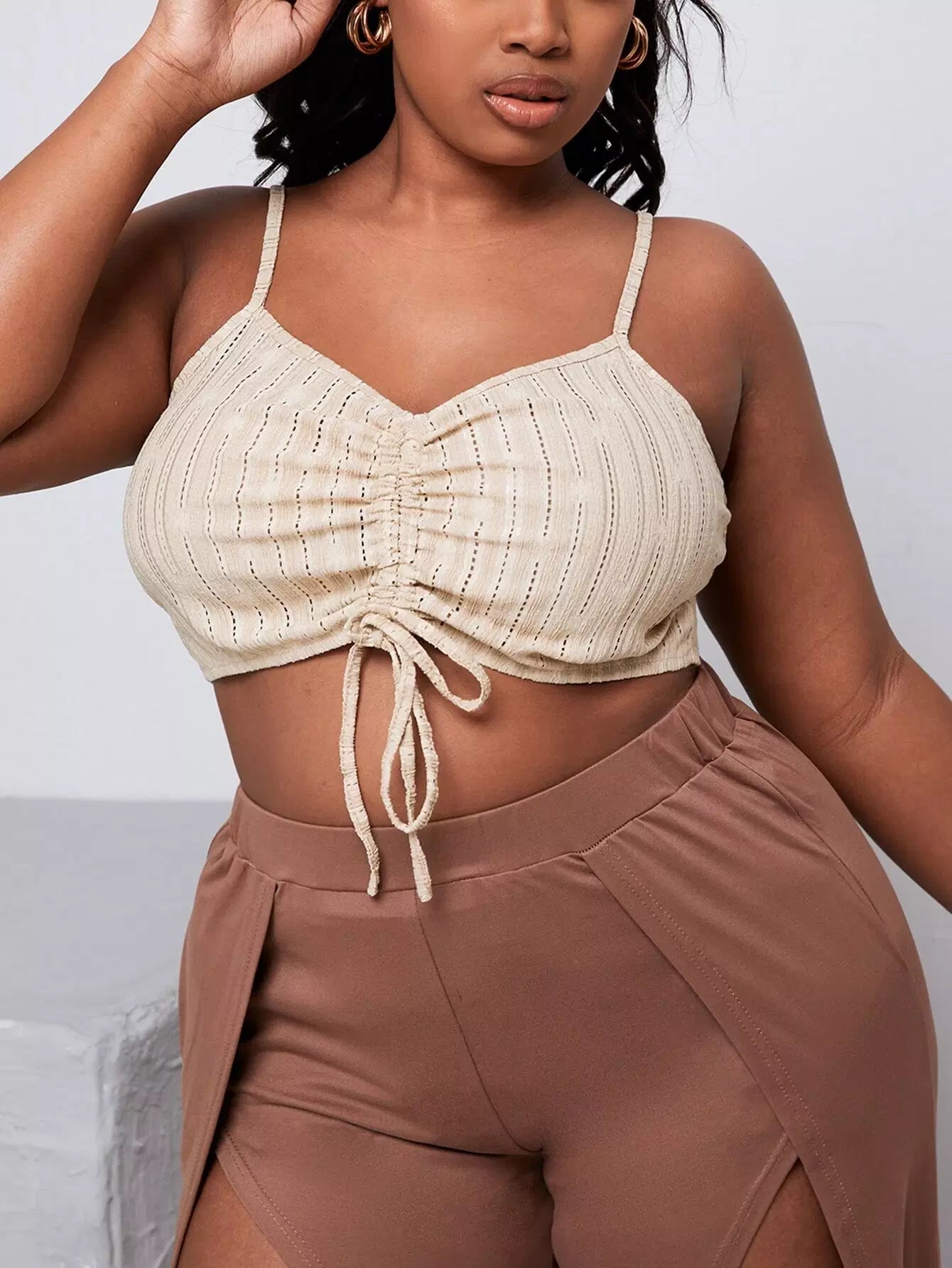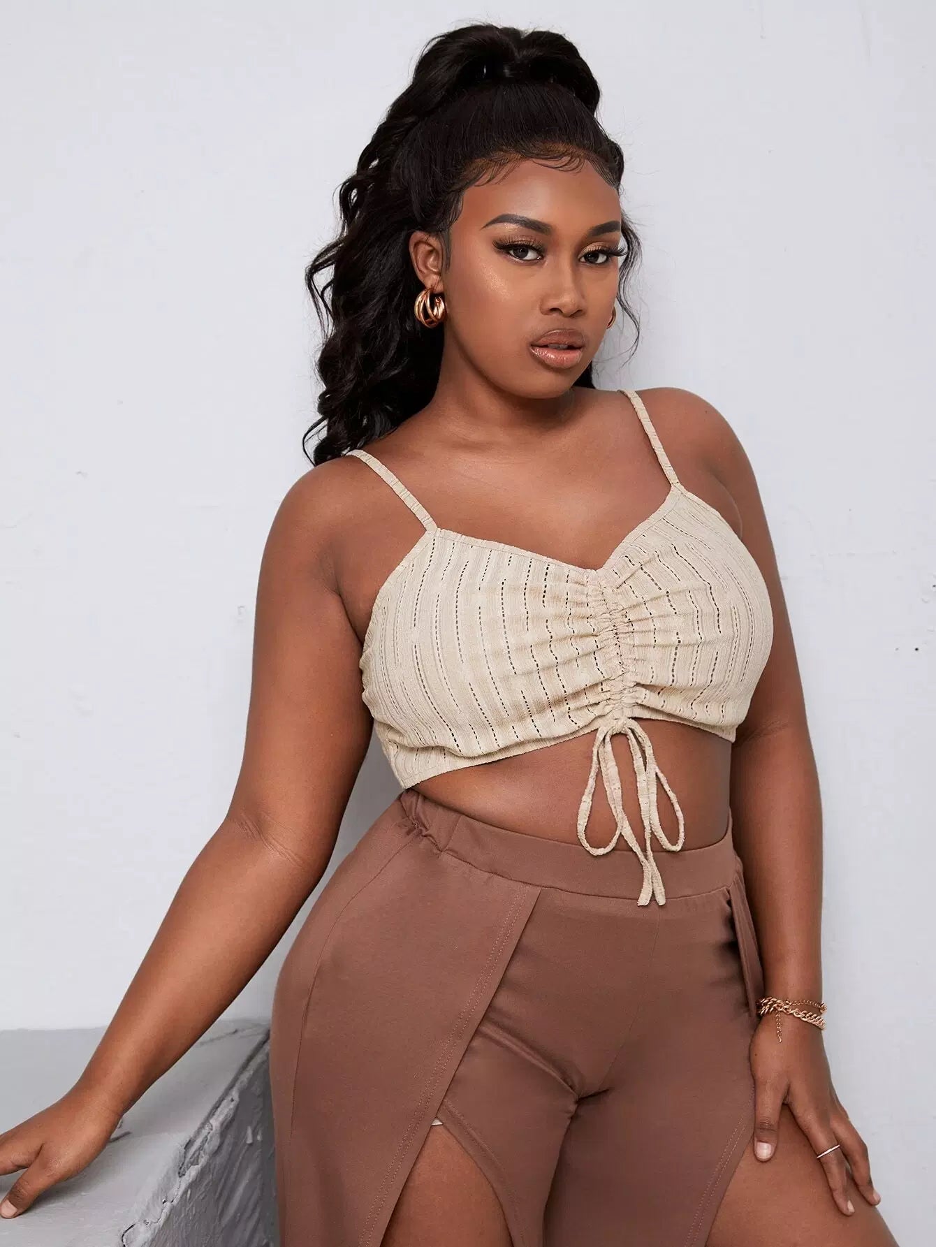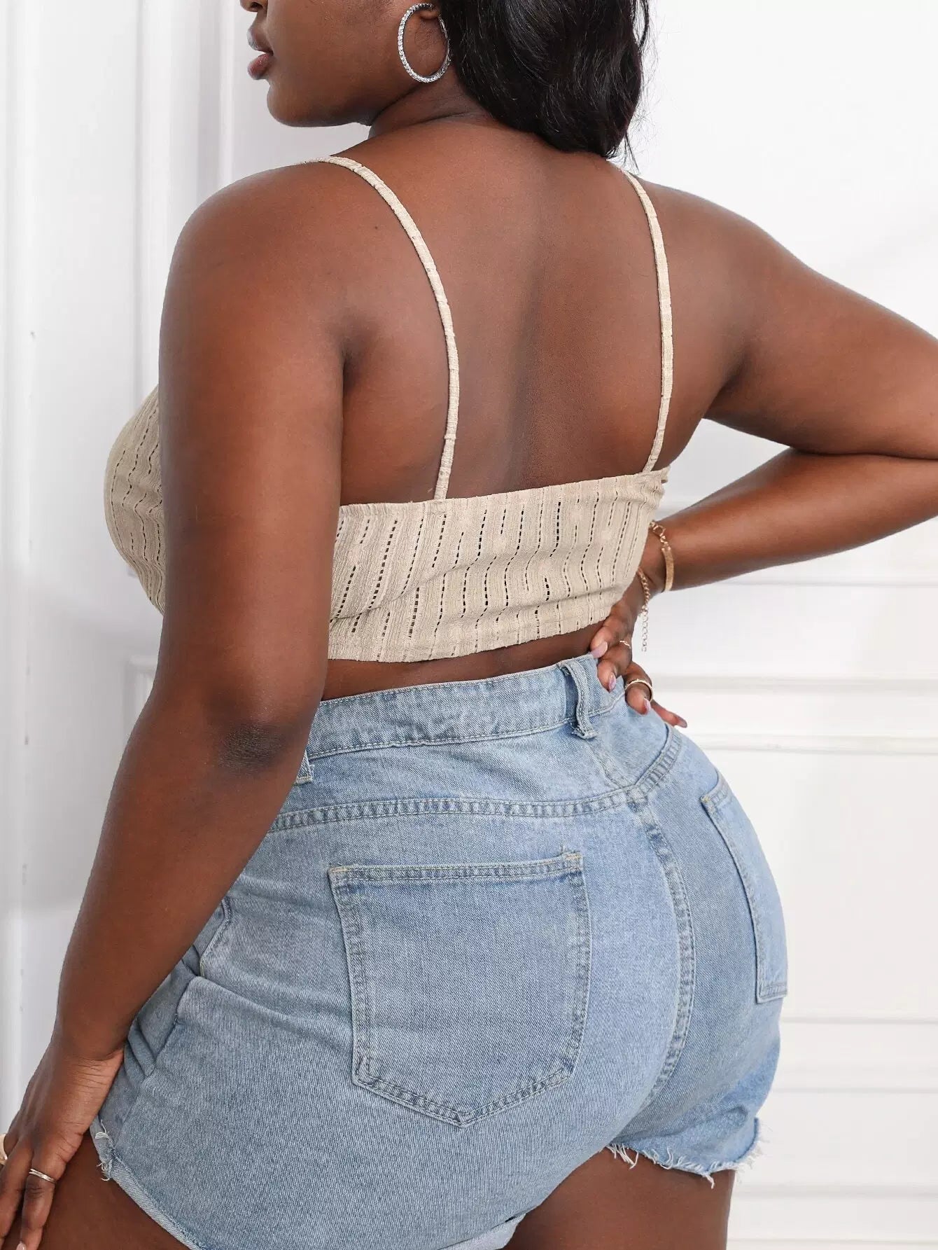 بلوزة قصيرة قصيرة من الأمام برباط أمامي مزين بفتحة عينيه زائد