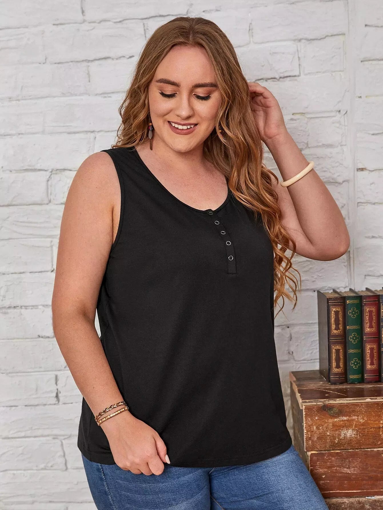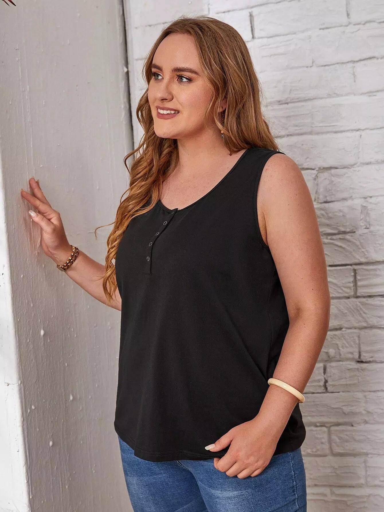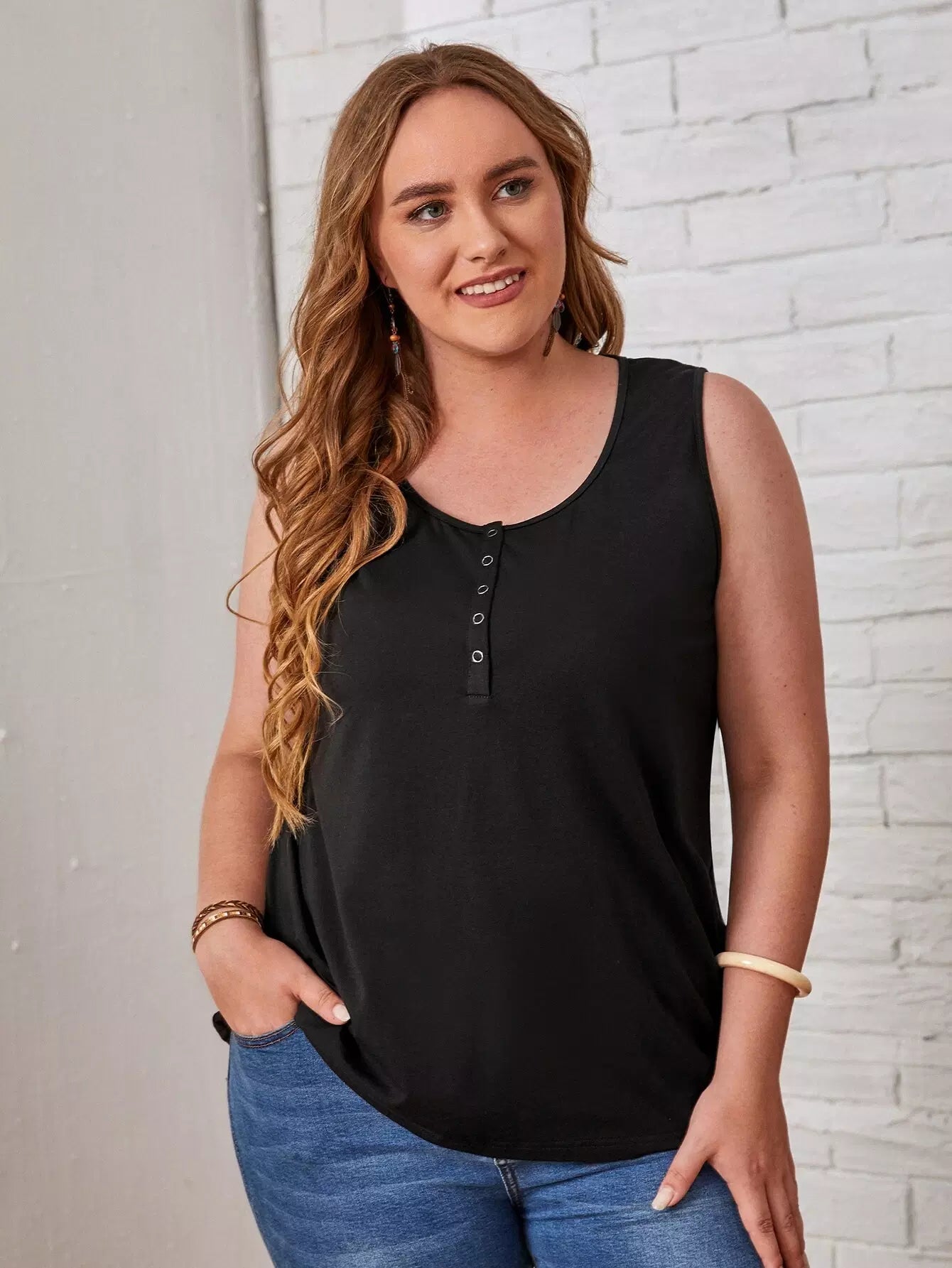 بلوزة بدون أكمام نصف مضغوطة بأزرار أمامية بأزرار نصف مضغوطة