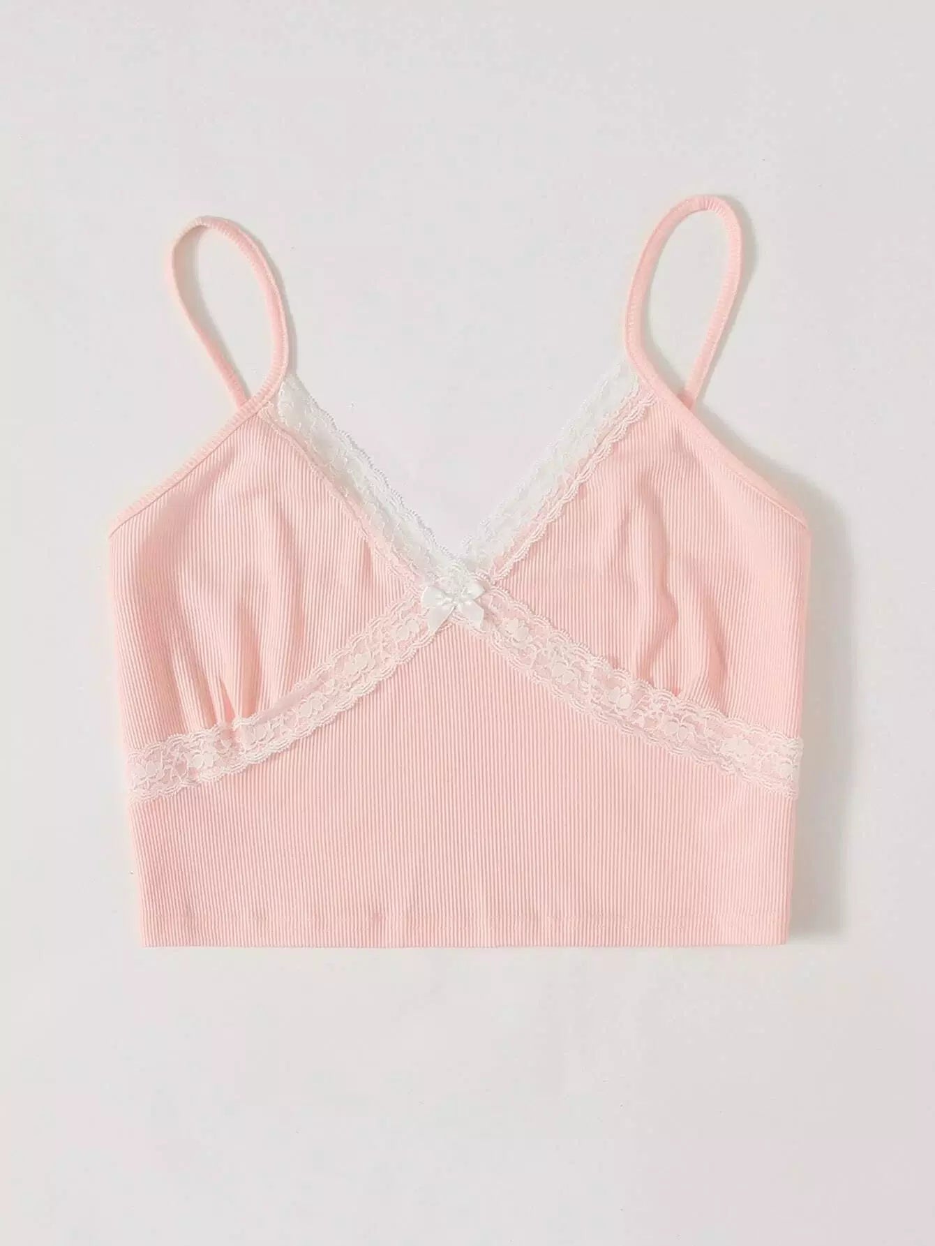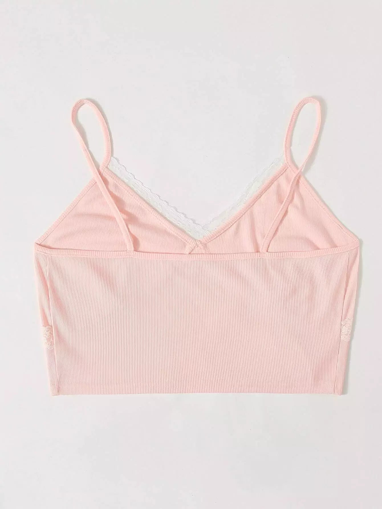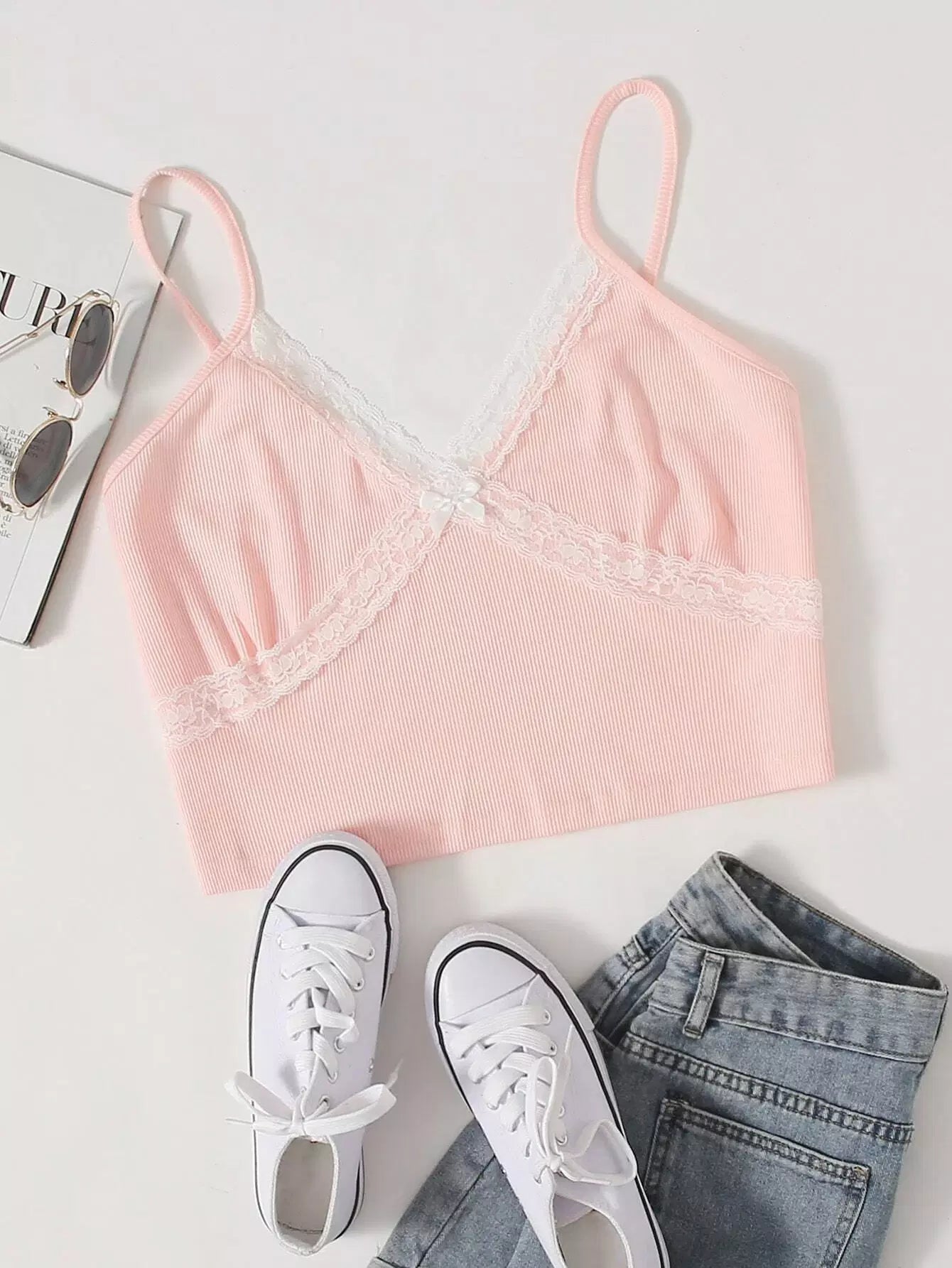 بلوزة قصيرة قصيرة بحواف من الدانتيل بدون أكمام
