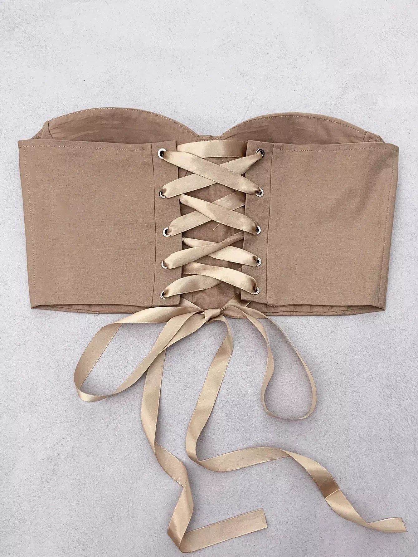 بلوزة بدون أكمام بأربطة من الخلف برباط من أعلى الصدرية