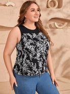 توب بدون أكمام بطبعة أوراق الشجر