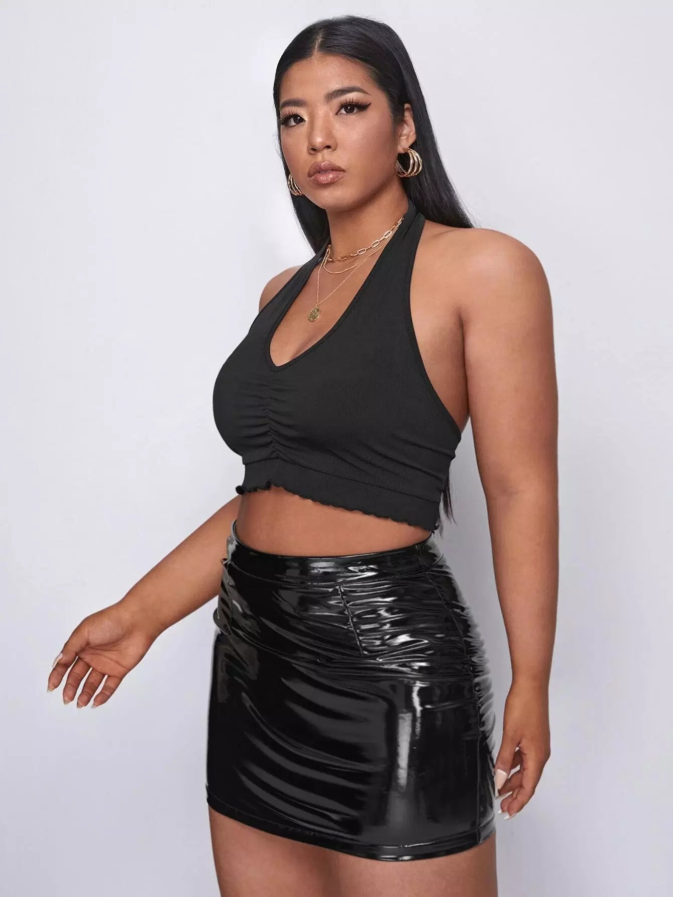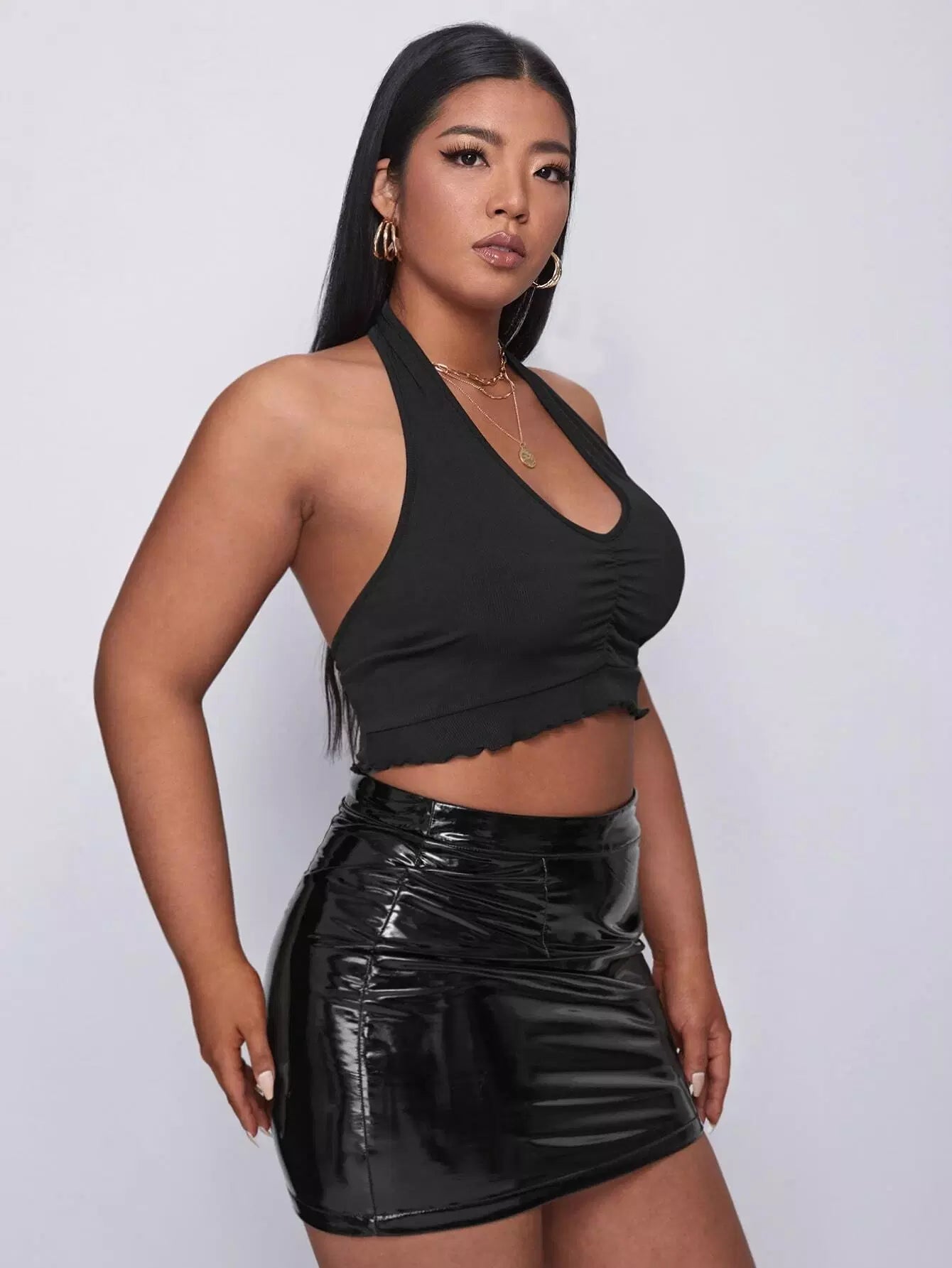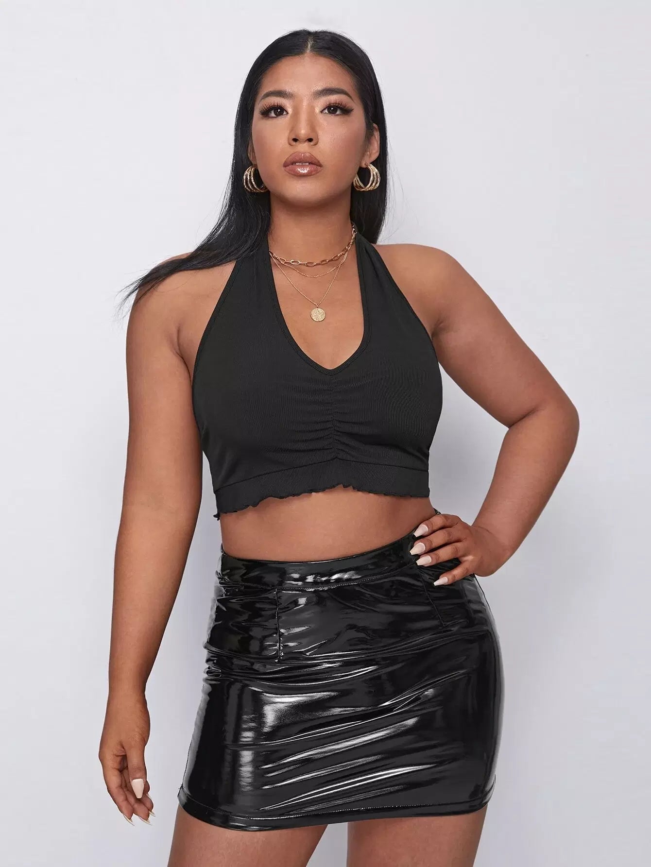 بلوزة بلا أكمام مزينة بالخس بدون رسن بدون أكمام