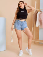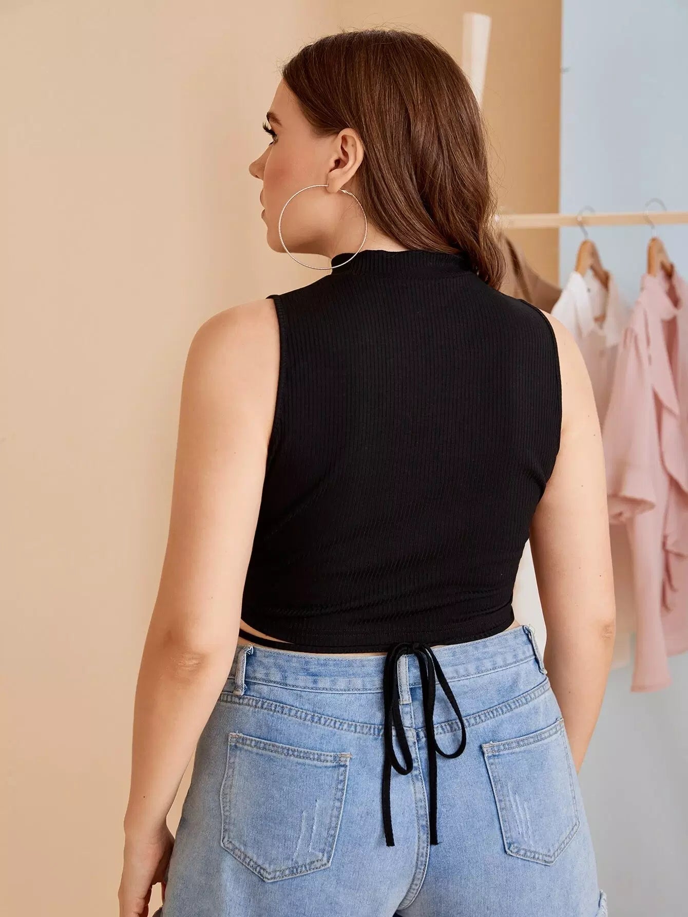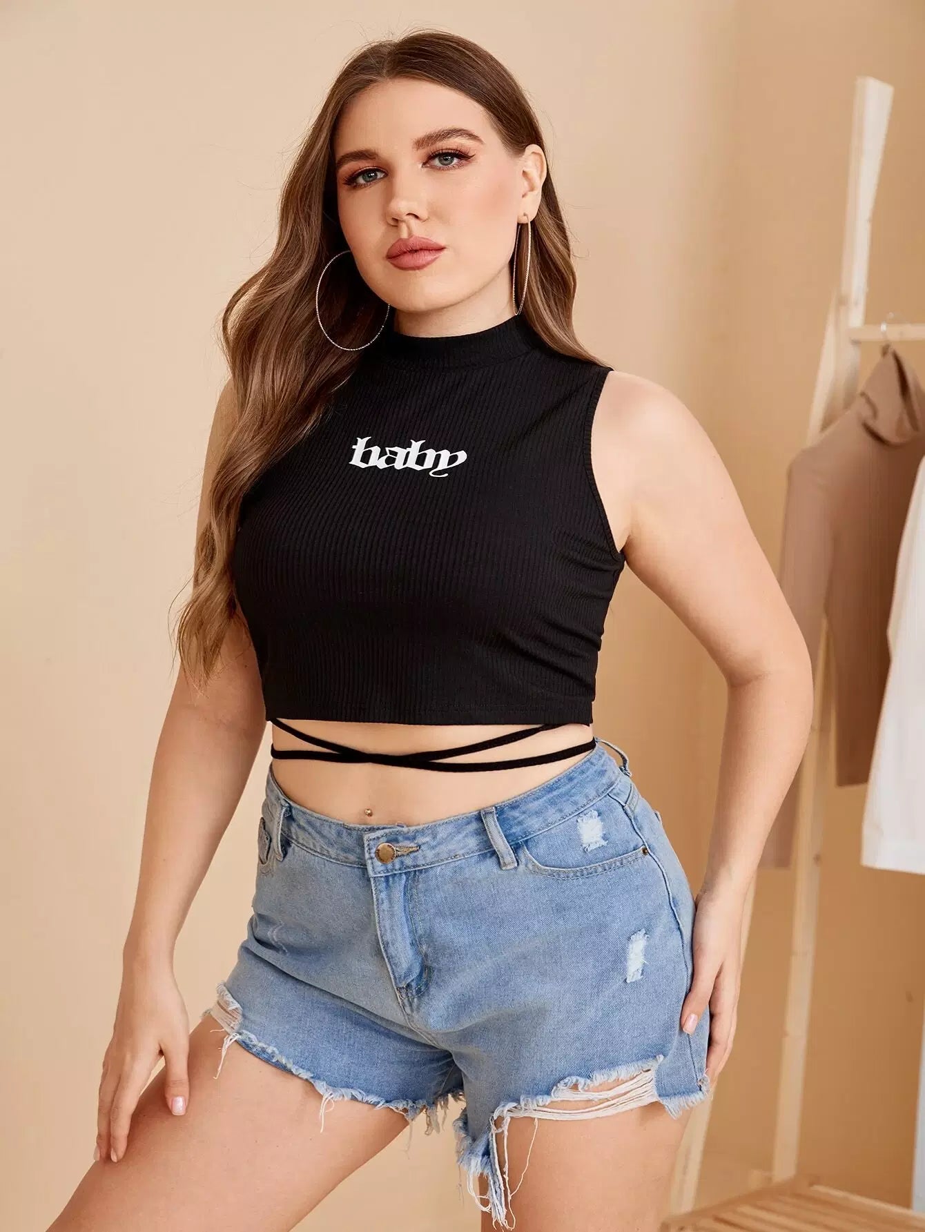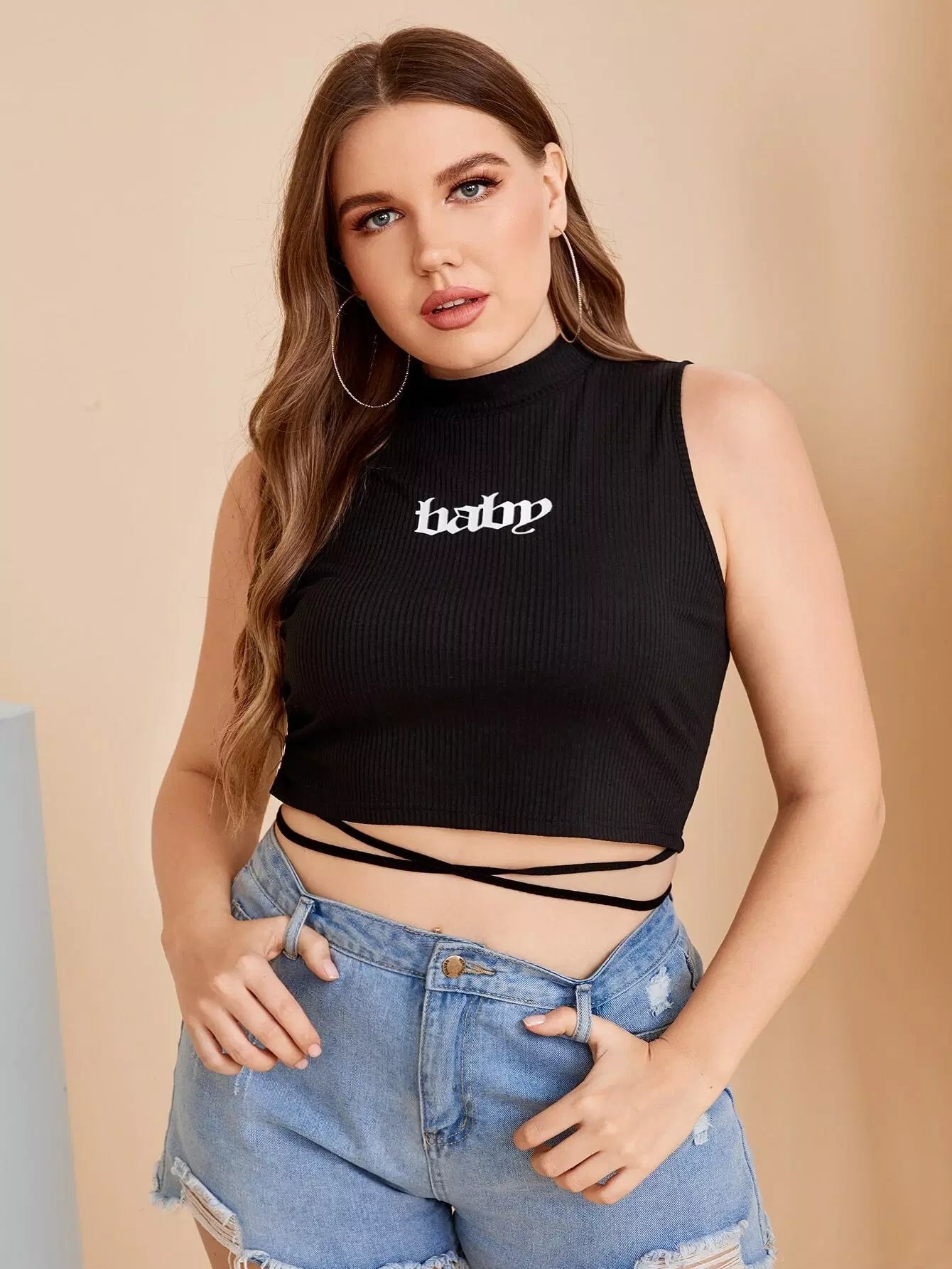 تانك برقبة زائد بياقة على شكل حرف جرافيك كريسكروس بربطة ظهر