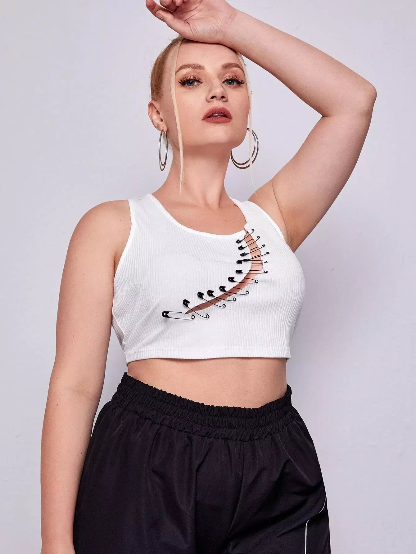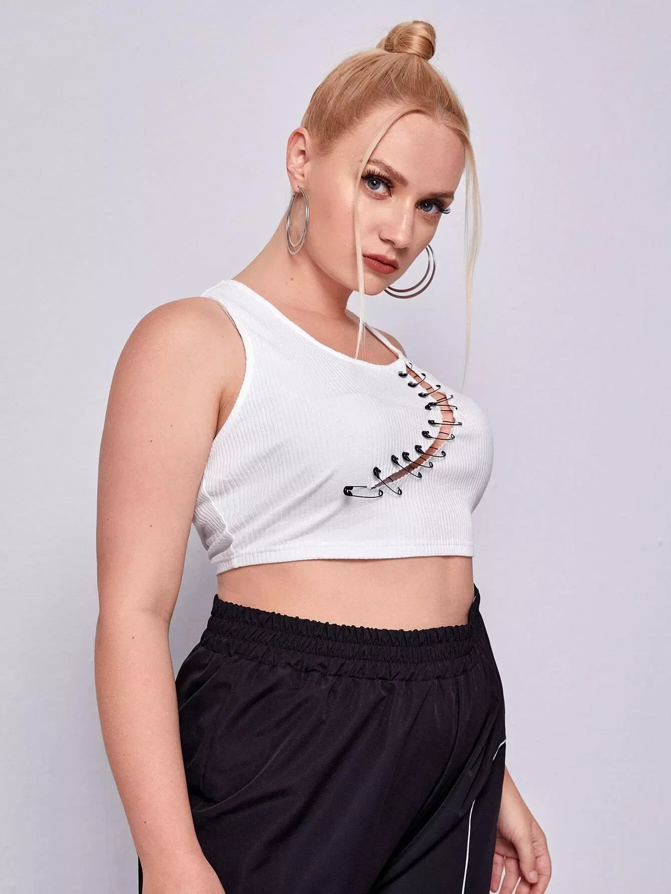 تانك بدون أكمام بفتحة من الأمام بمشبك ورقي زائد