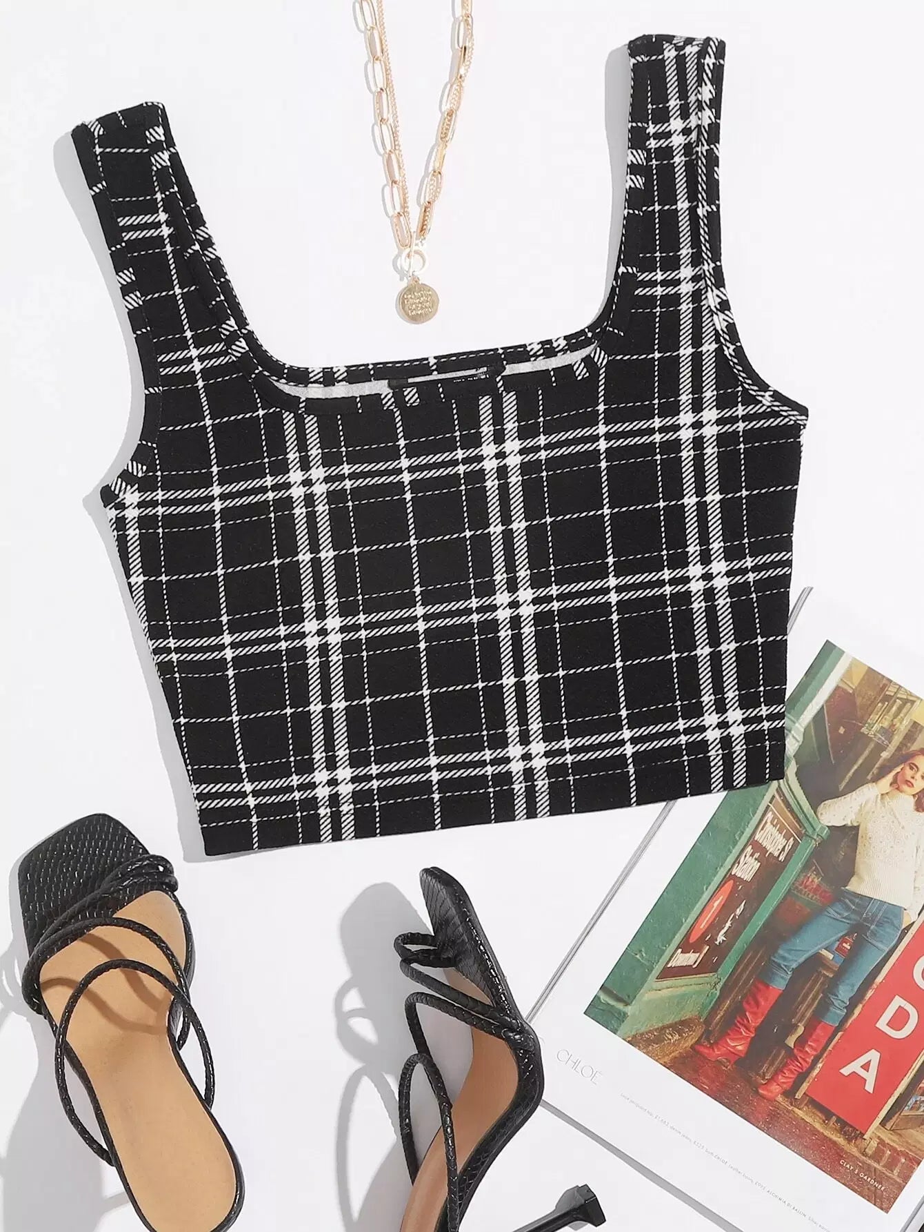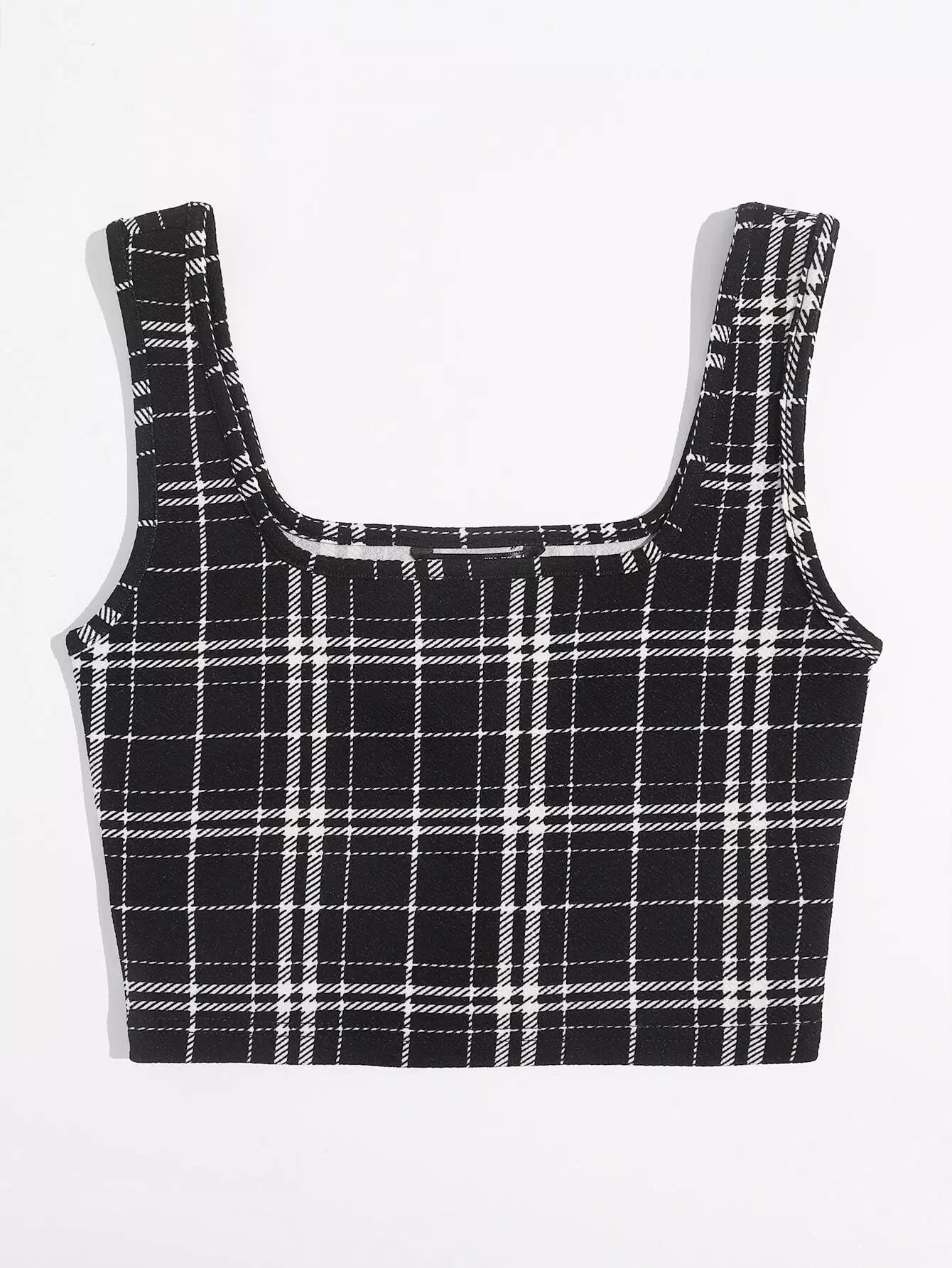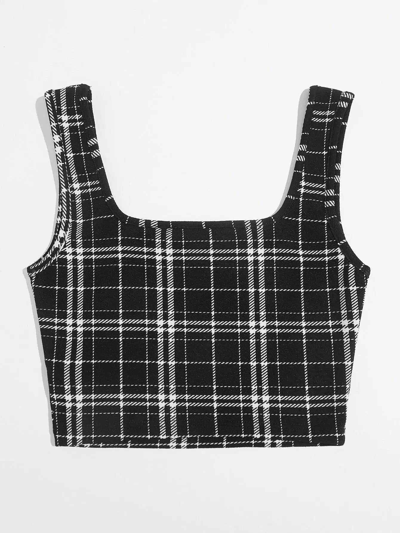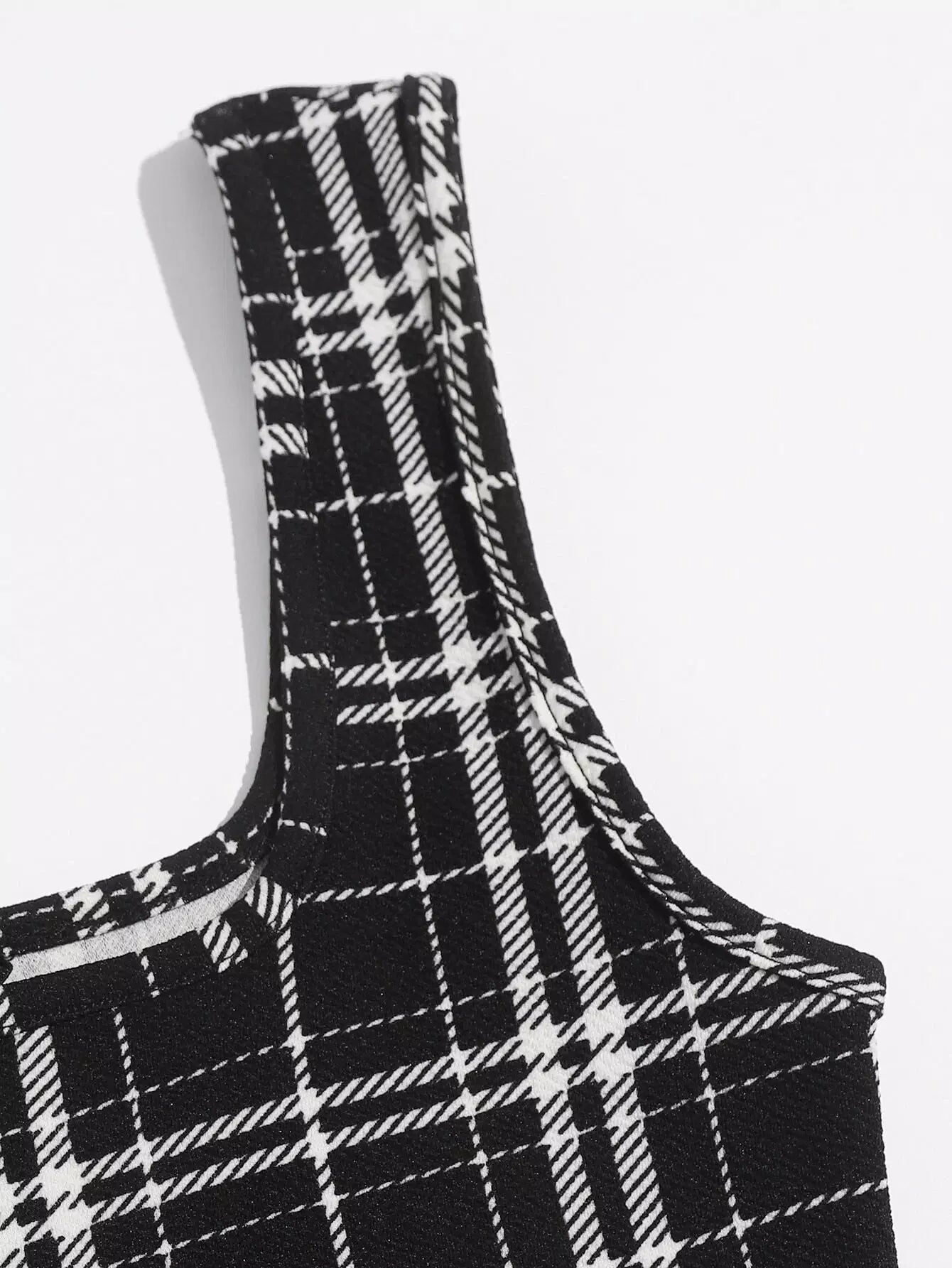 تانك بدون أكمام قصيرة منقوشة بنقشة زائد