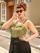 بلوزة قصيرة منقّطة بأزرار أمامية بأزرار منقّطة