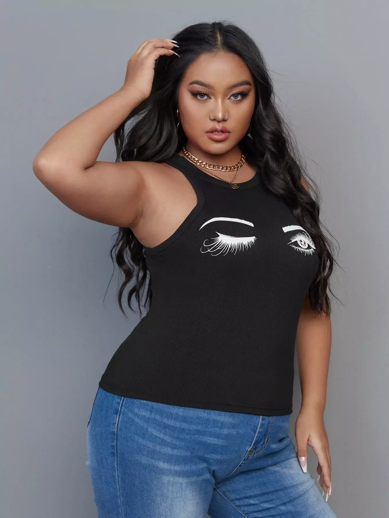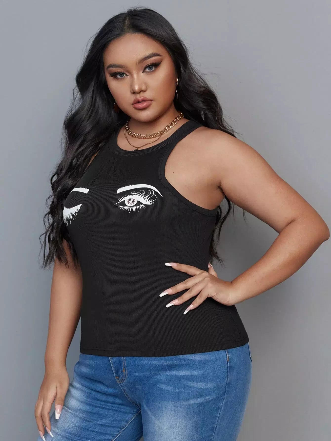 تانك بدون أكمام بنقشة عيون مضلعة زائد