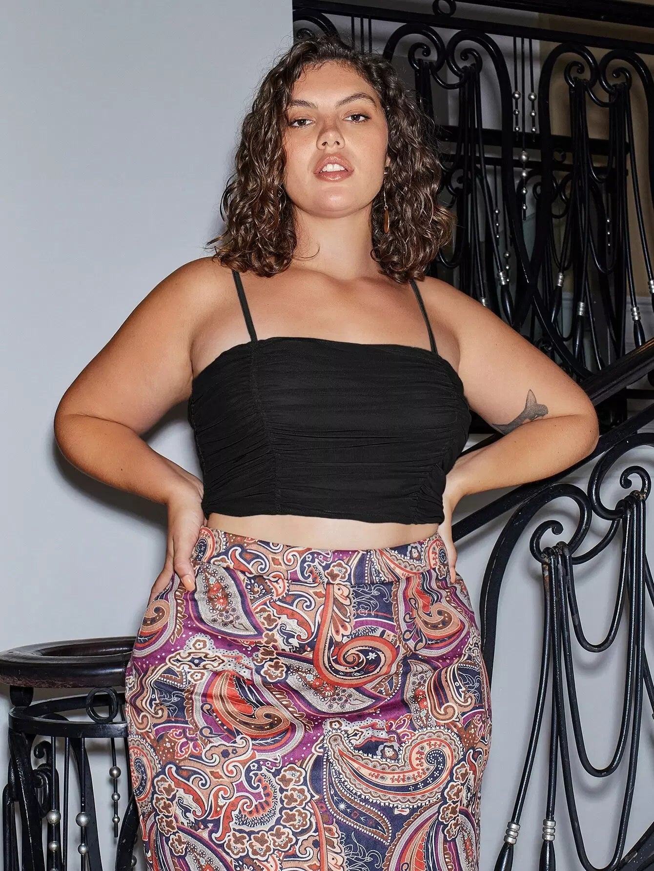 بلوزة قصيرة مكشكشة مكشكشة بلس قصير قصير شبكي