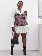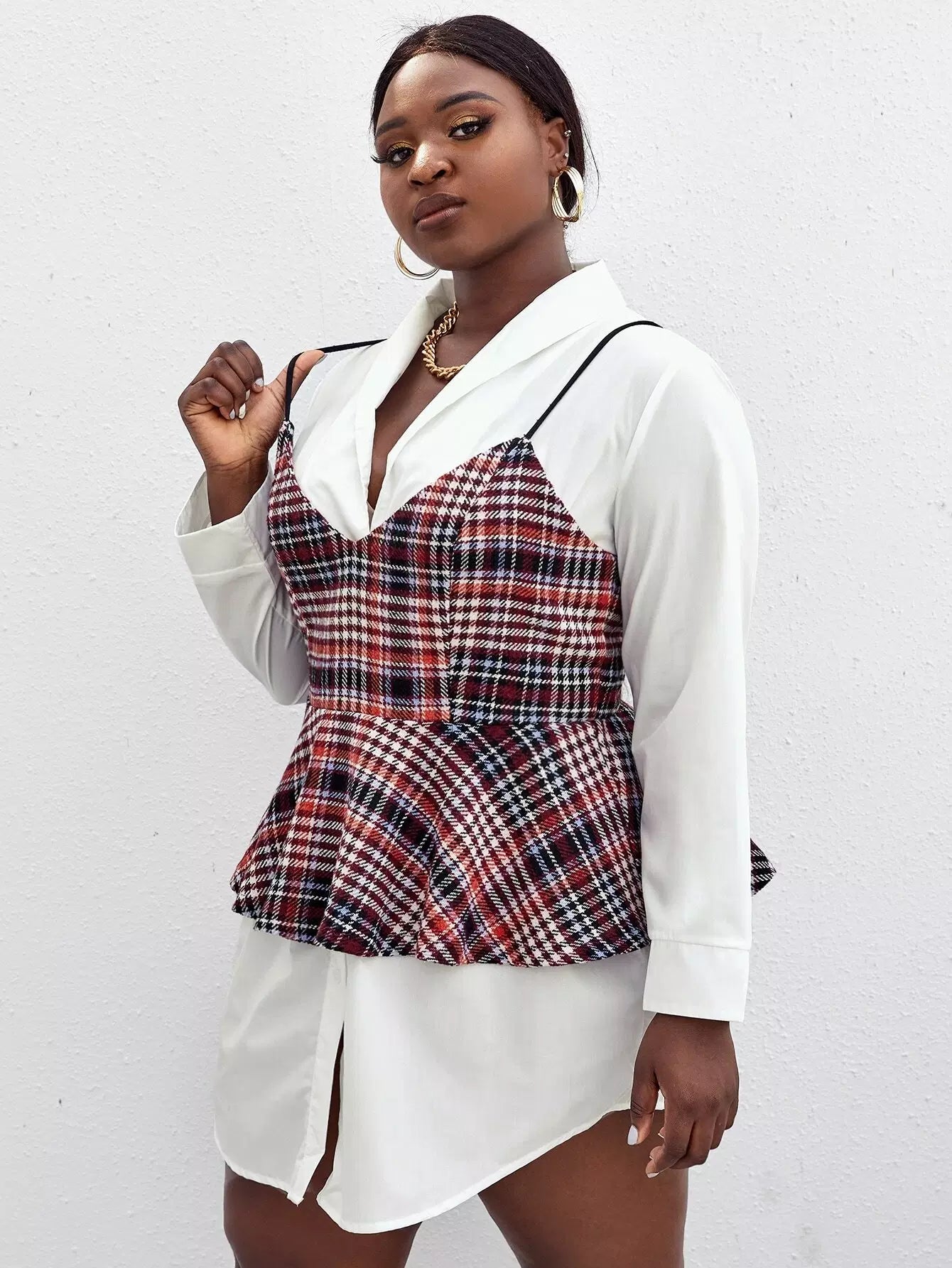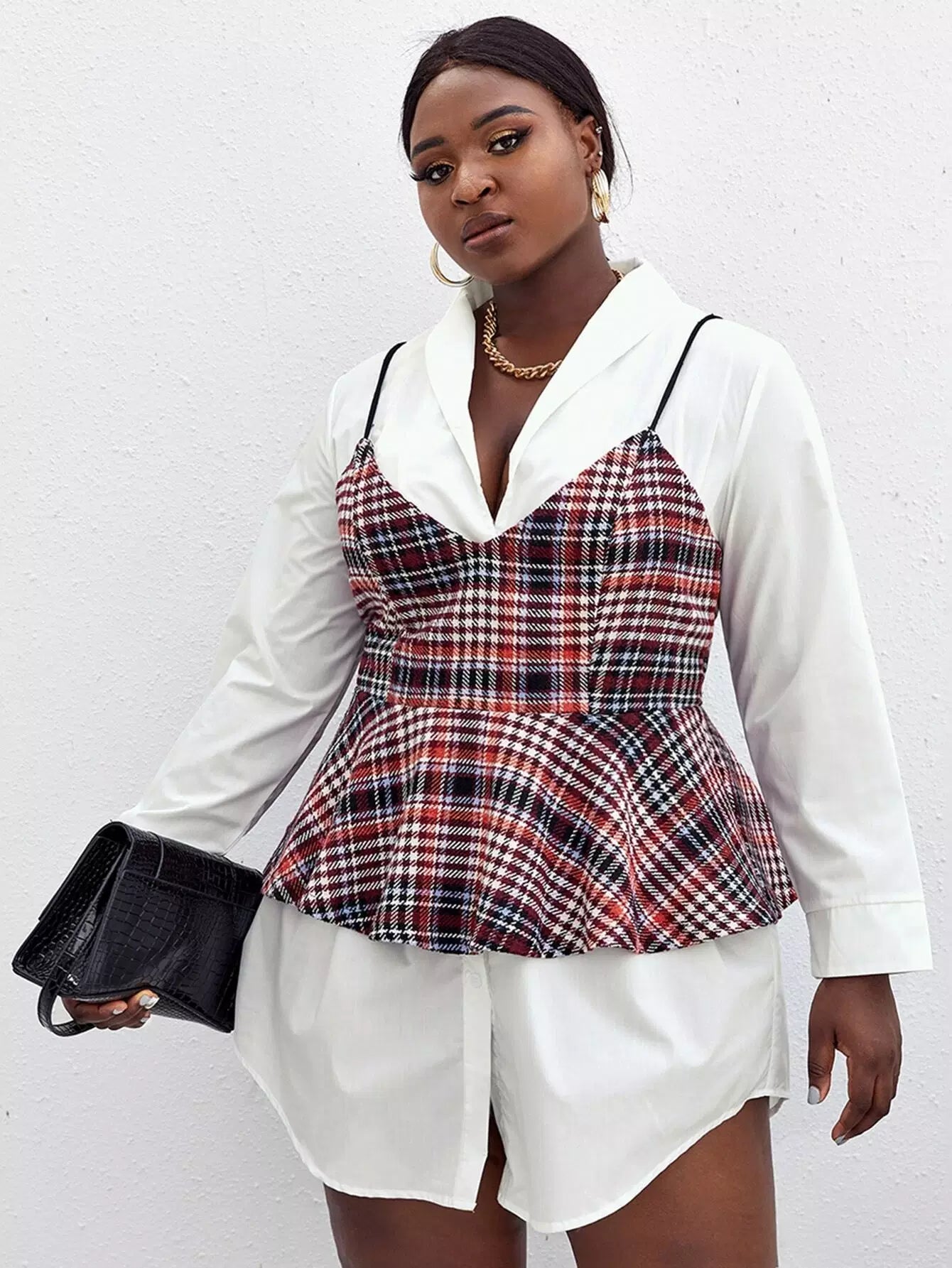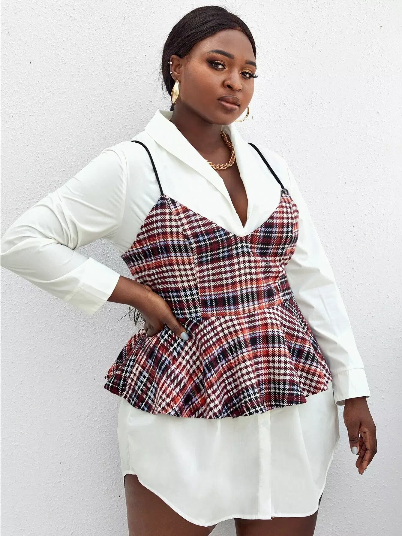 بلوزة كشكش بحاشية مكشكشة منقوشة بلاسيه بلس