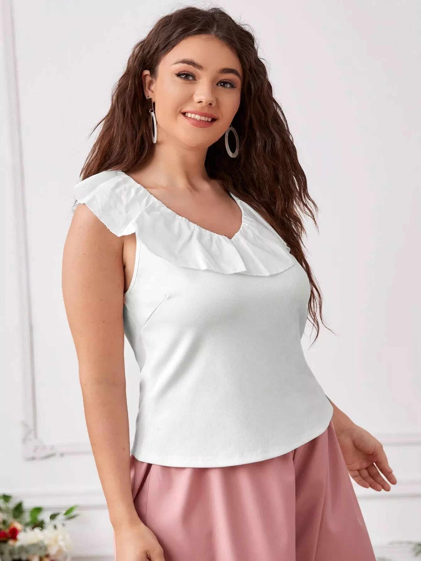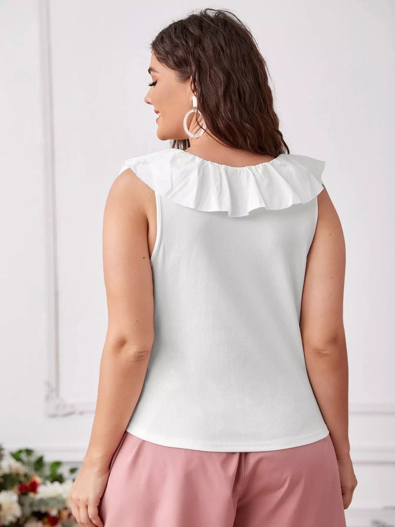 بلوزة بدون أكمام مكشكشة على شكل حرف V بياقة على شكل V