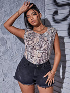 بلوزة بدون أكتاف مطبوع عليها جلد الثعبان زائد