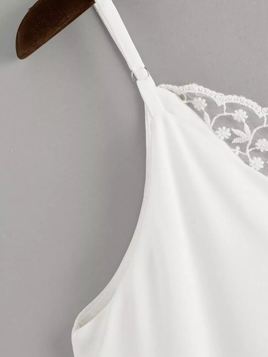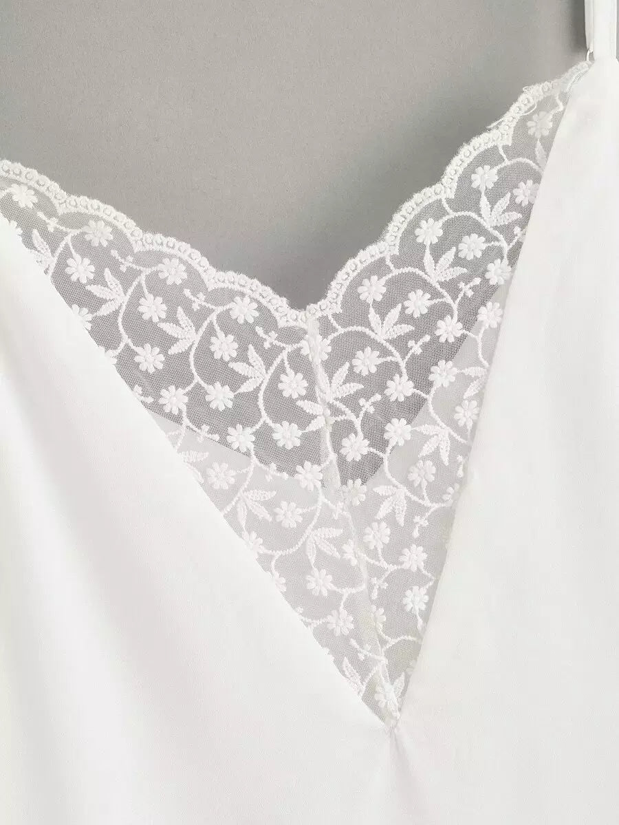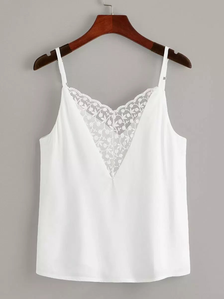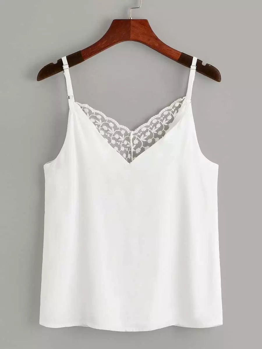 بلوزة بدون أكمام دانتيل سادة بلون مغاير