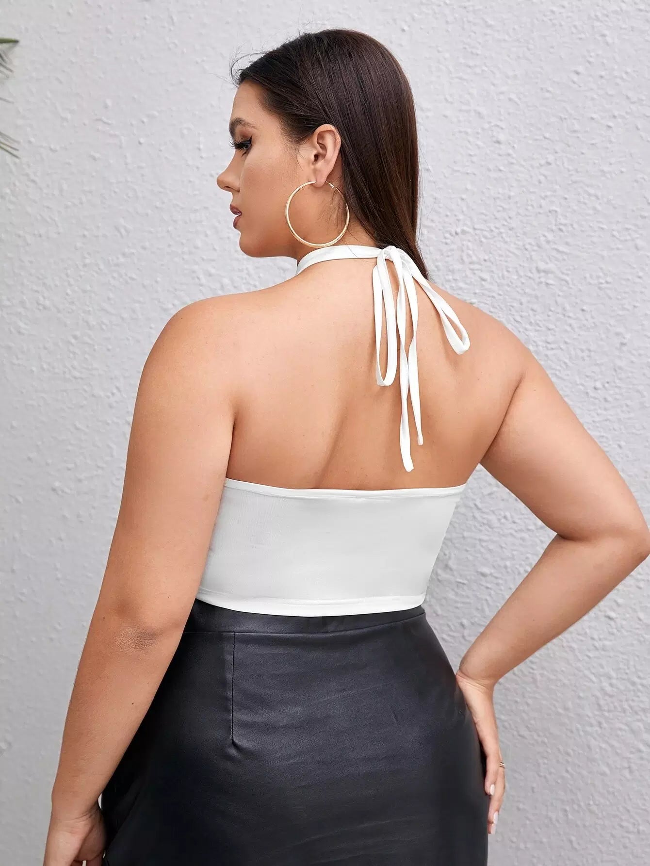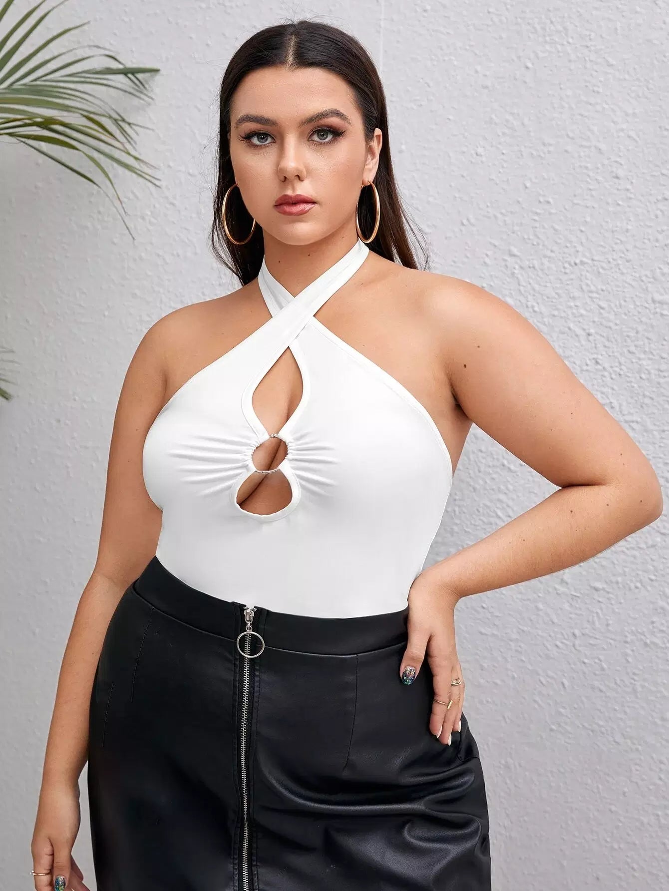 بلوزة سادة بفتحة على شكل حلقة على شكل حرف O مقطوعة من الأعلى