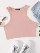 بلوزة بدون أكمام قصيرة بدون أكمام سادة بظهر رياضي سادة بلا أكمام