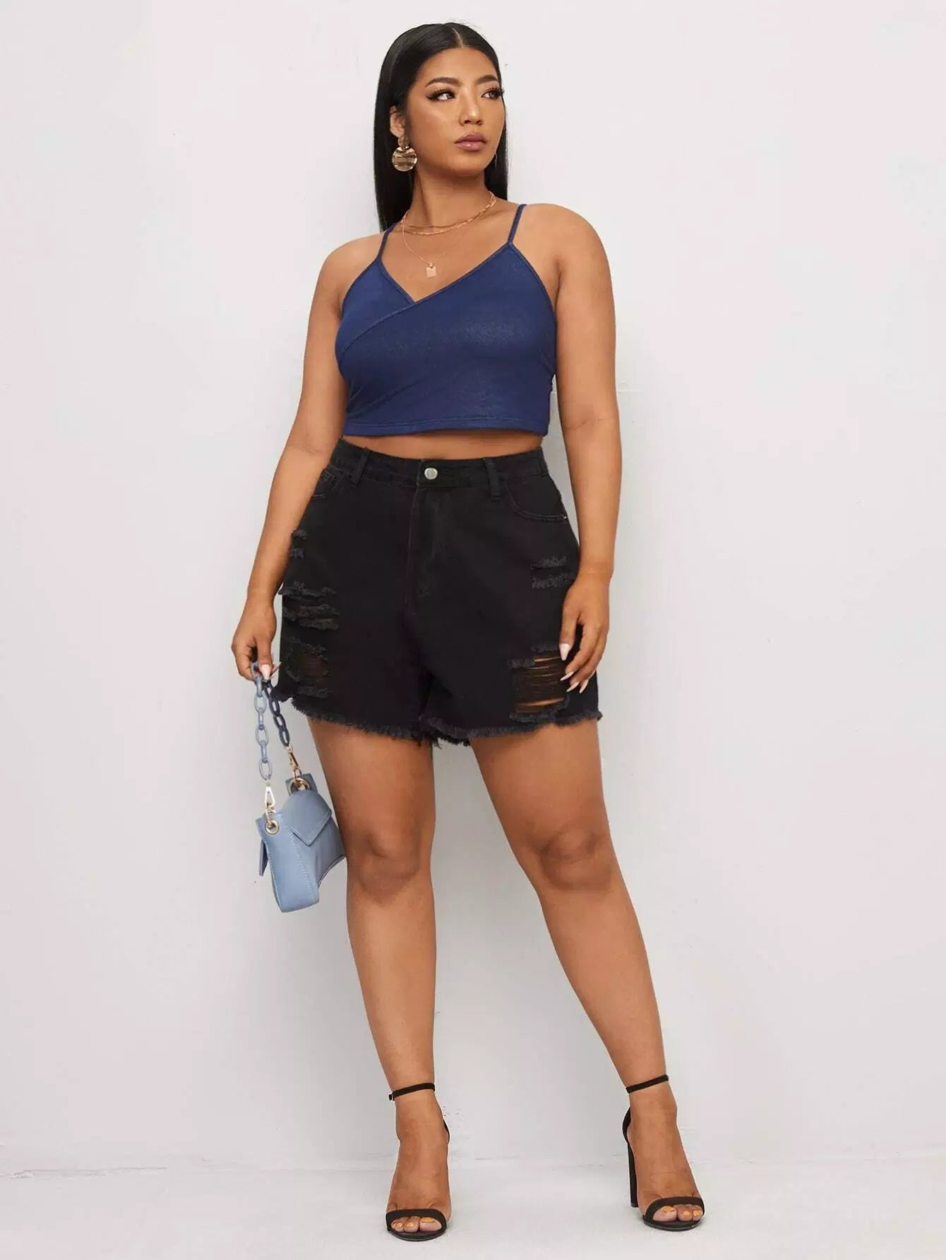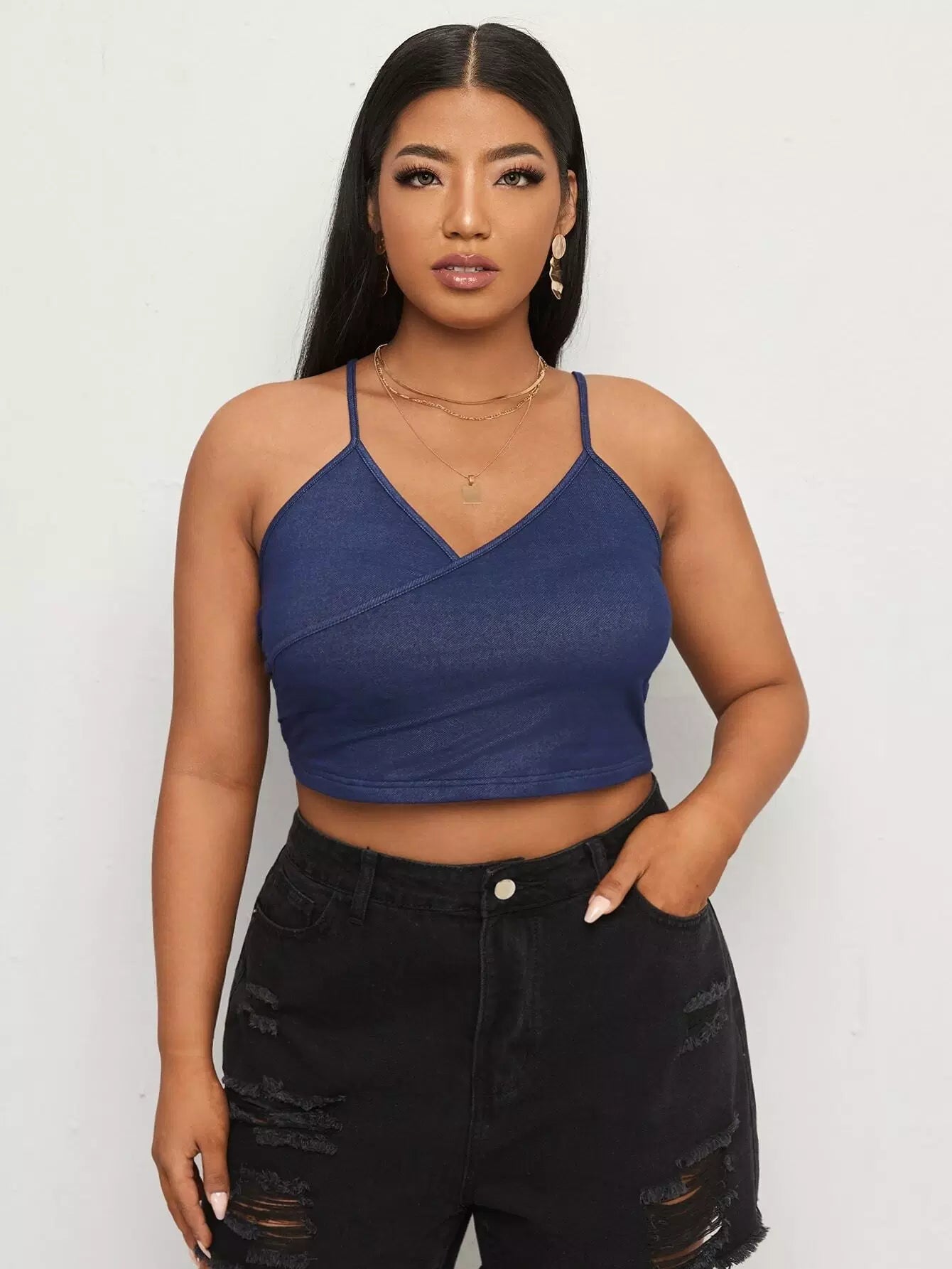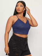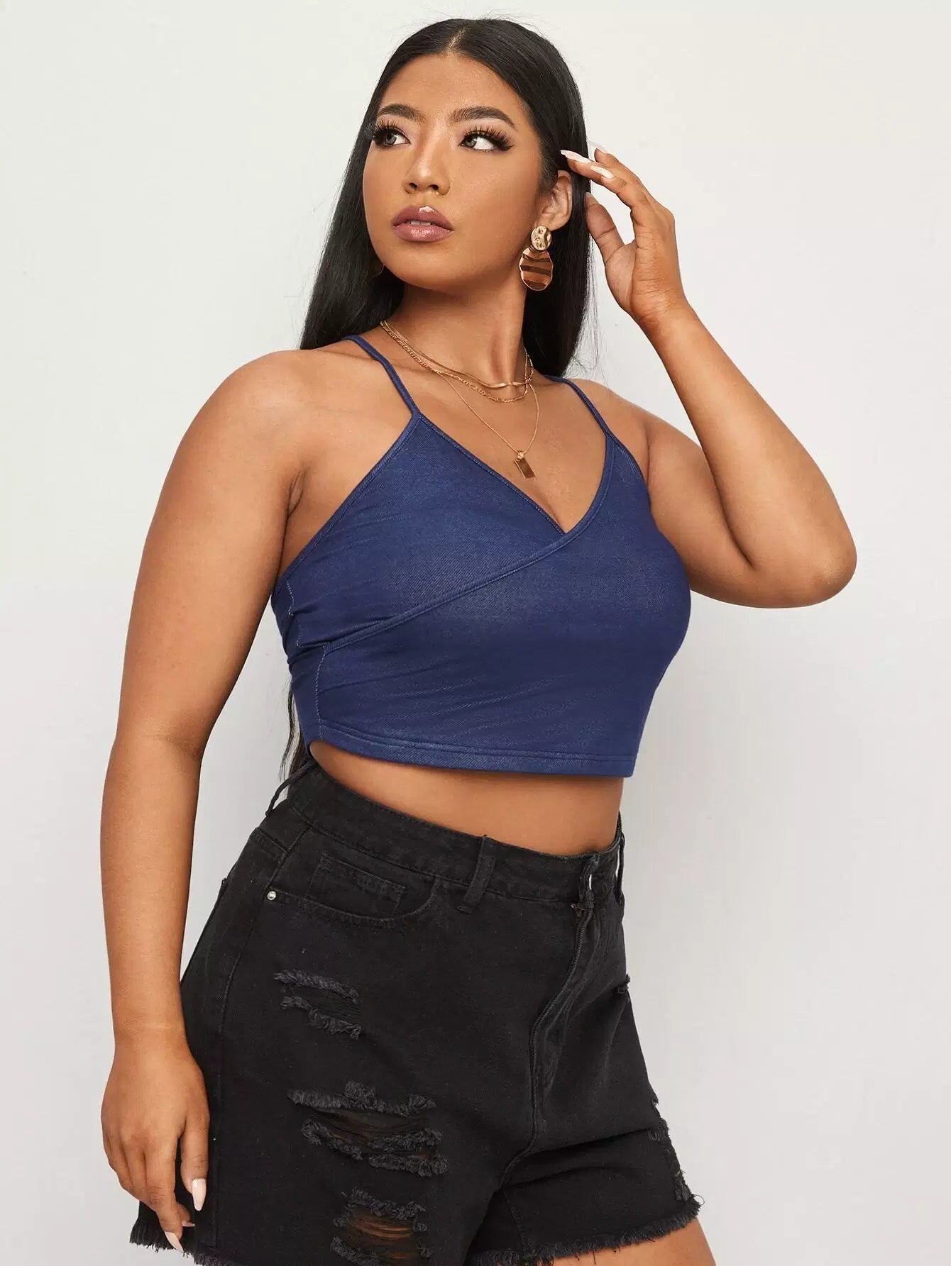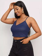 بلوزة قصيرة قصيرة قصيرة من الأمام بحمالات سادة بلاس سادة