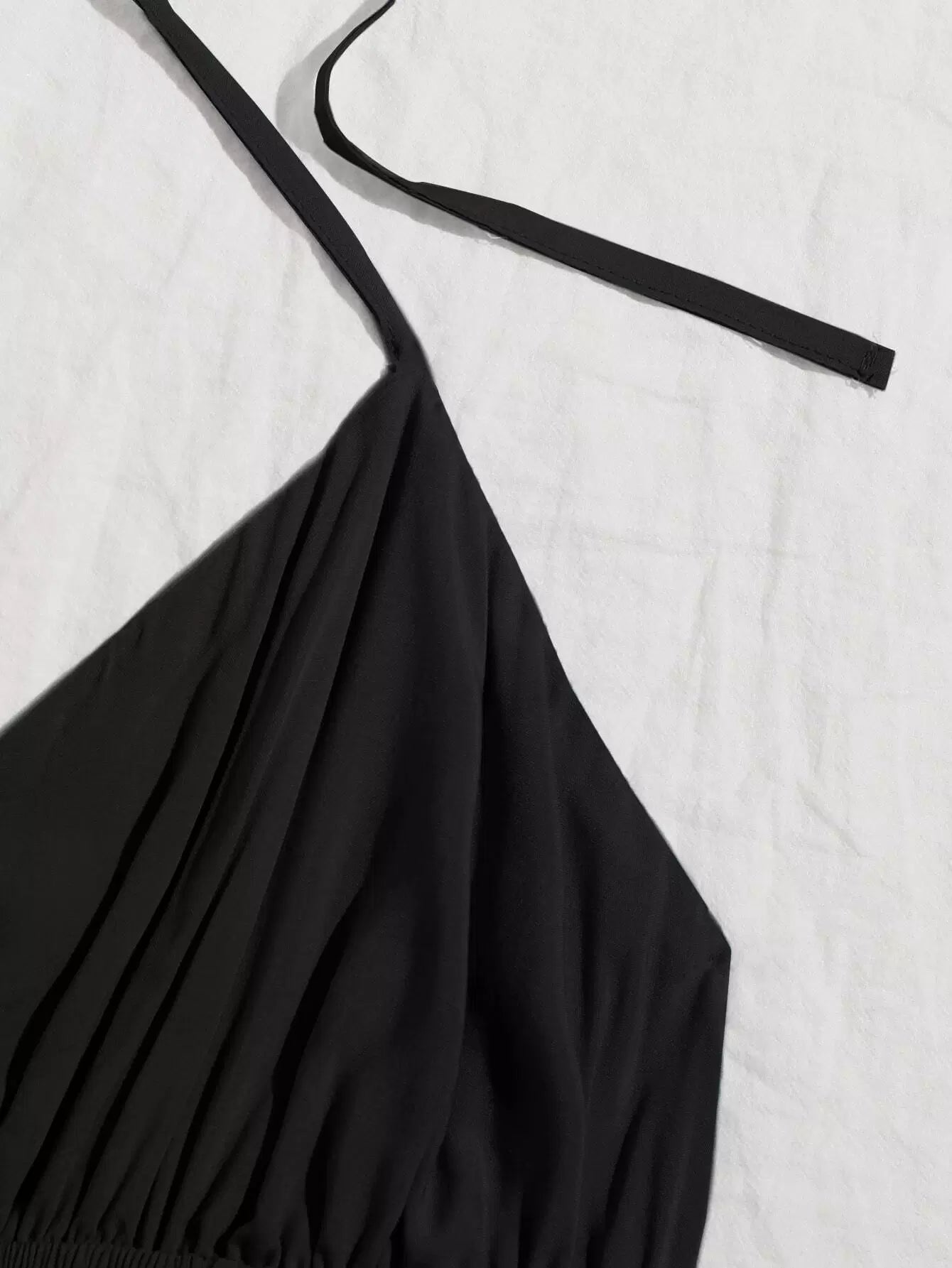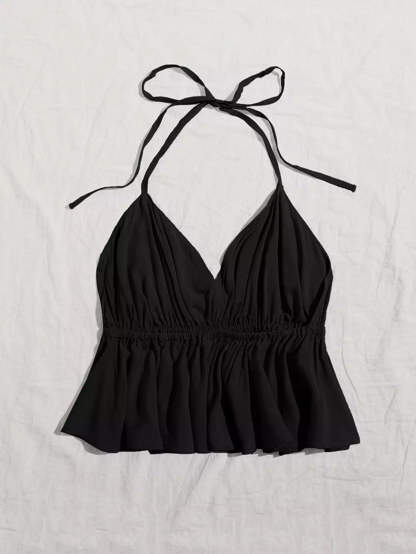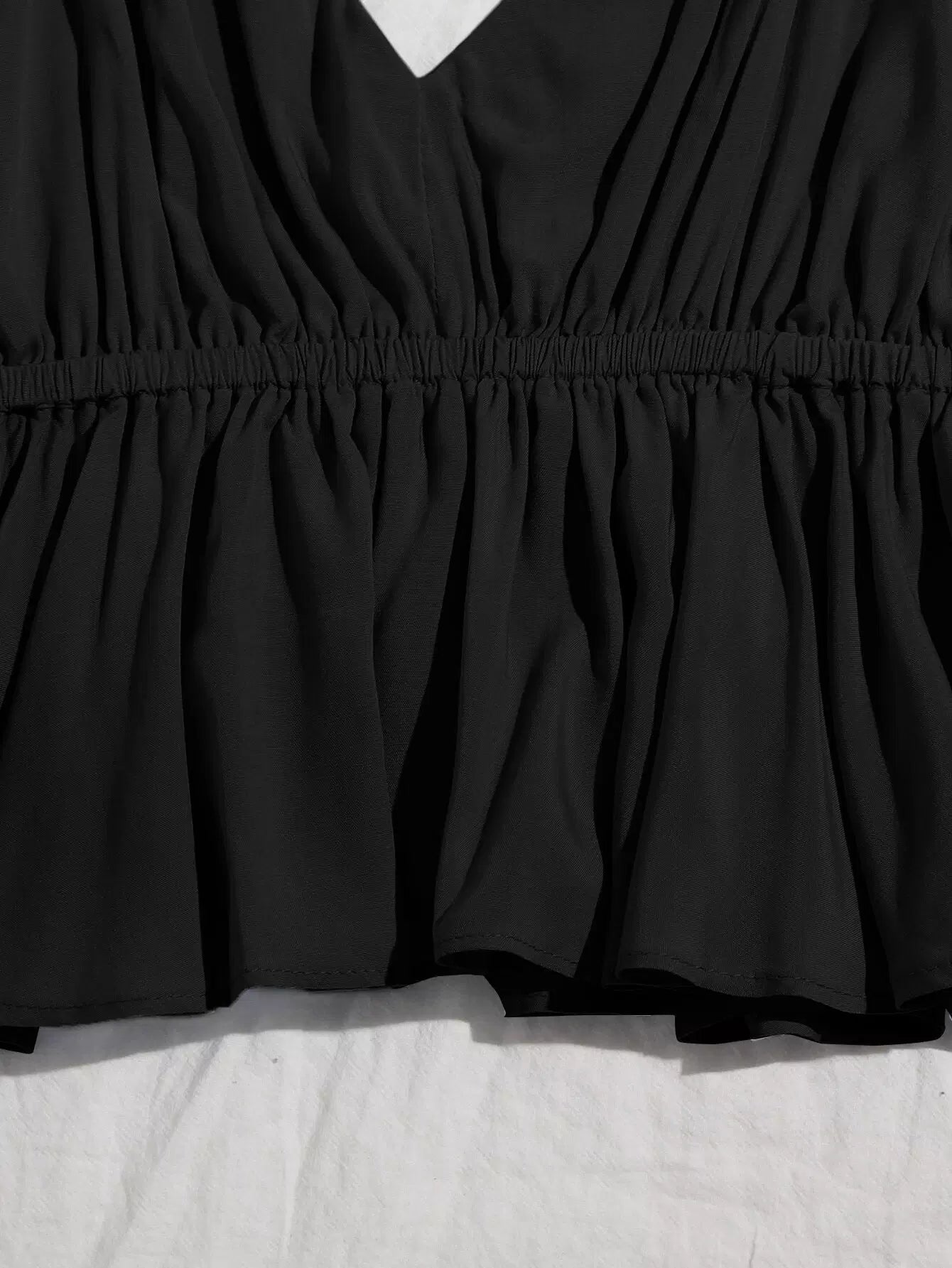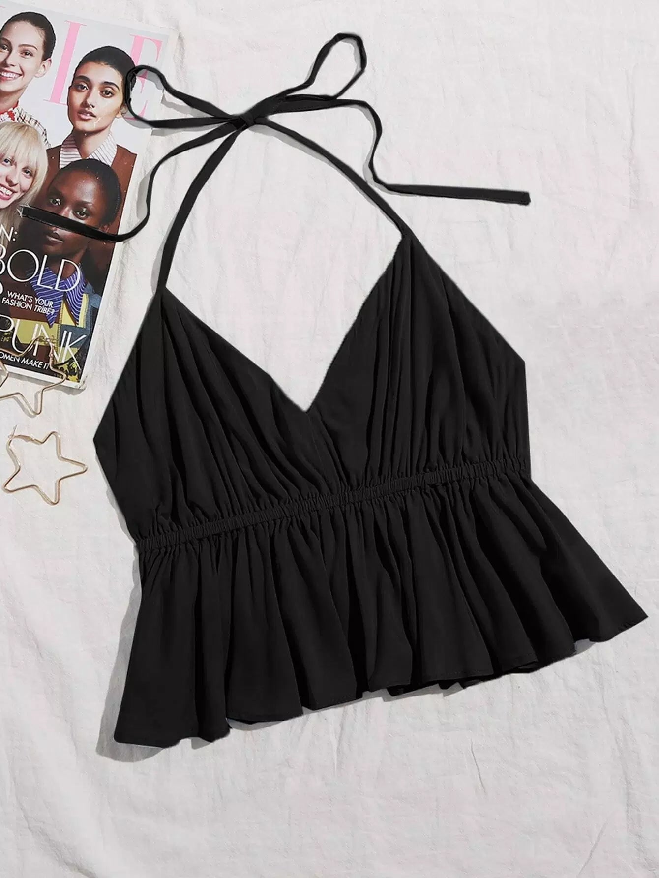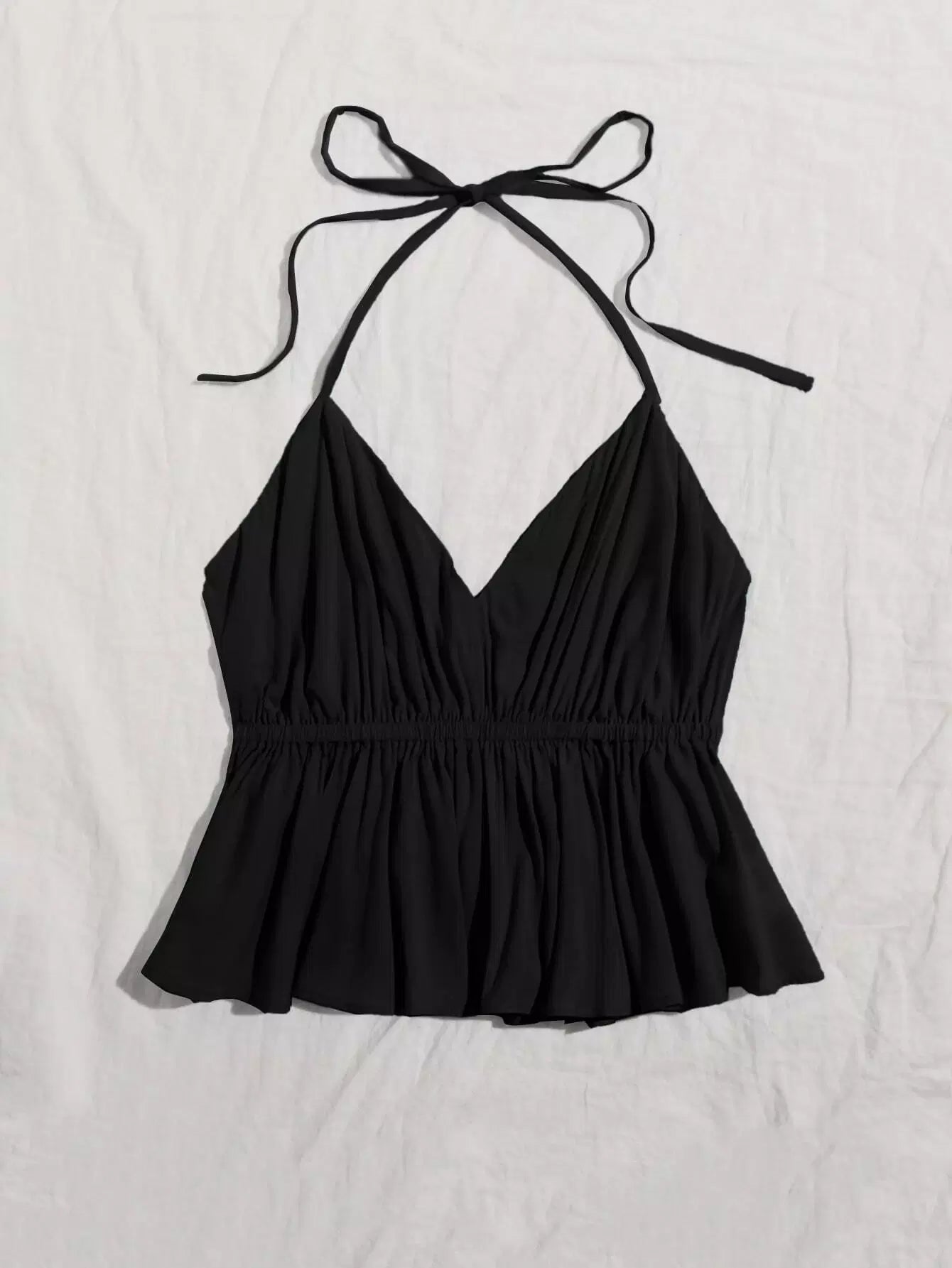 بلوزة سادة بربطة عنق مكشكشة من الخلف كشكش على الرسن