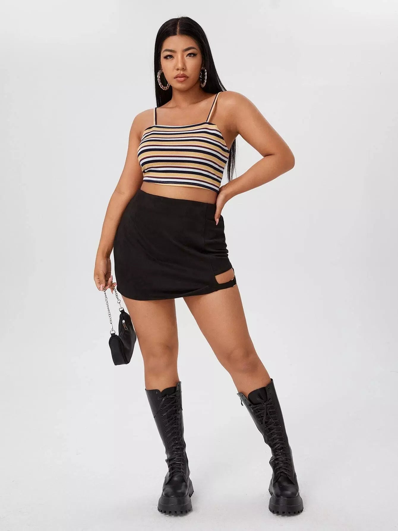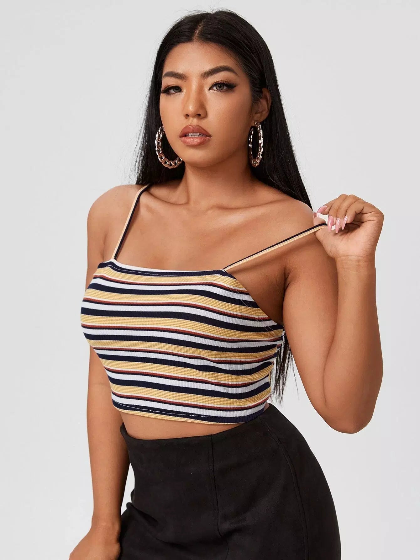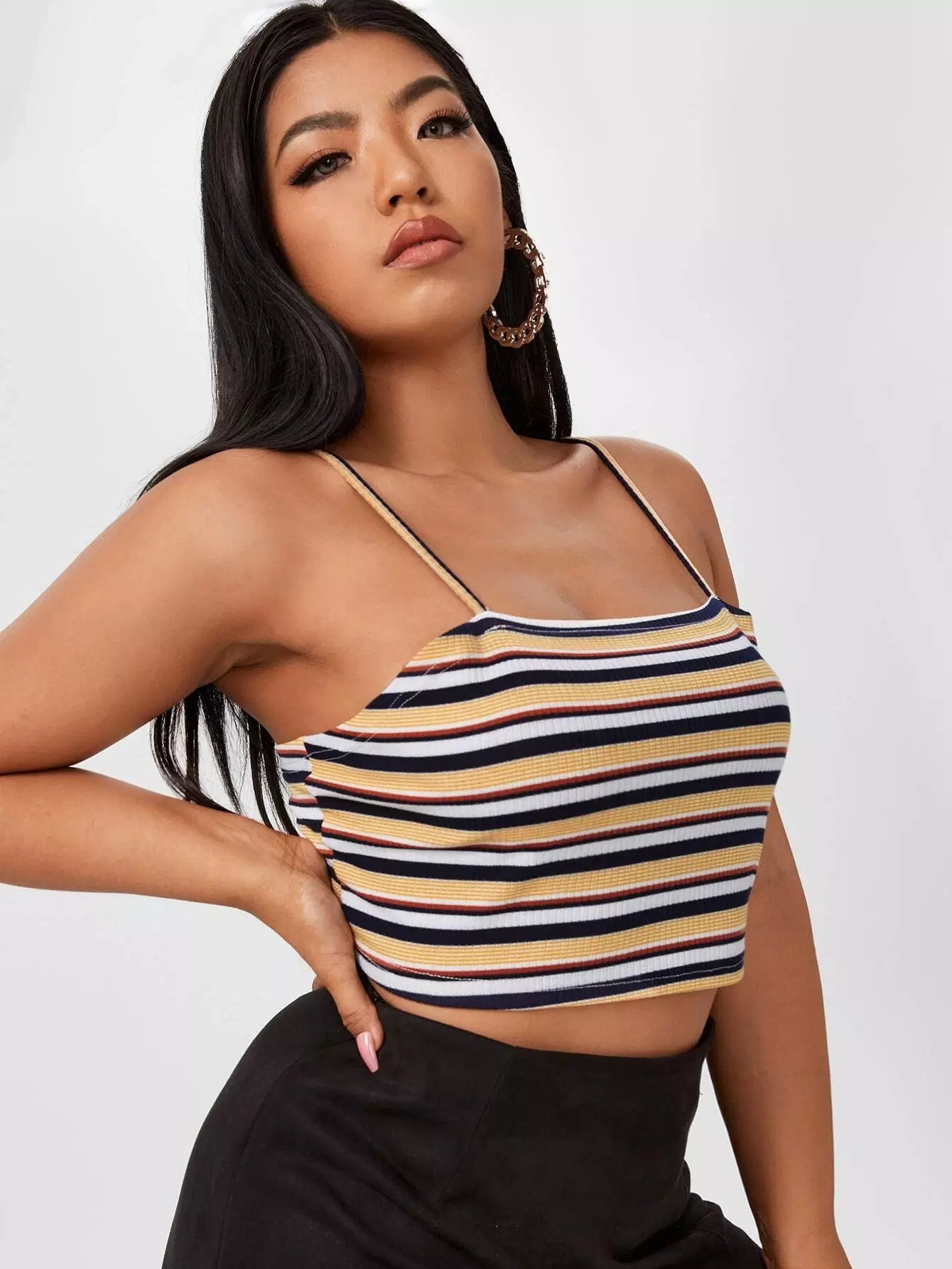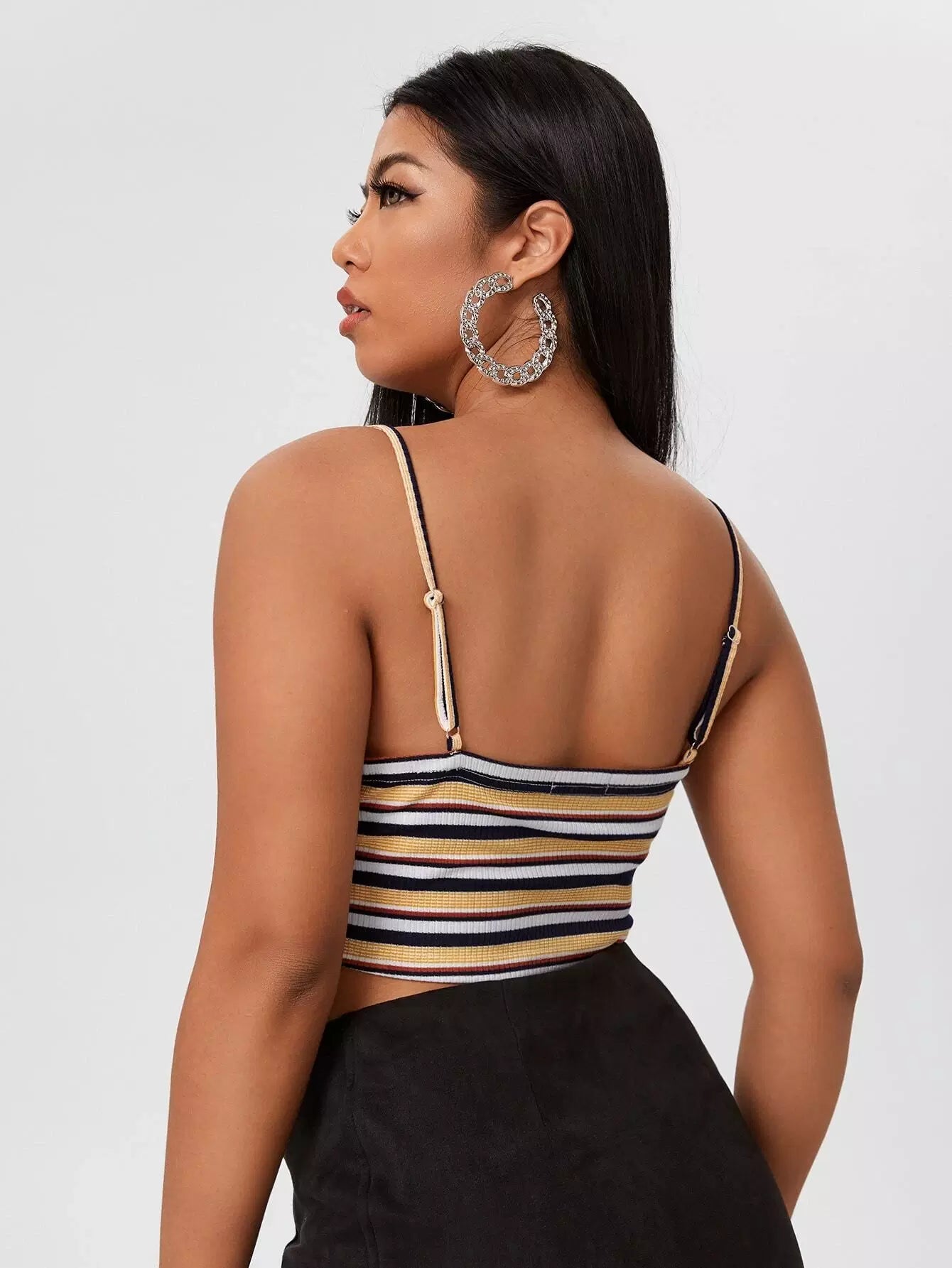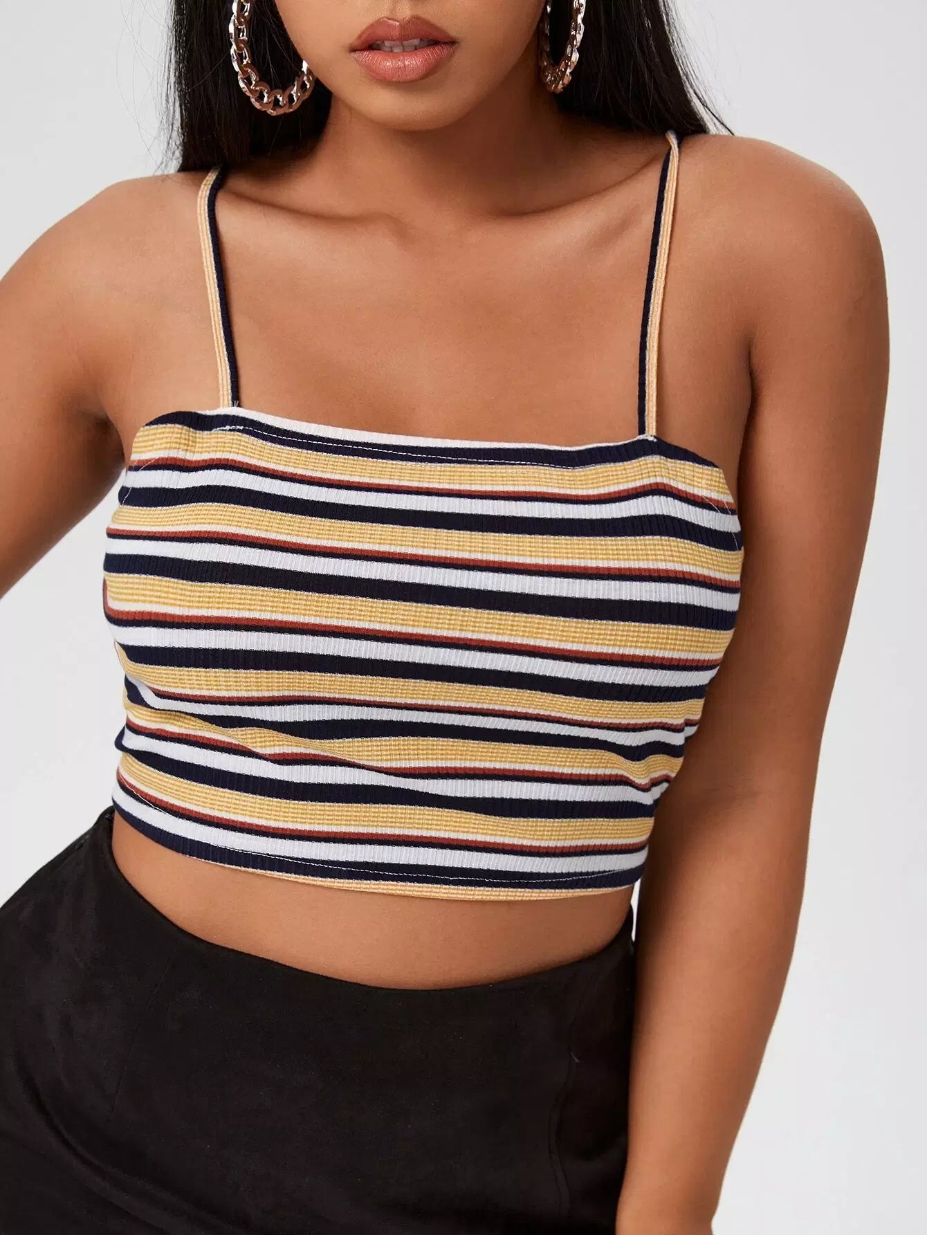 بلوزة قصيرة مخططة مخططة بدون أكمام