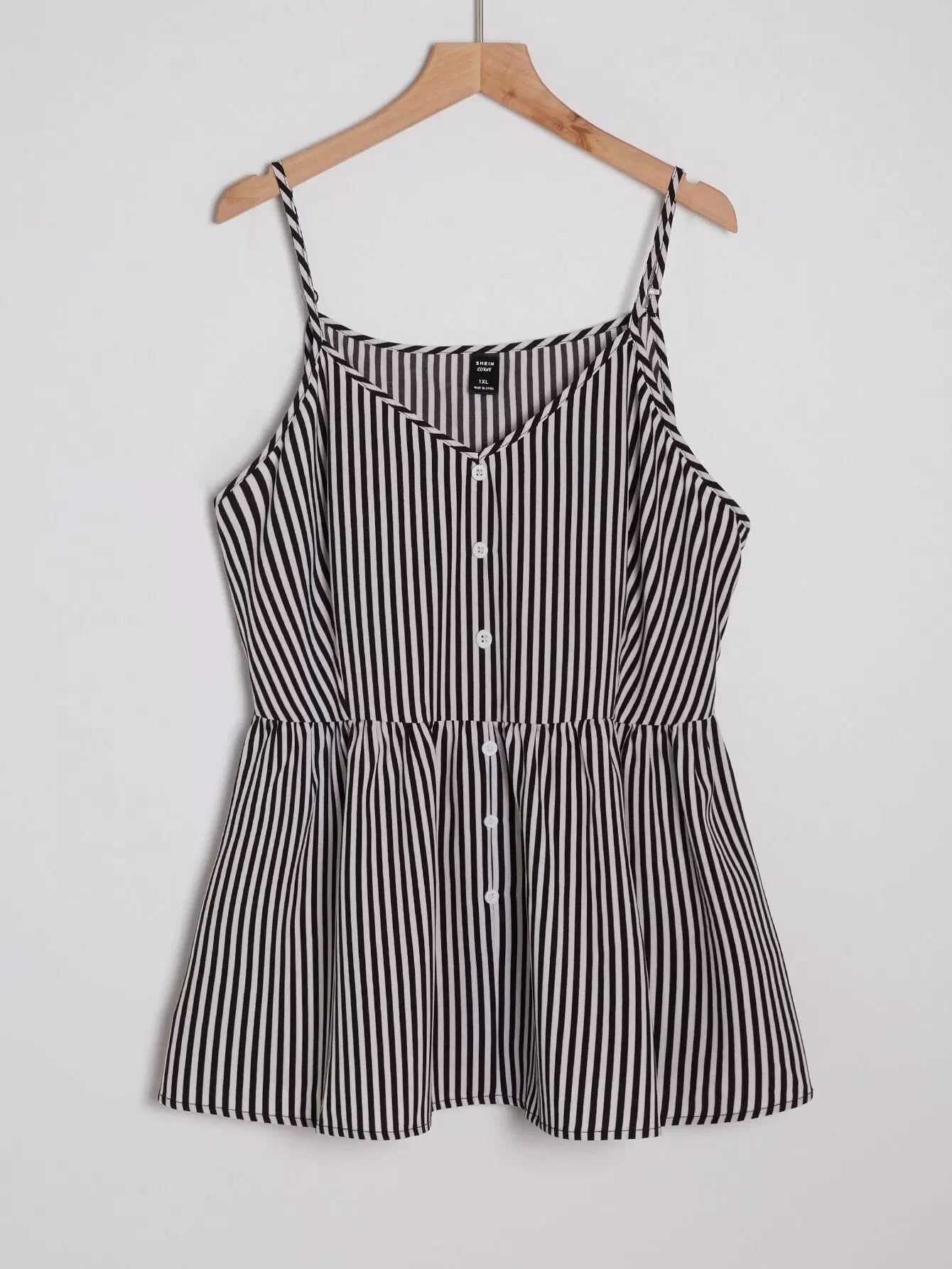 بلوزة كامي بحافة مكشكشة مخططة زائد