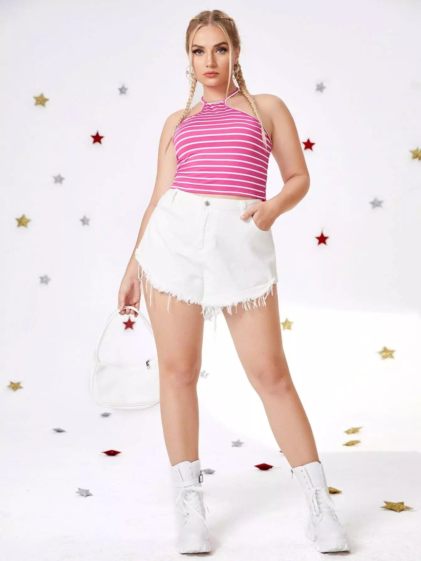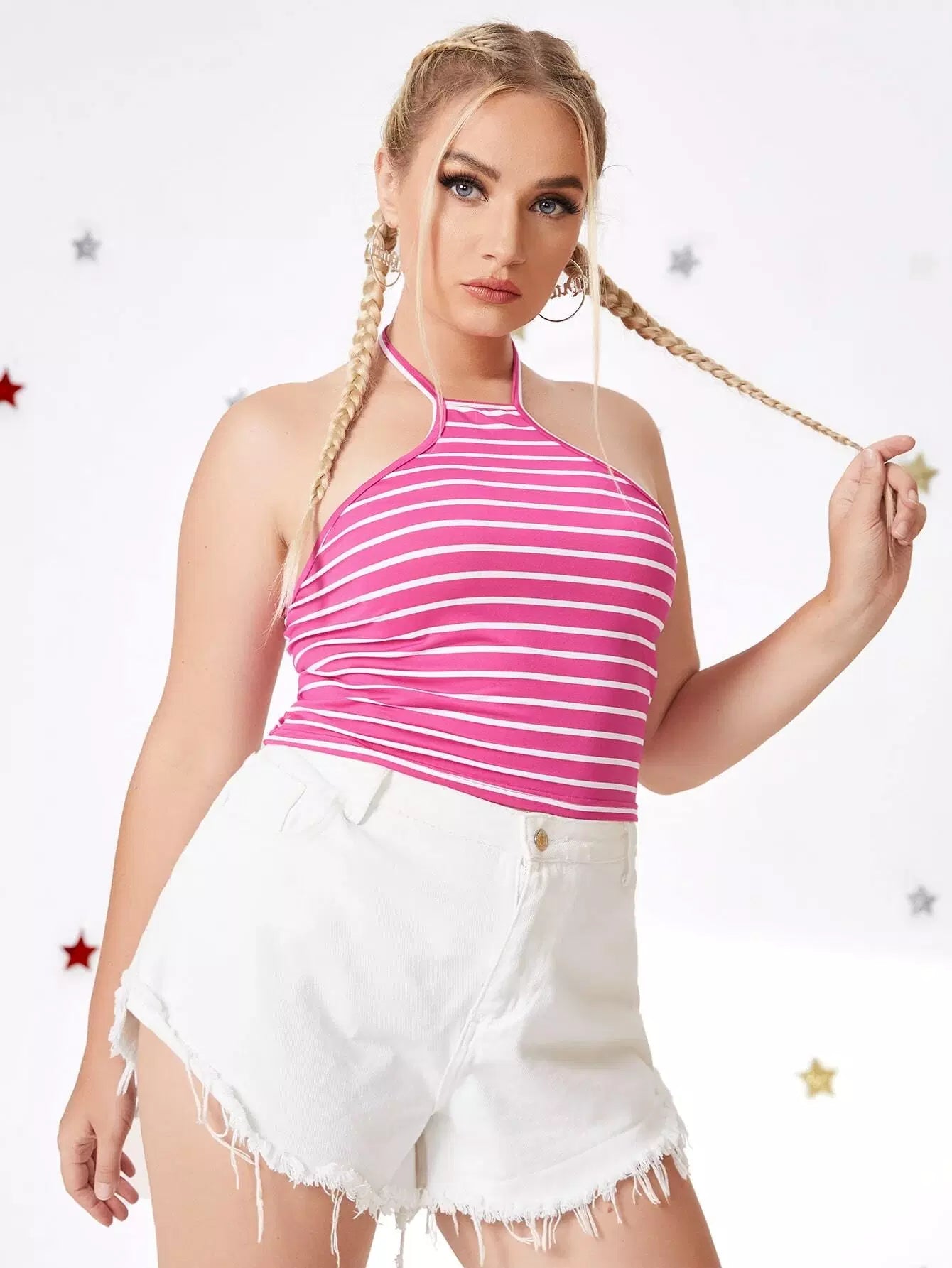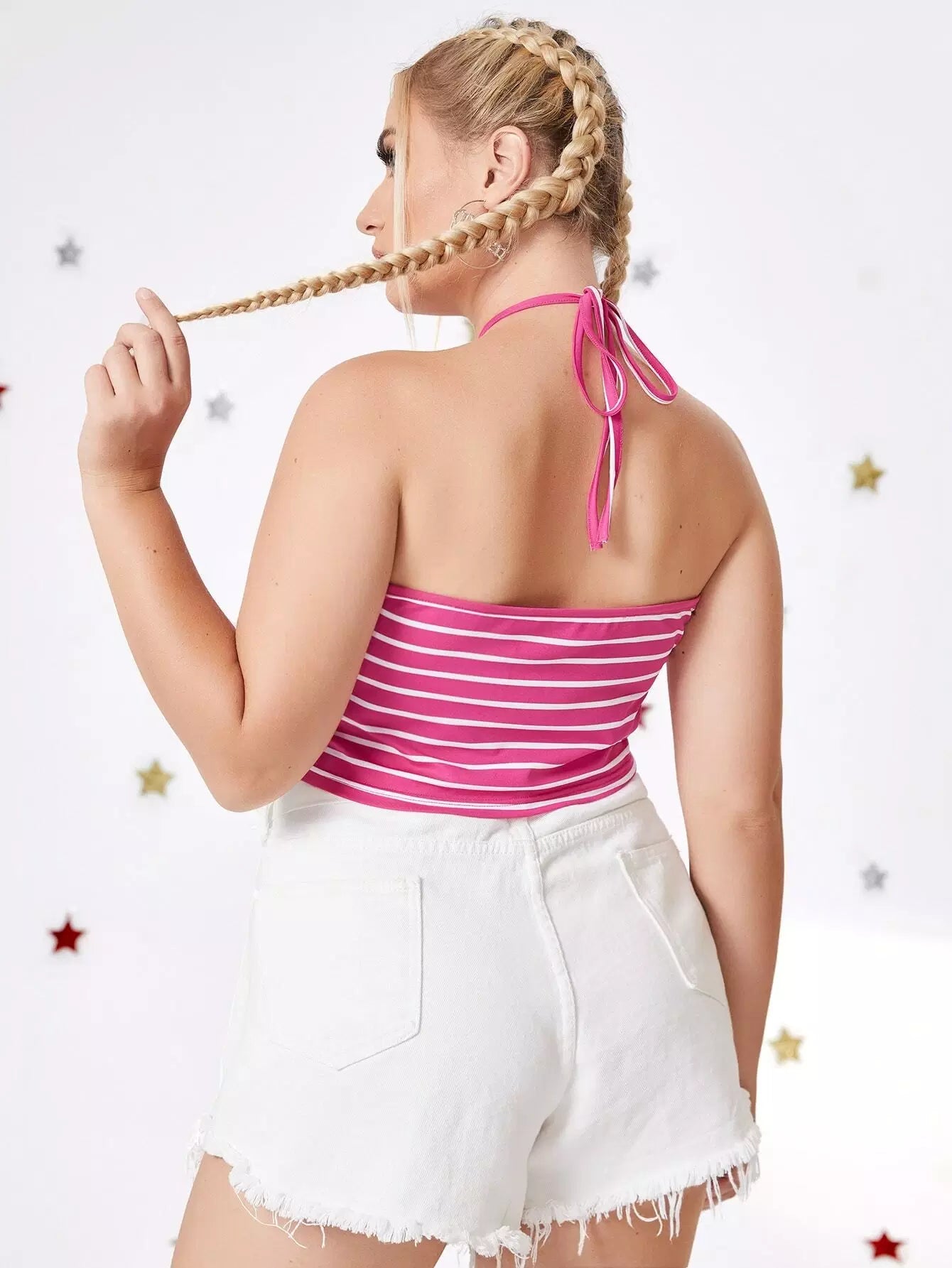 بلوزة مخططة بربطة عنق مخططة من الخلف، بلوزة مخططة برباط على الظهر