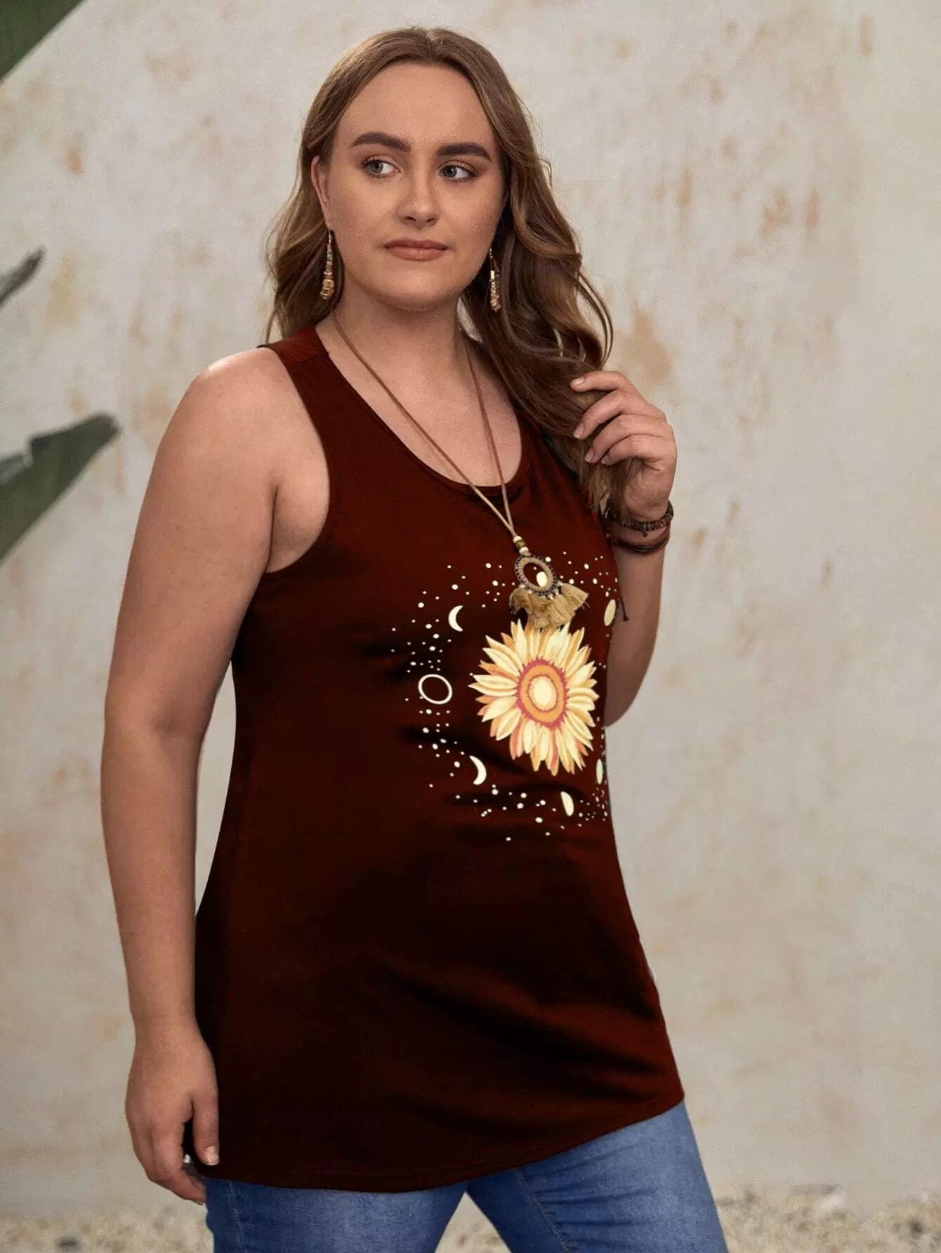 نحيف - مقاس كبير تانك الأعلى طباعة عباد الشمس
