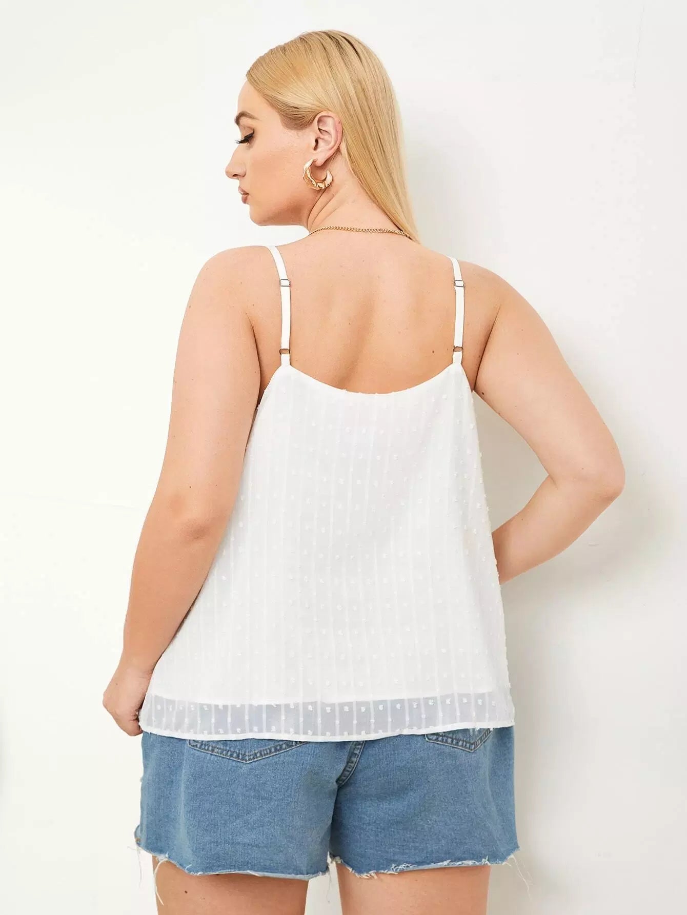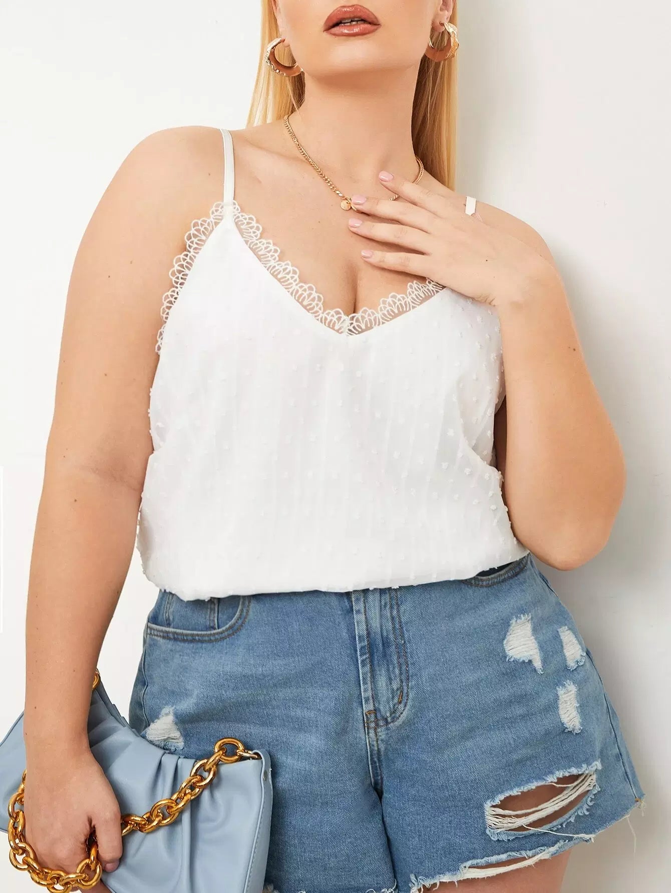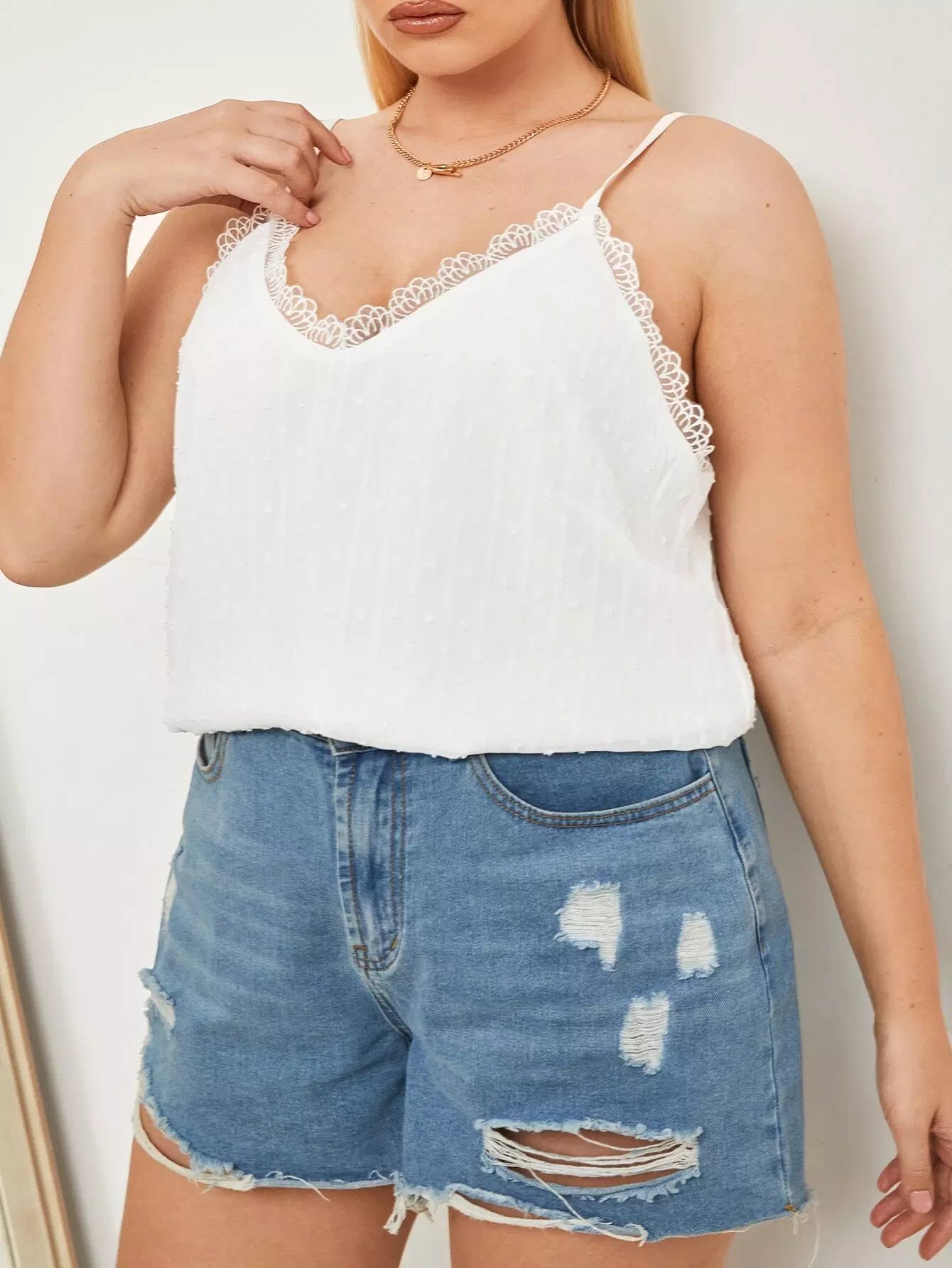 بلوزة بدون أكمام دانتيل منقّطة ومزركشة بالدانتيل