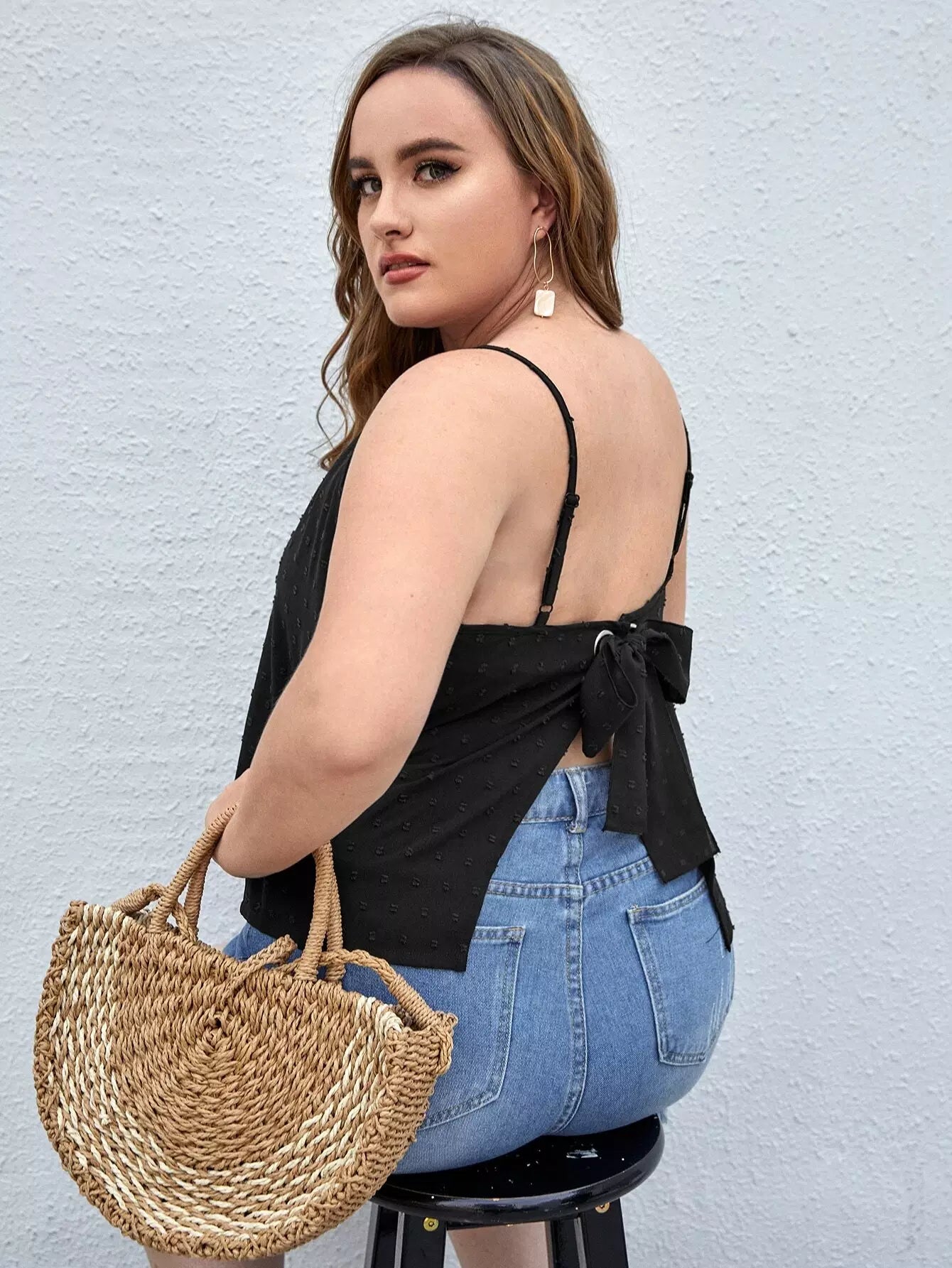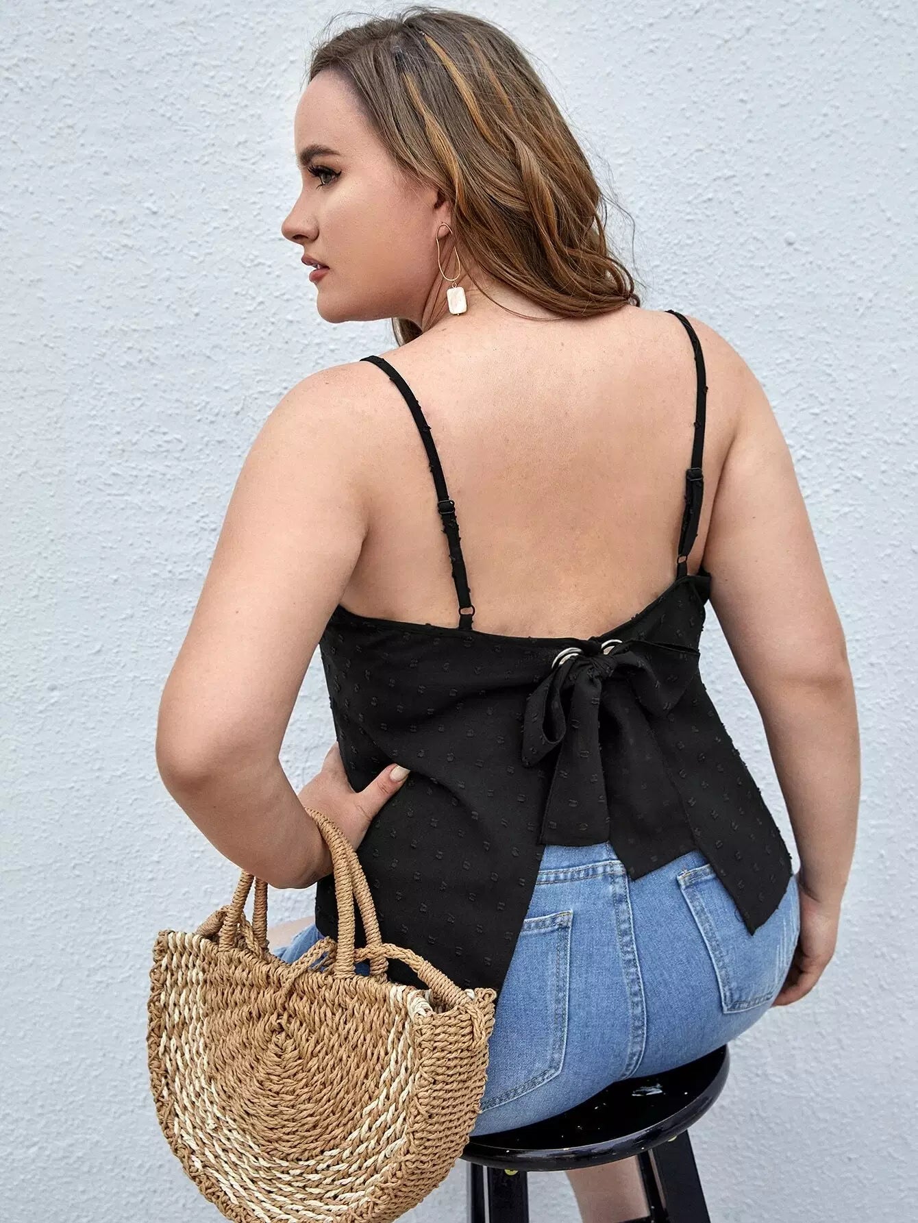 بلوزة قصيرة منقّطة بربطة عنق على الظهر سويسرية