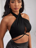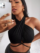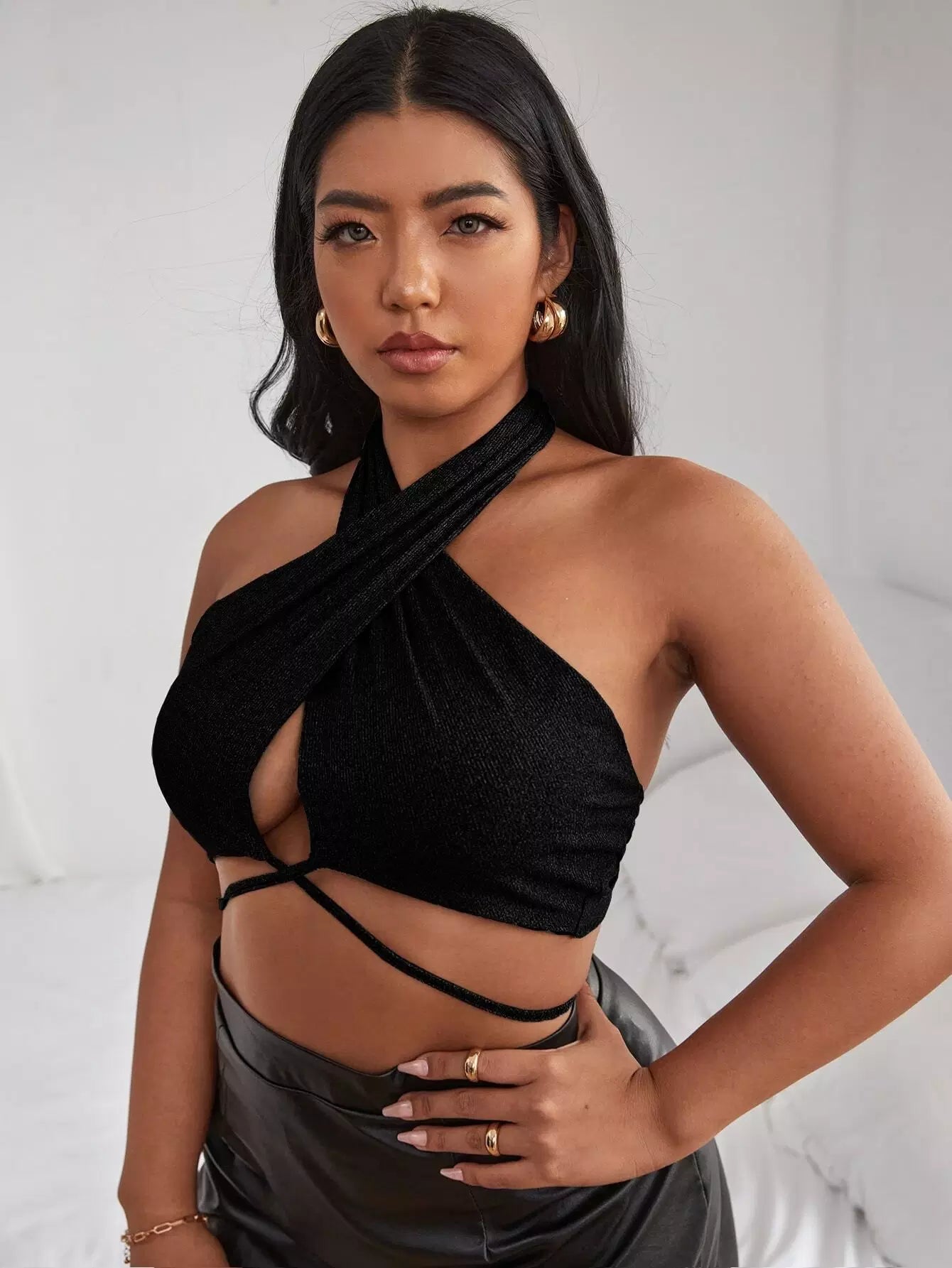 بلوزة بربطة عنق ملفوفة من الخلف برباط بلاس