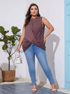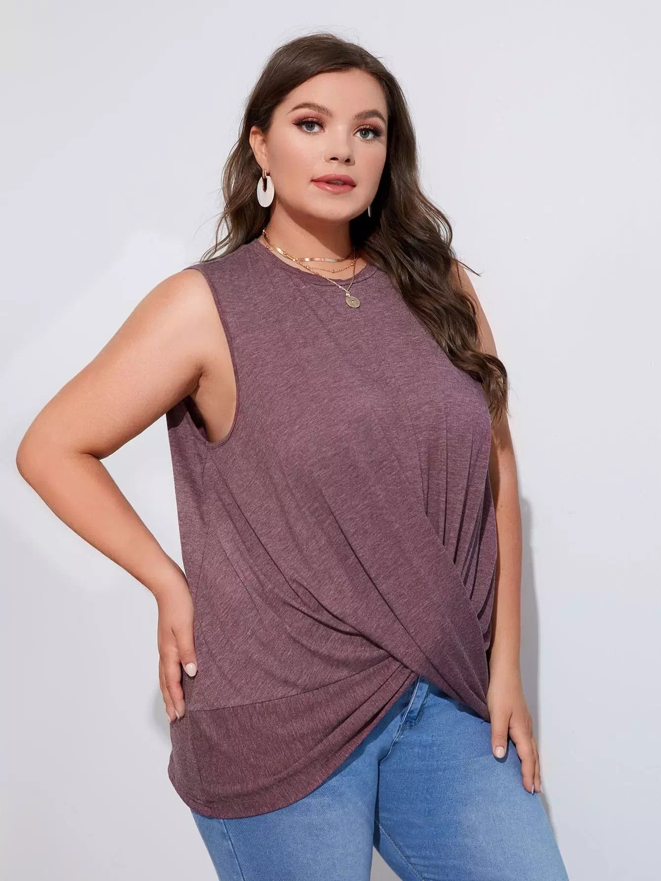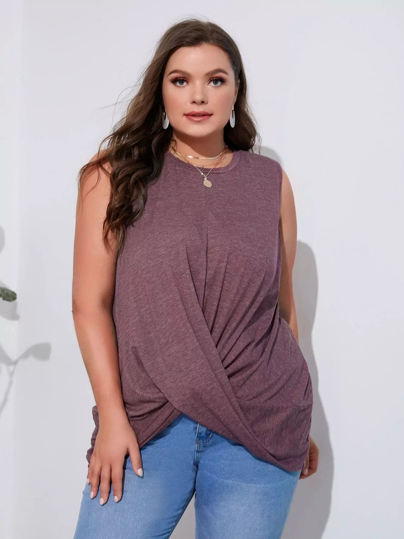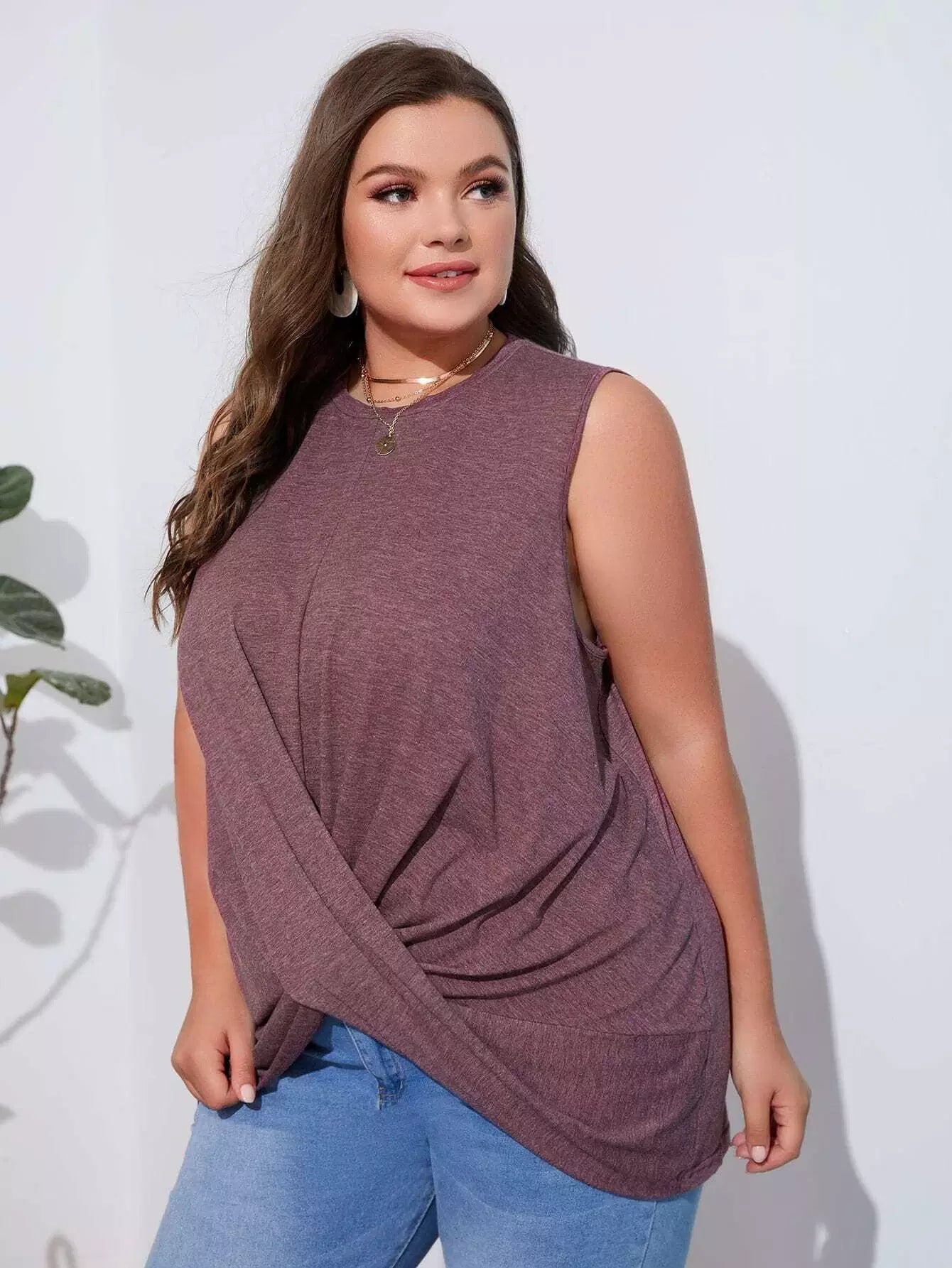 بلوزة بدون أكمام قصيرة بحافة تويست بلاس