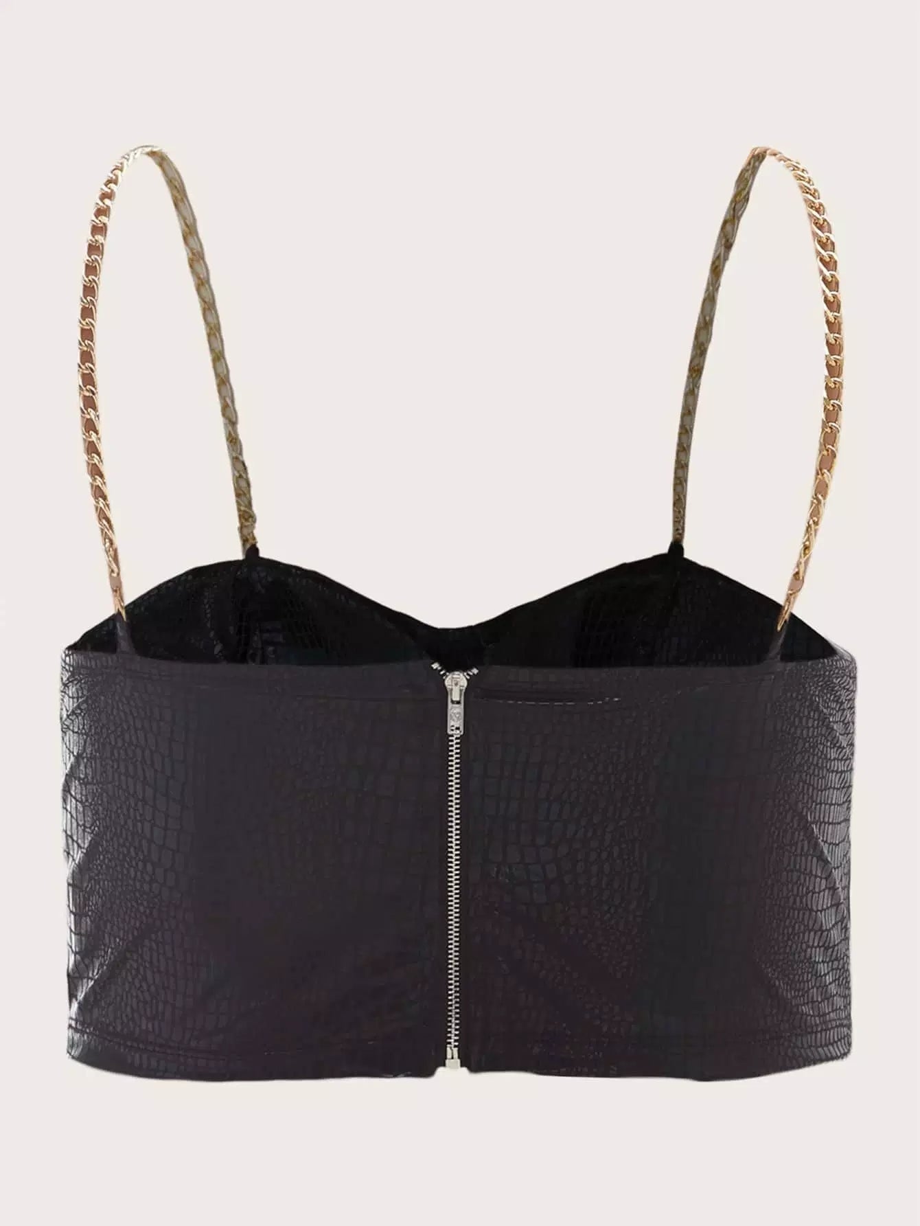 بلوزة قصيرة قصيرة بسحاب من الخلف بسحاب زائد مع سلسلة