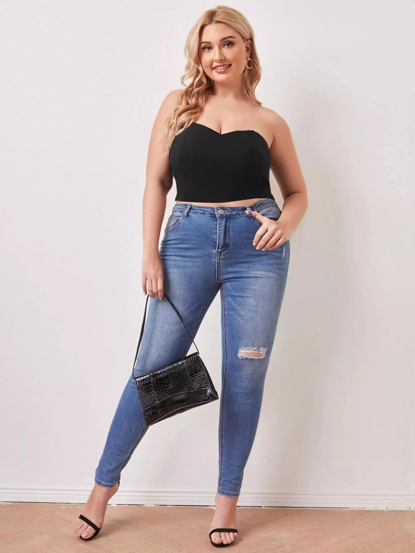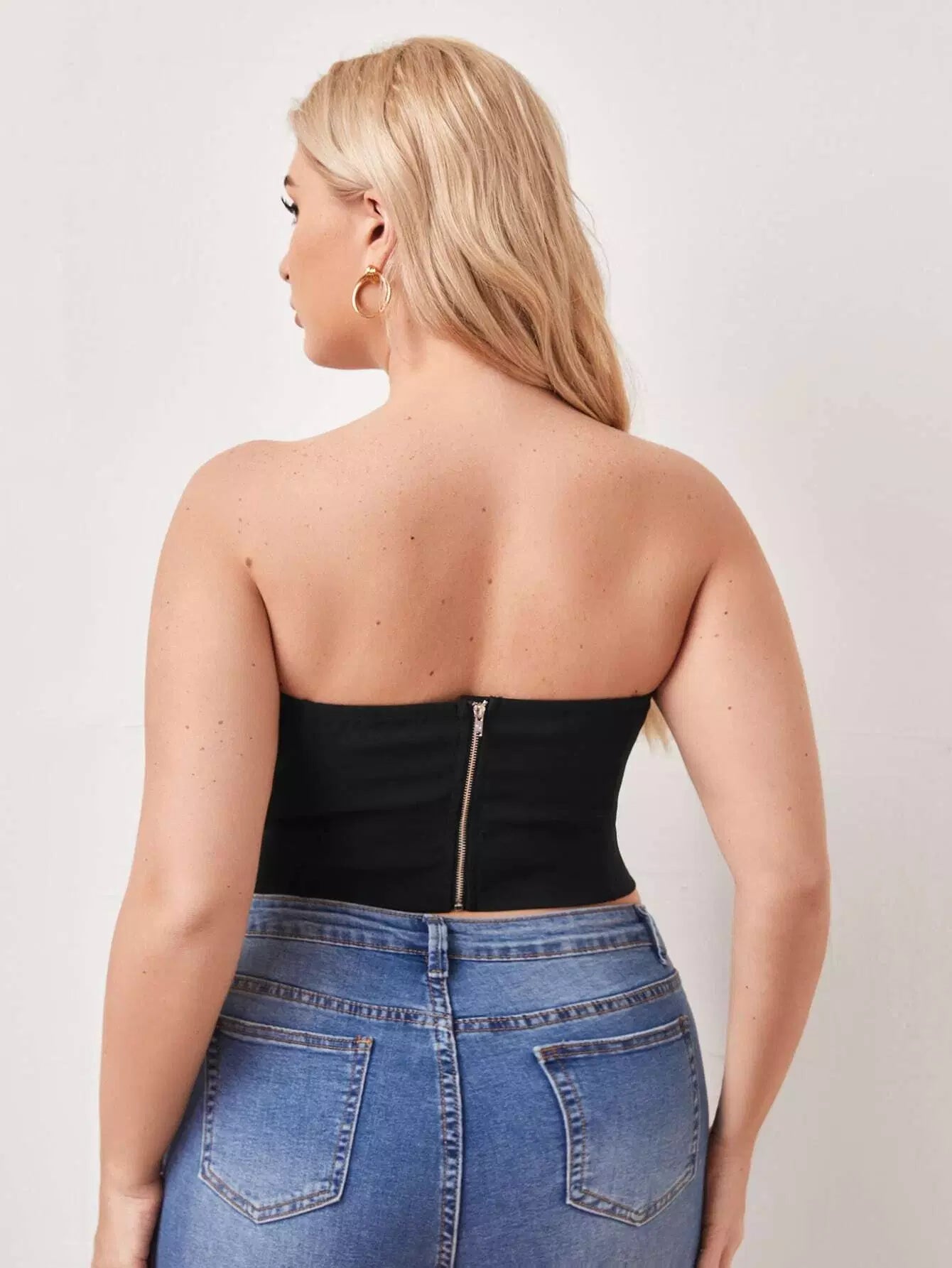 بلوزة أنبوبي سادة بسحاب خلفي بسحاب زائد