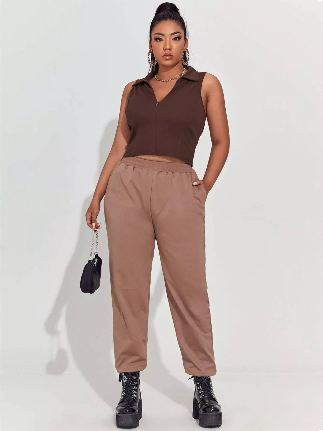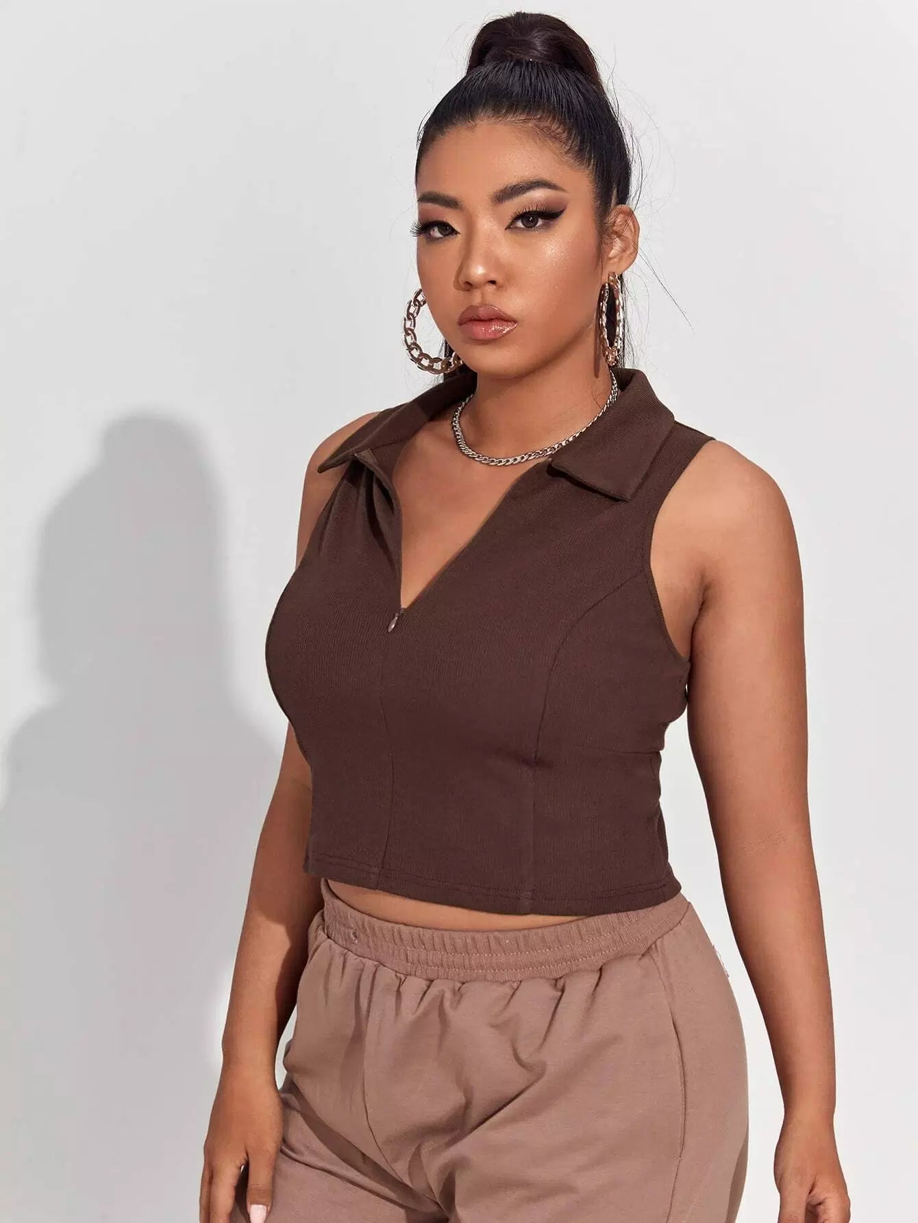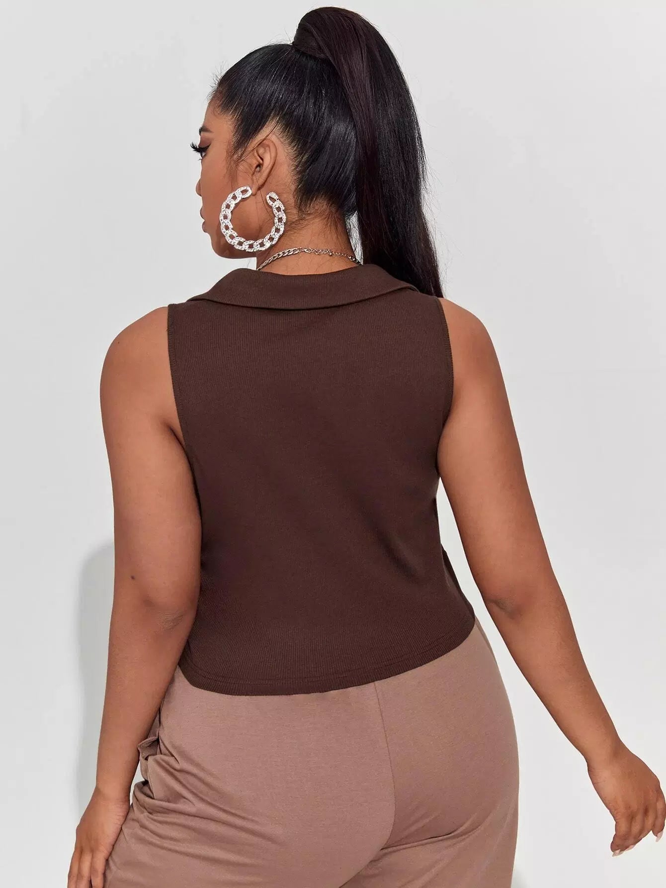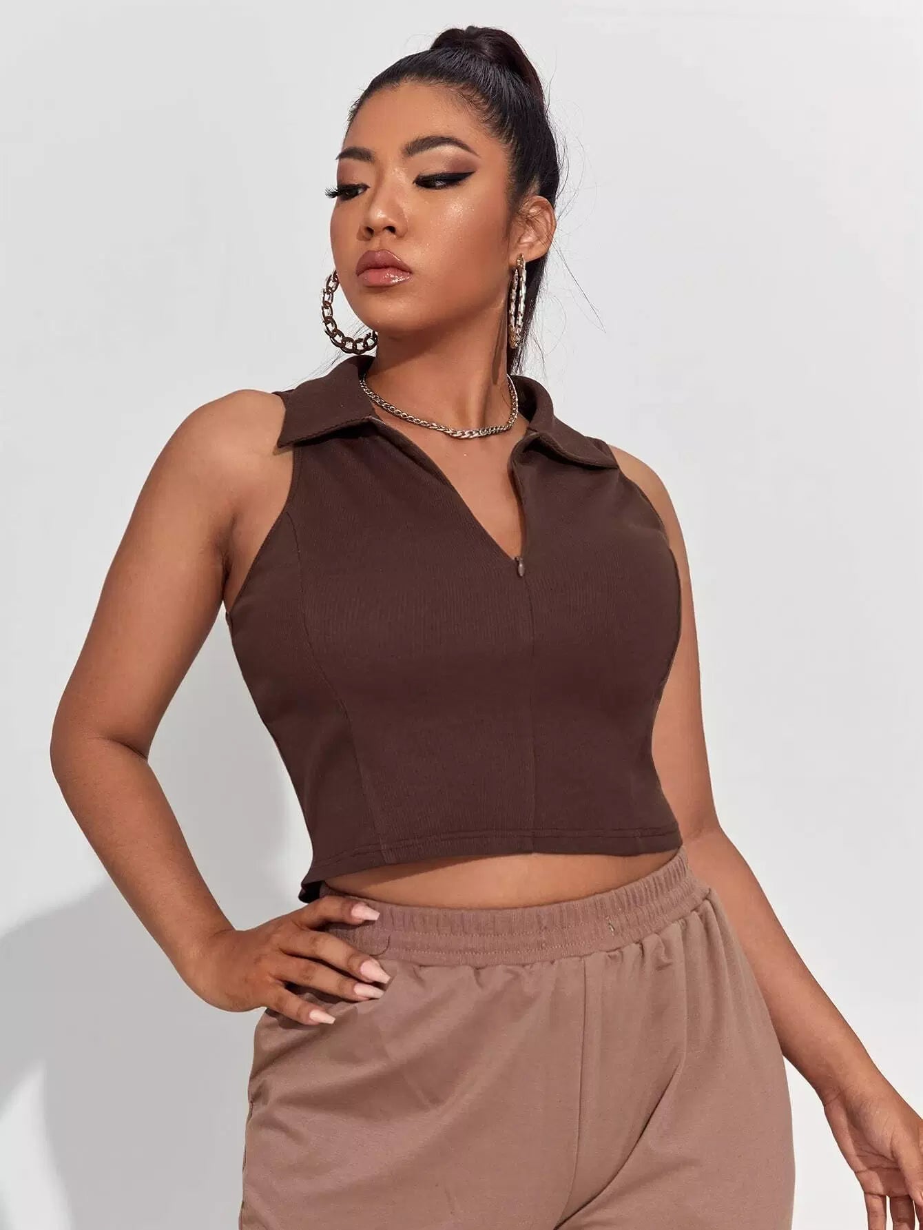 بلوزة بلا أكمام بلا أكمام بنصف فتحة بسحاب زائد