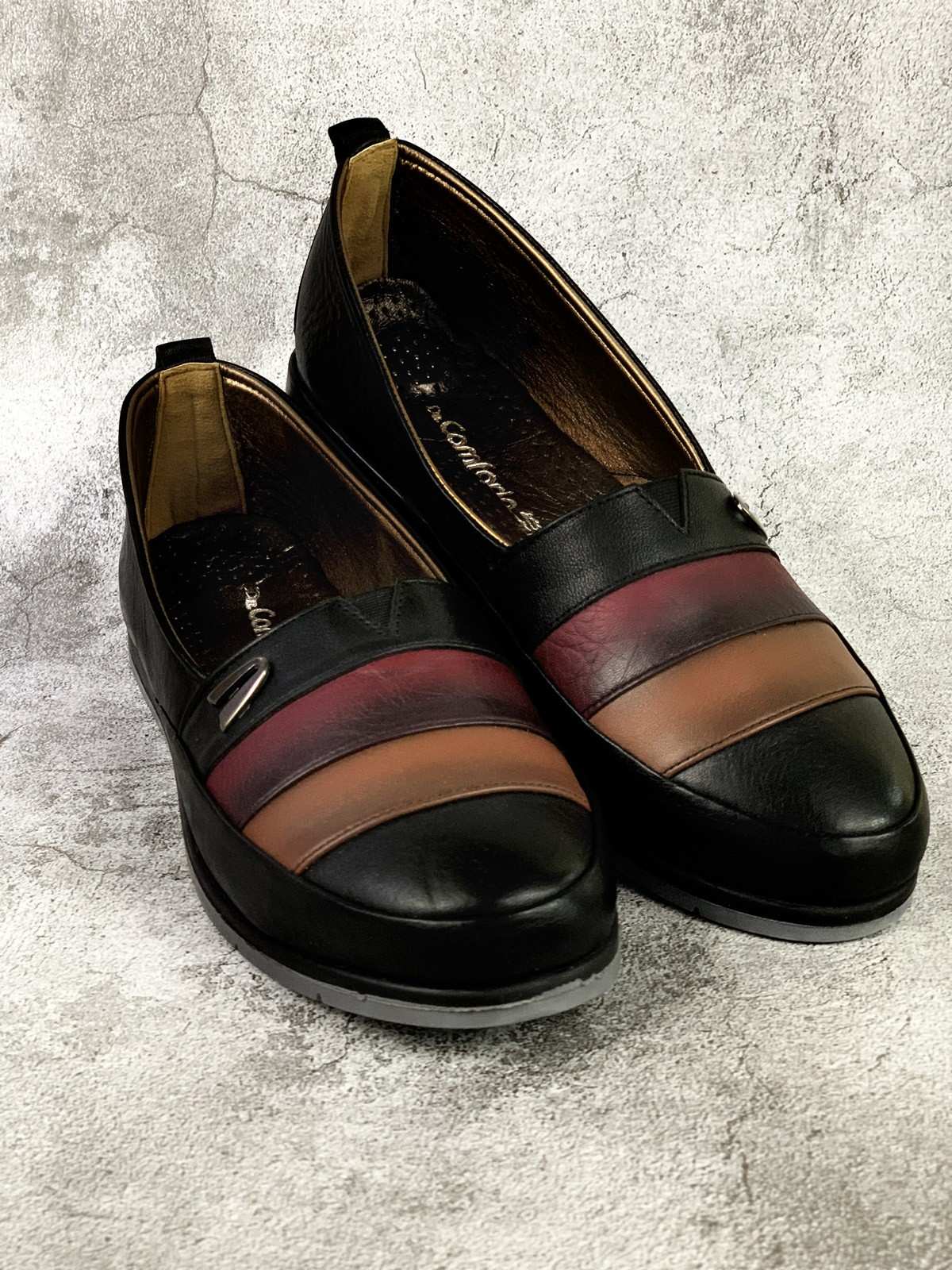 حذاء طبي بكعب منخفض باللونين الأسود والوردي
