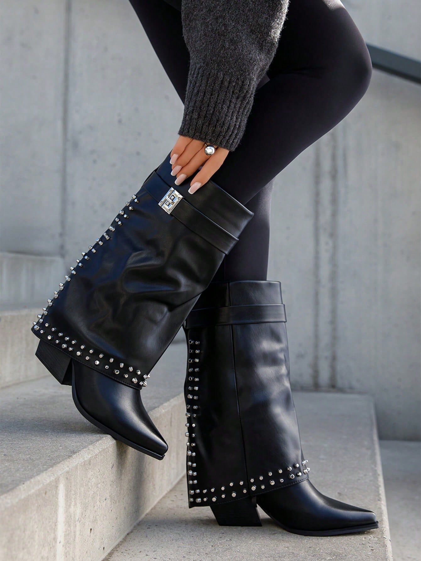 Bottes Western and Talon Bas Avec Bride Dأ©coative Et Clous Metalliques Fantaisie