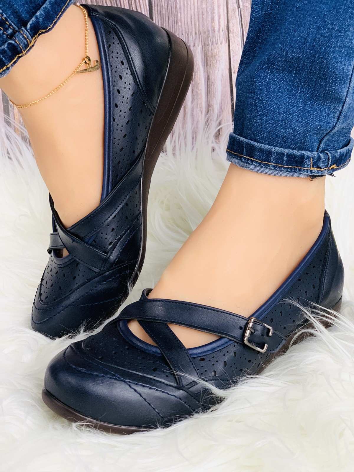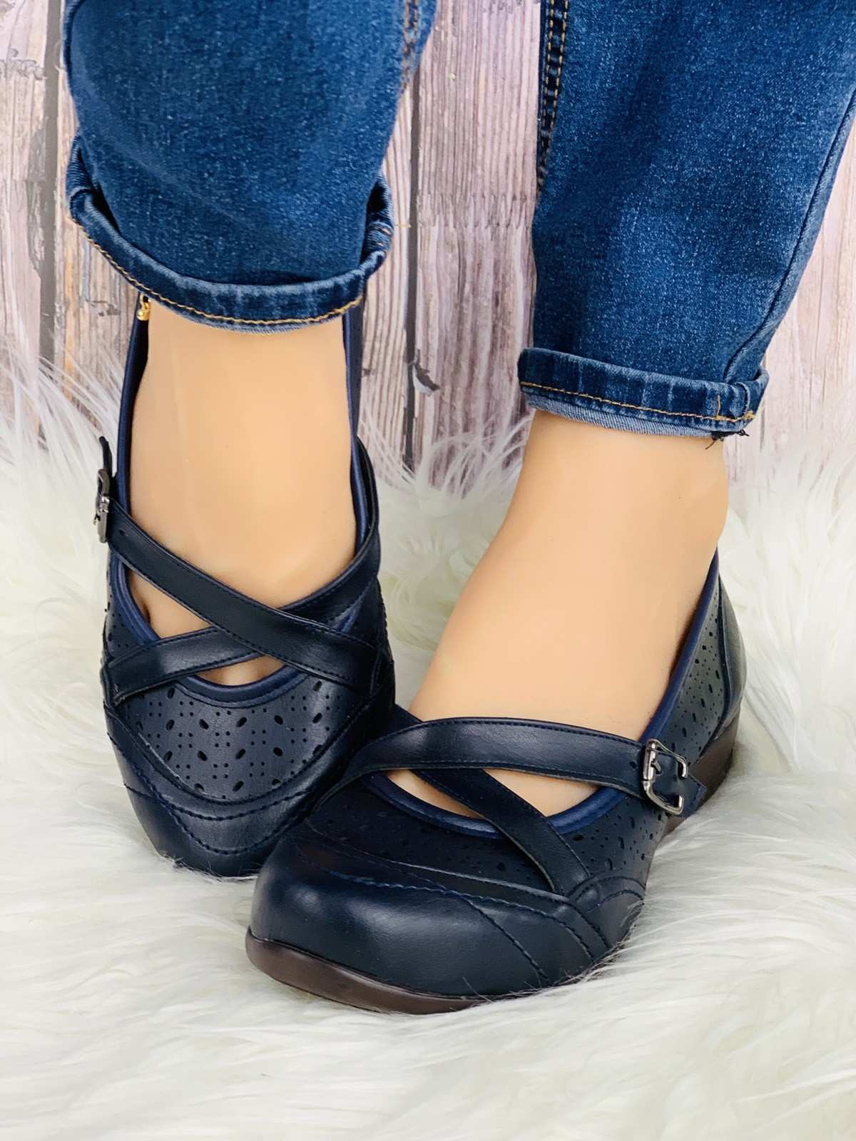 حذاء نسائي أسود مريح بفتحات مزخرفة وأقدام قابلة للتنفس، كعب طبي منخفض