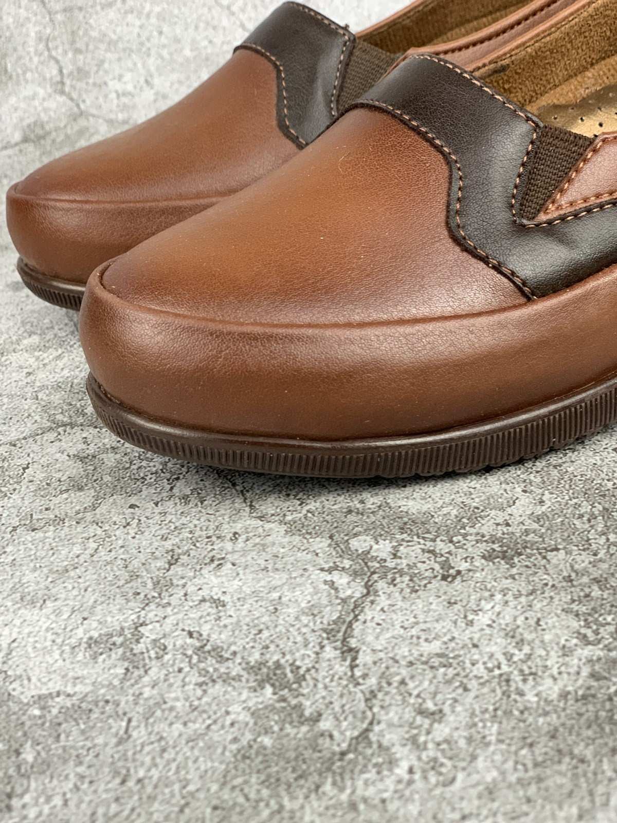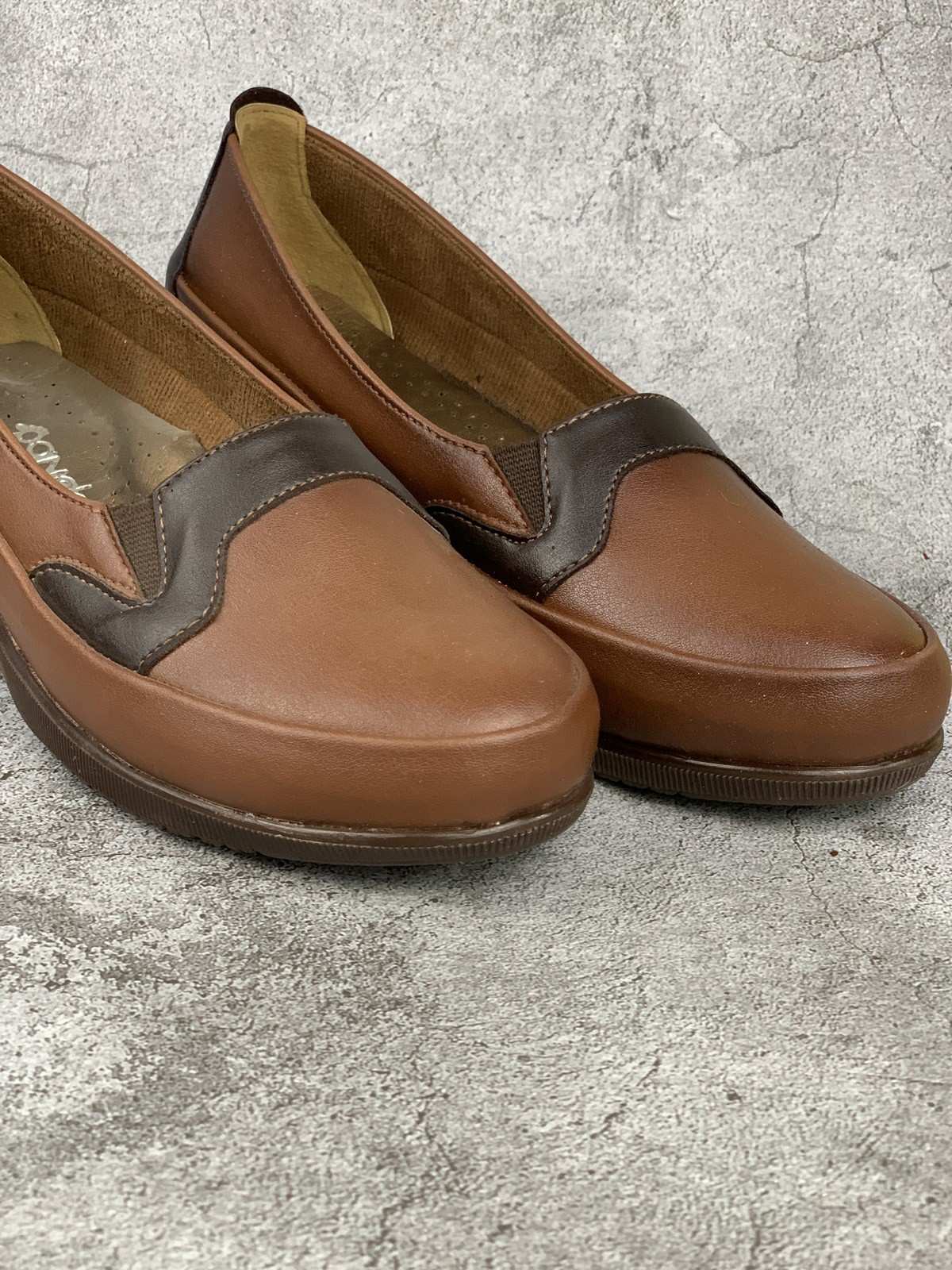 حذاء نسائي جلد بني مريح، شريط مطاطي، كعب طبي متوسط