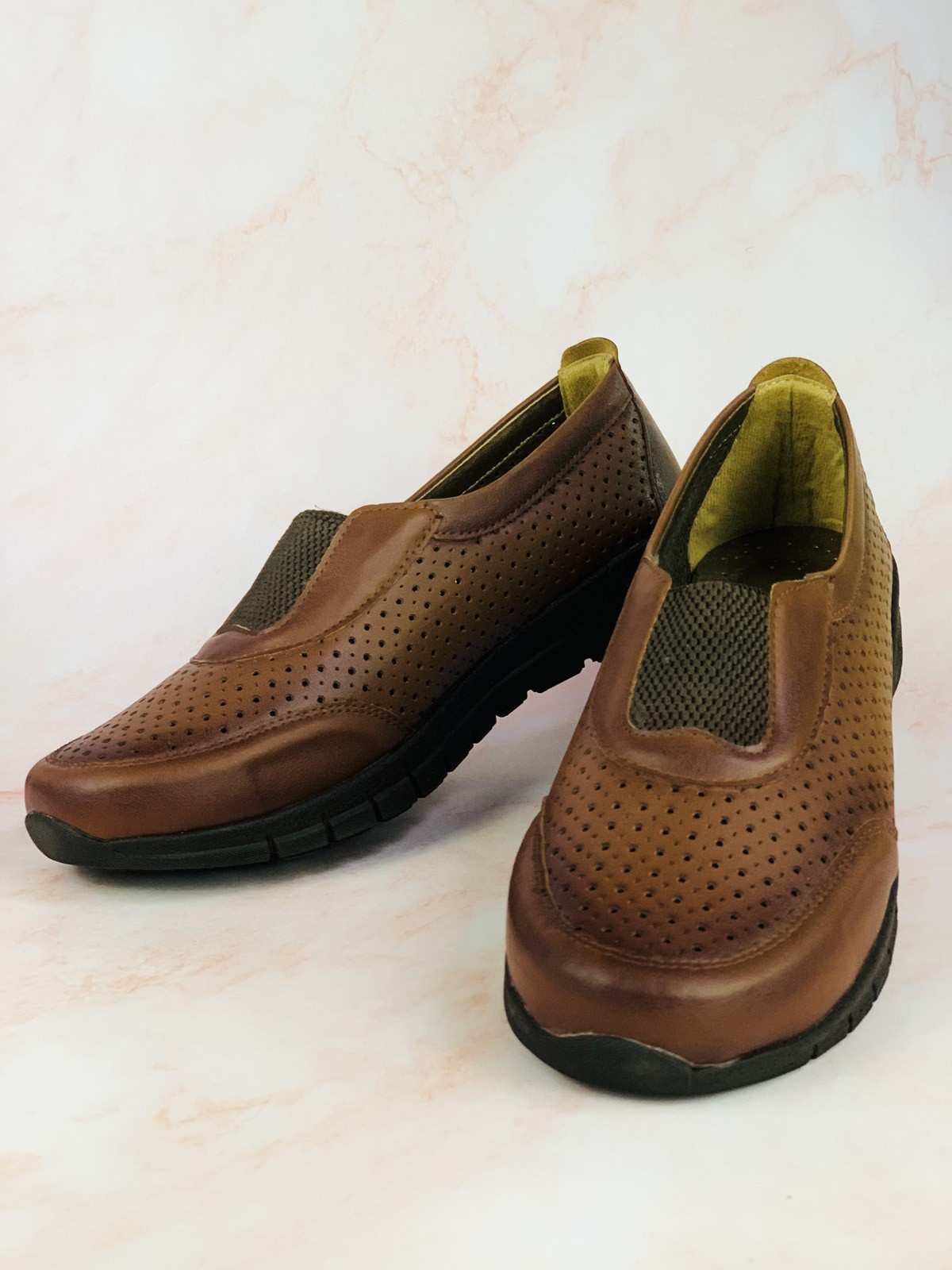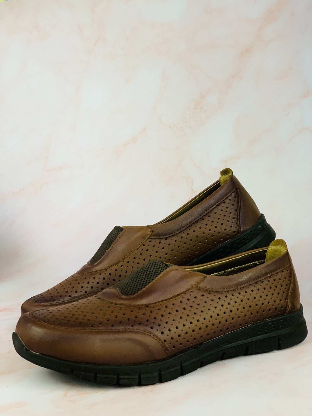 حذاء تركي من الجلد الصناعي بنعل طبي مع بقعة سيليكون لراحة الكعب وتنفس مريح