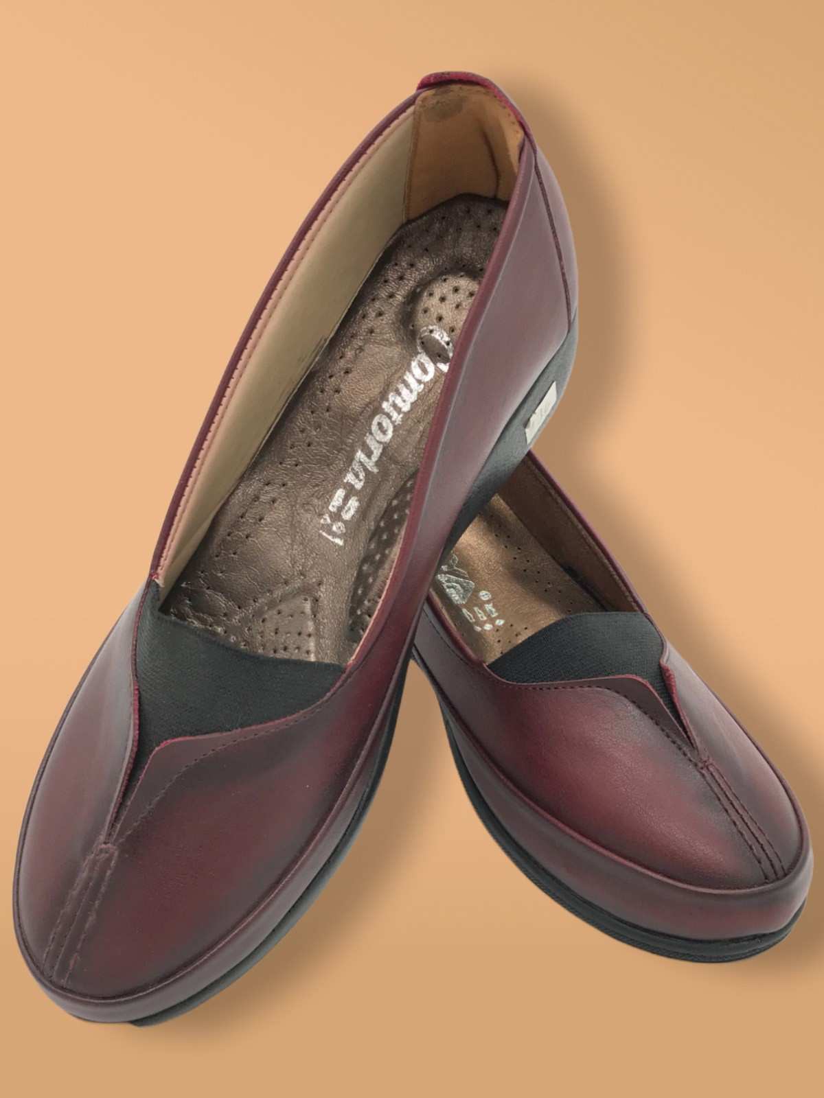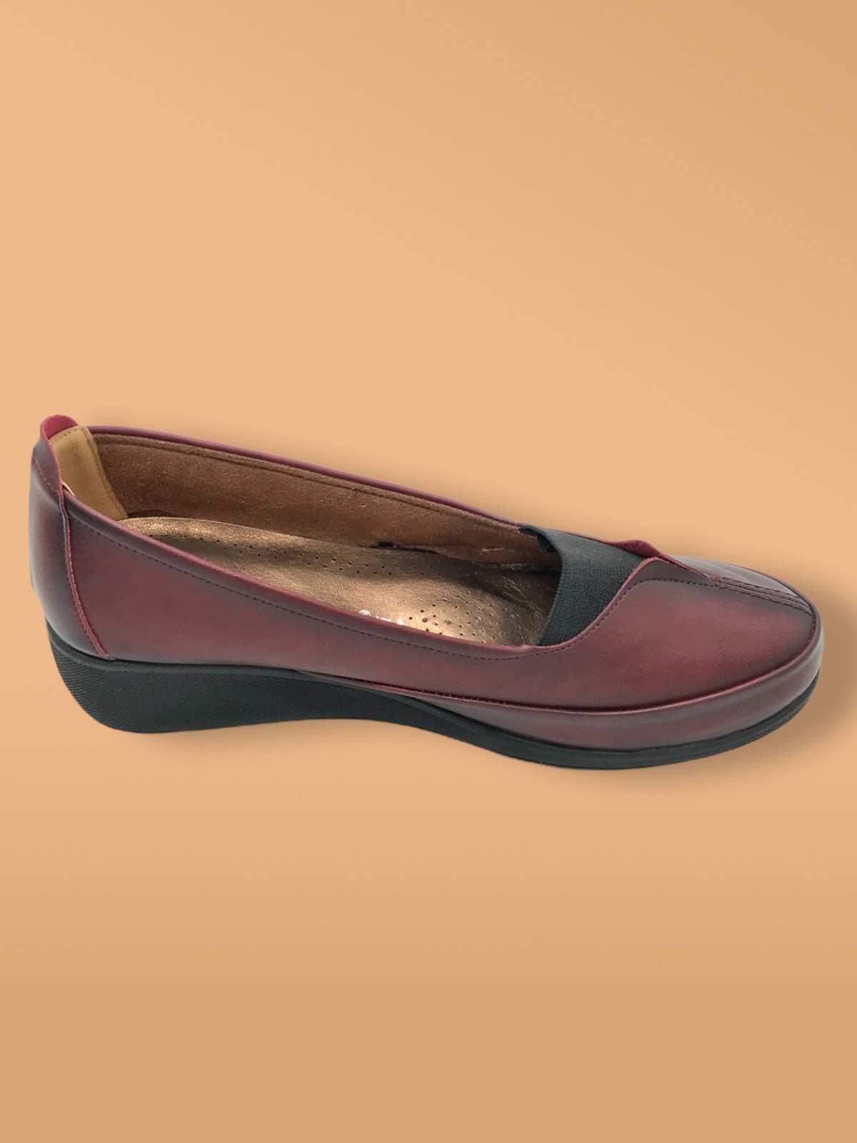 حذاء نسائي مريح أحمر اللون أسود فاتح كعب متوسط طبي