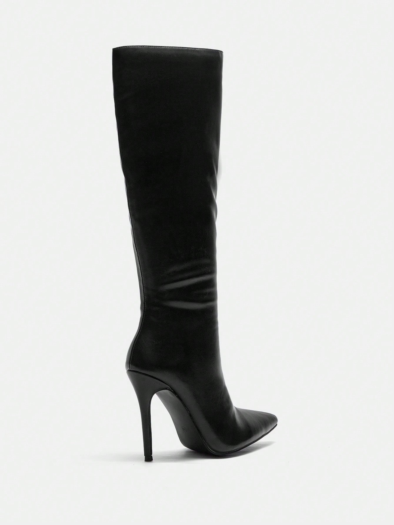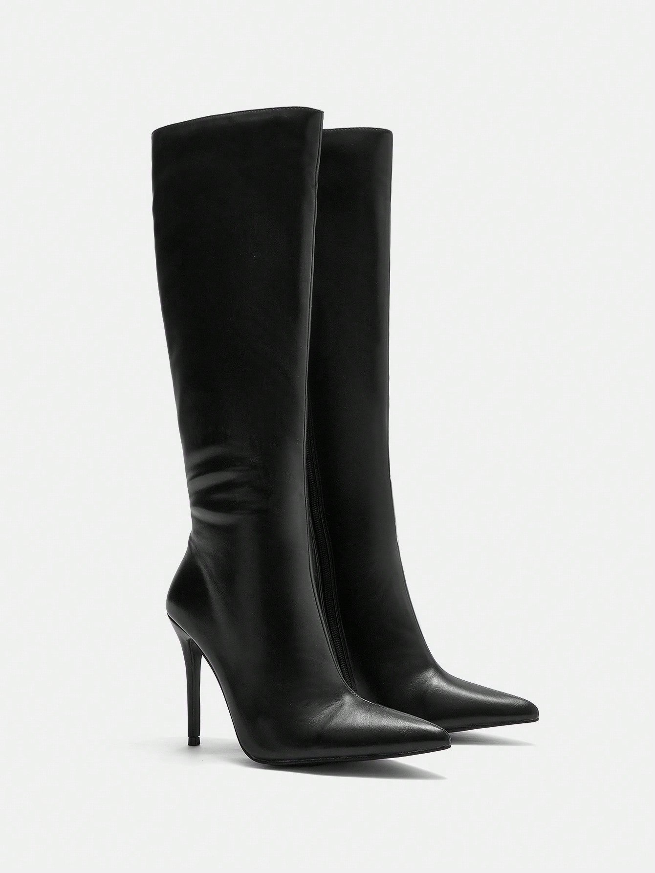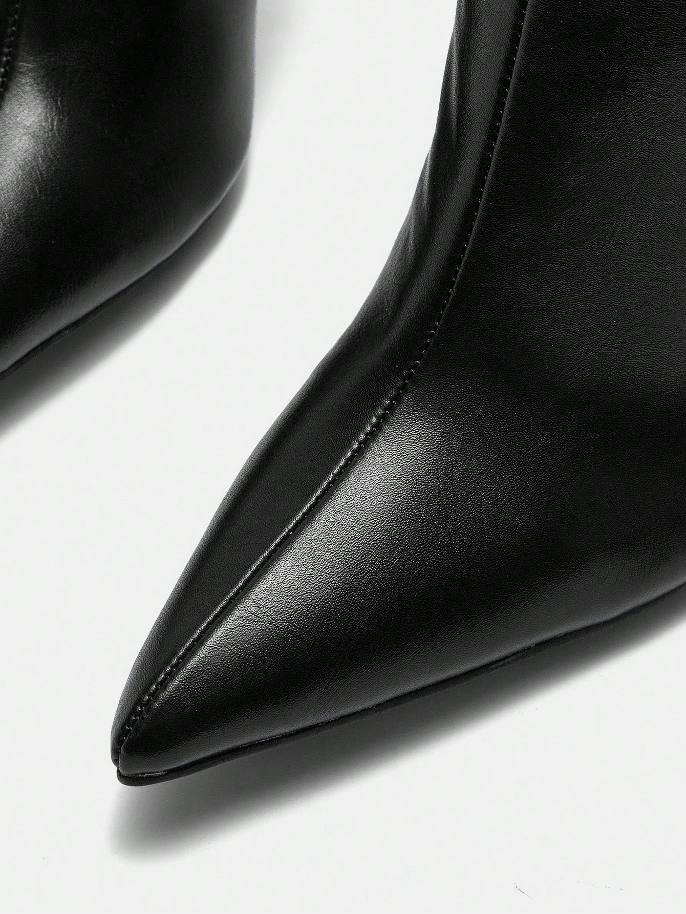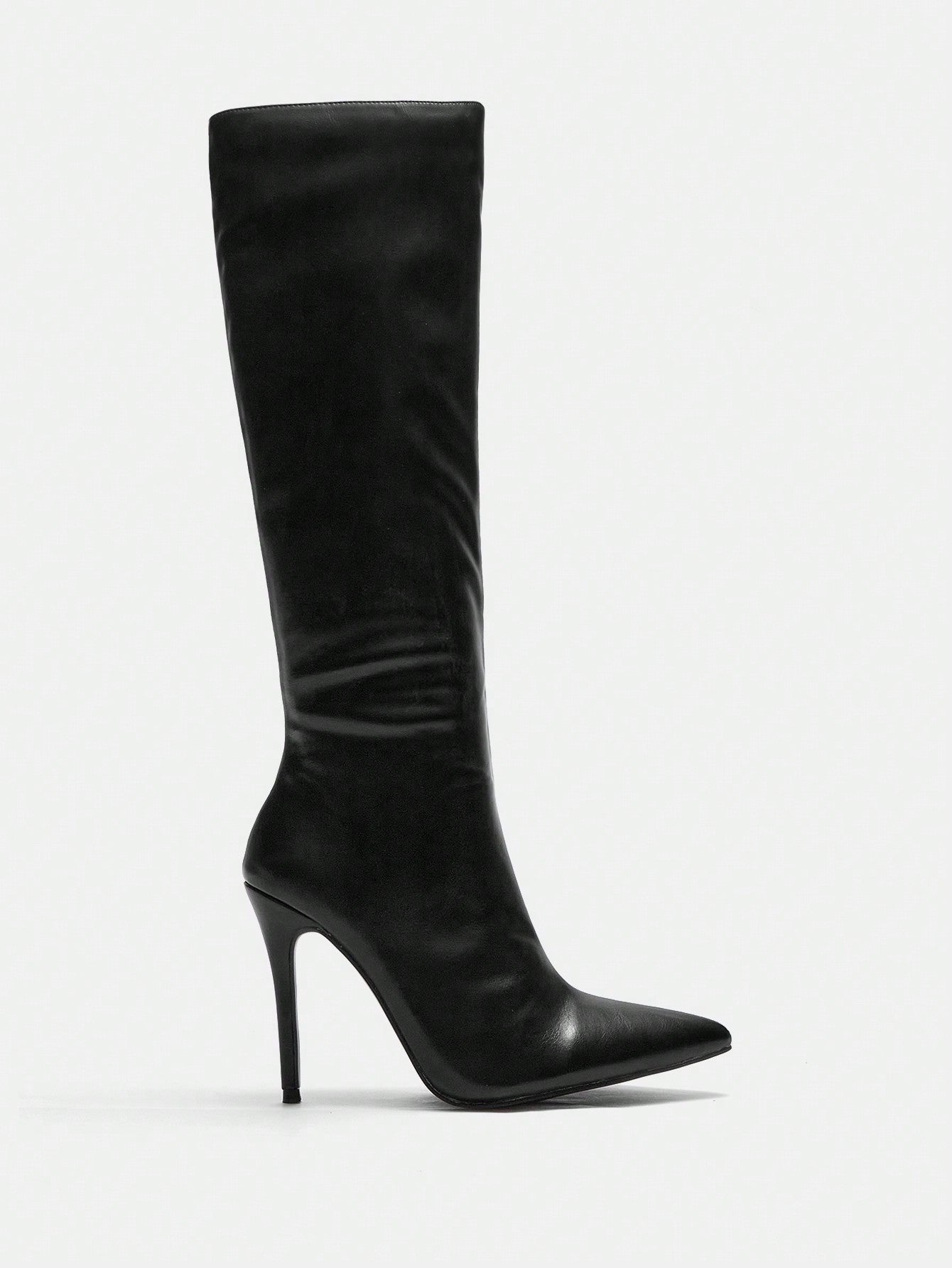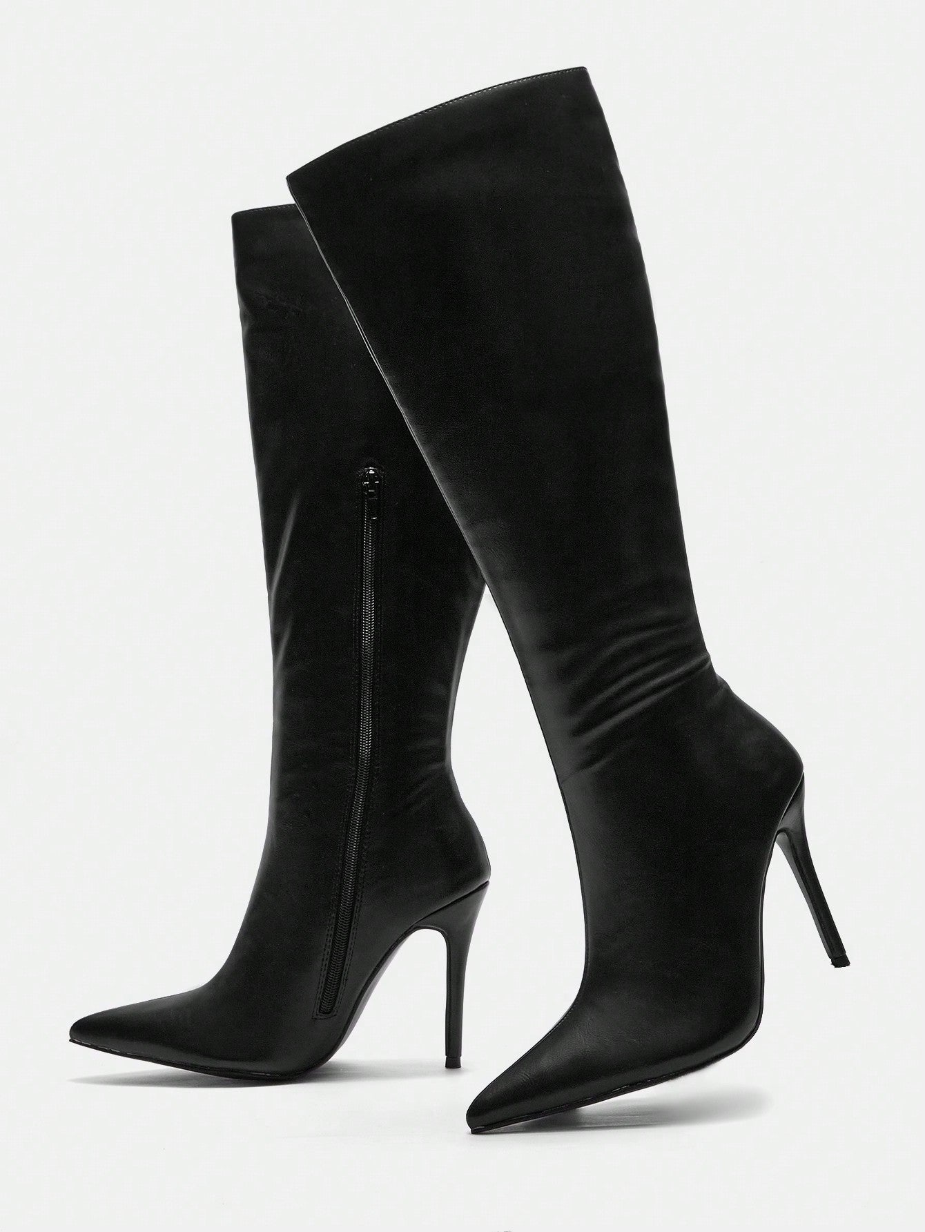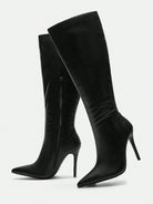 بوت نسائي أنيق من CUCCOO SZL، بتصميم بسيط وعملي، أسود اللون، يصل إلى الركبة، ذو مقدمة مدببة، مثالي لعيد الميلاد