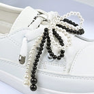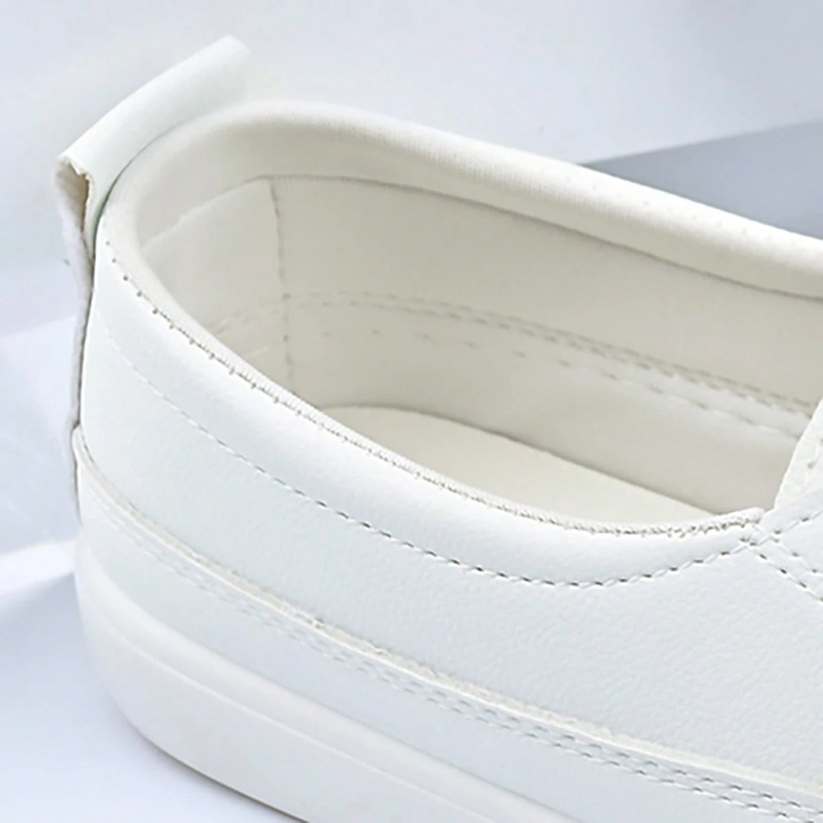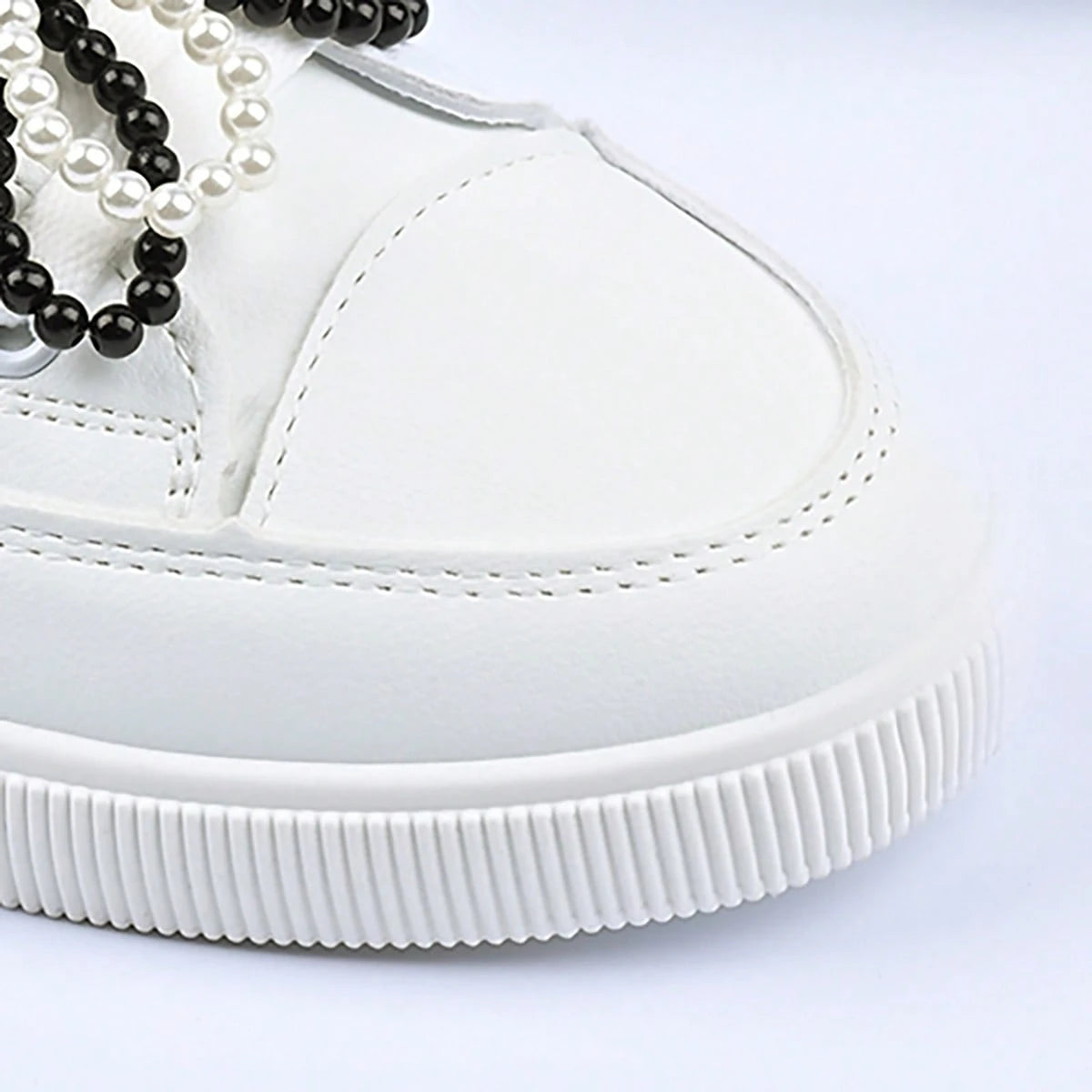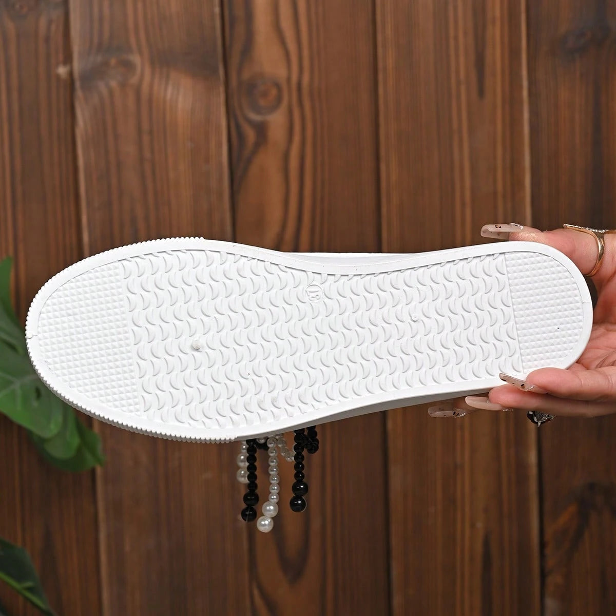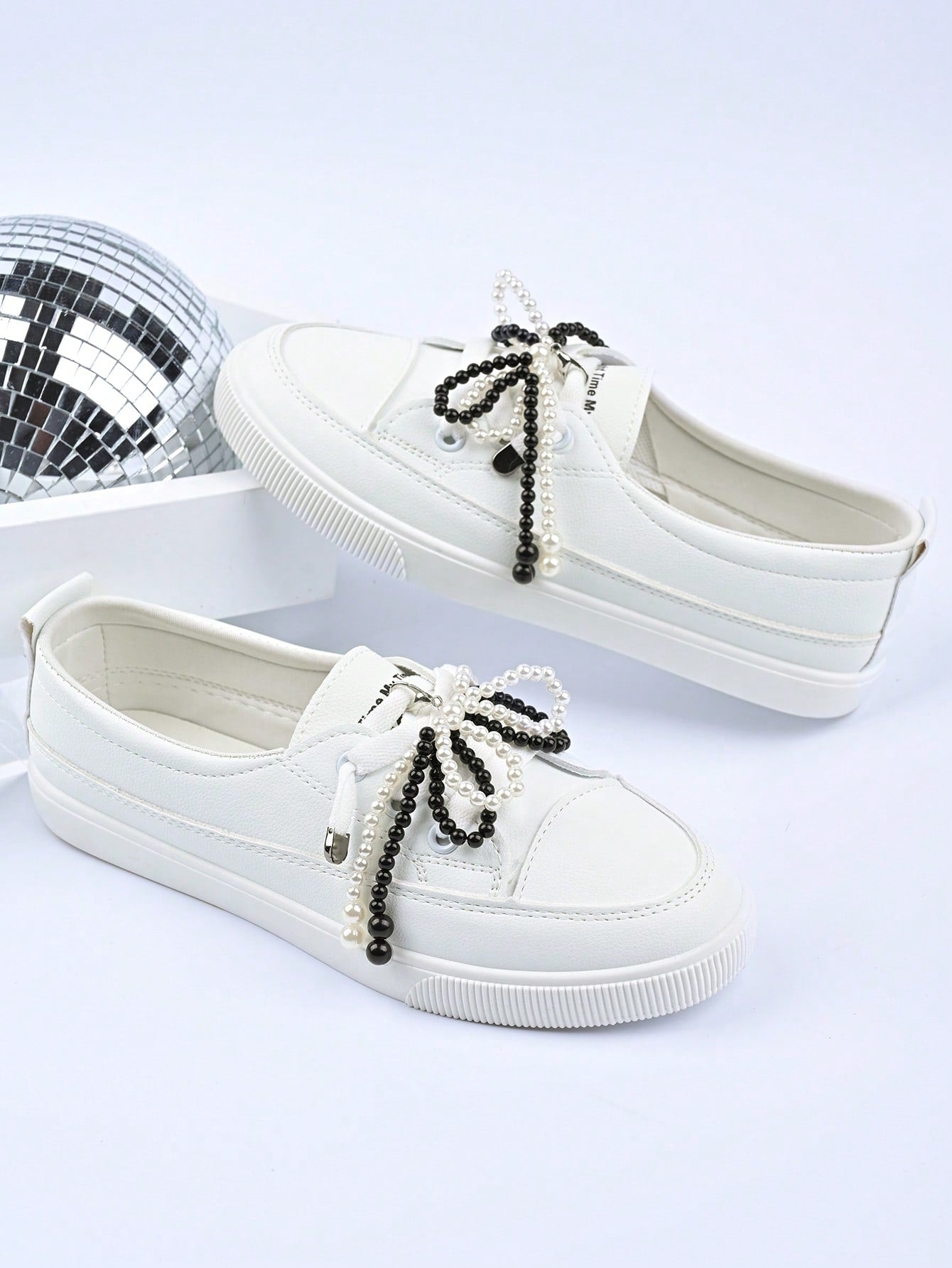 New Arrival Women Fashionable White Round Toe Lace-Up Faux Pearl Butterfly Decor Casual Slip-On Flat