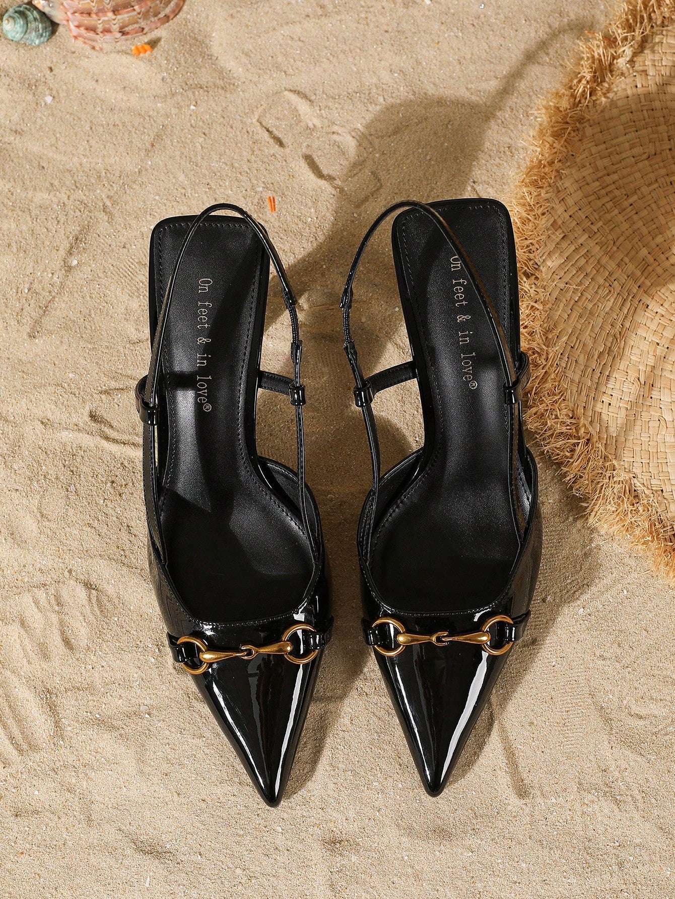On feet& in love Fall/Winter 2025 Women's Elegant Pointed Toe Metallic Chain Strap High Heel Shoes, Fashion