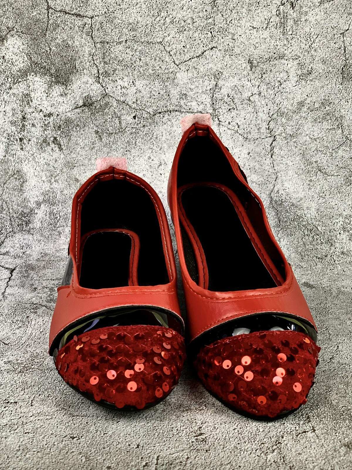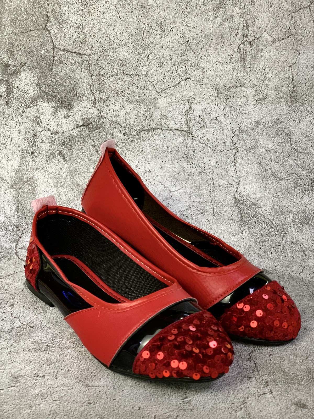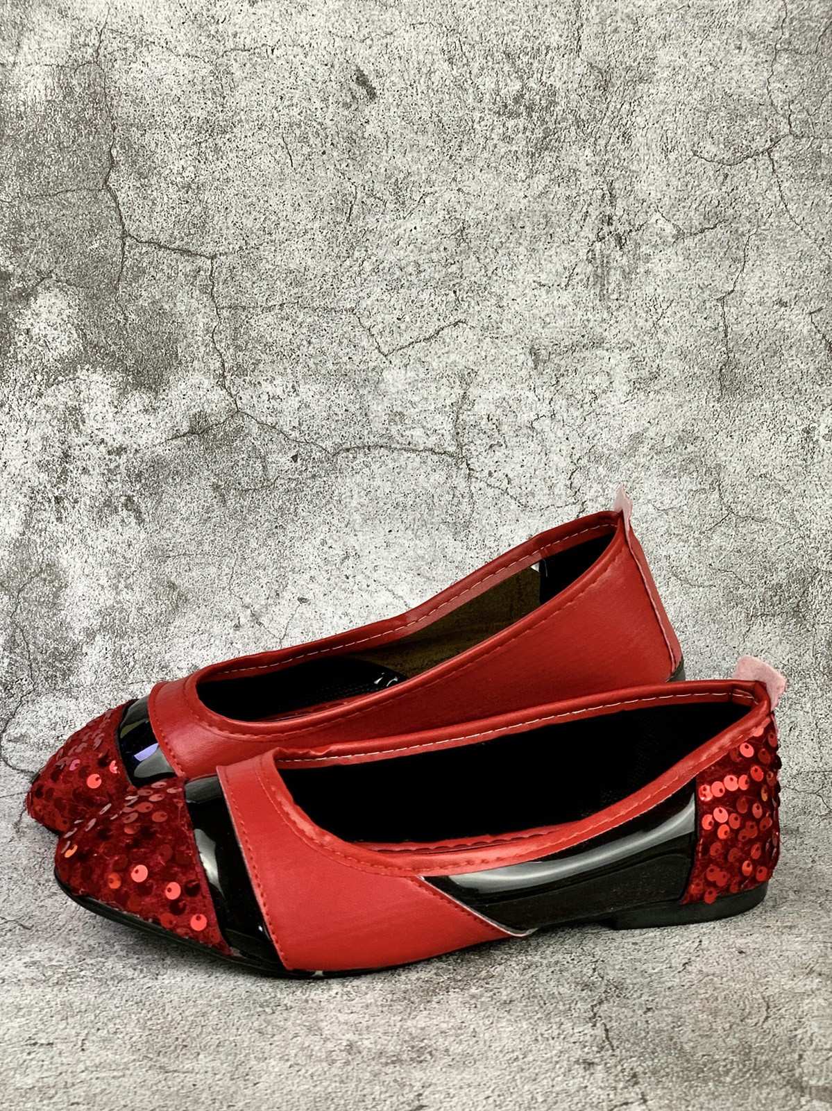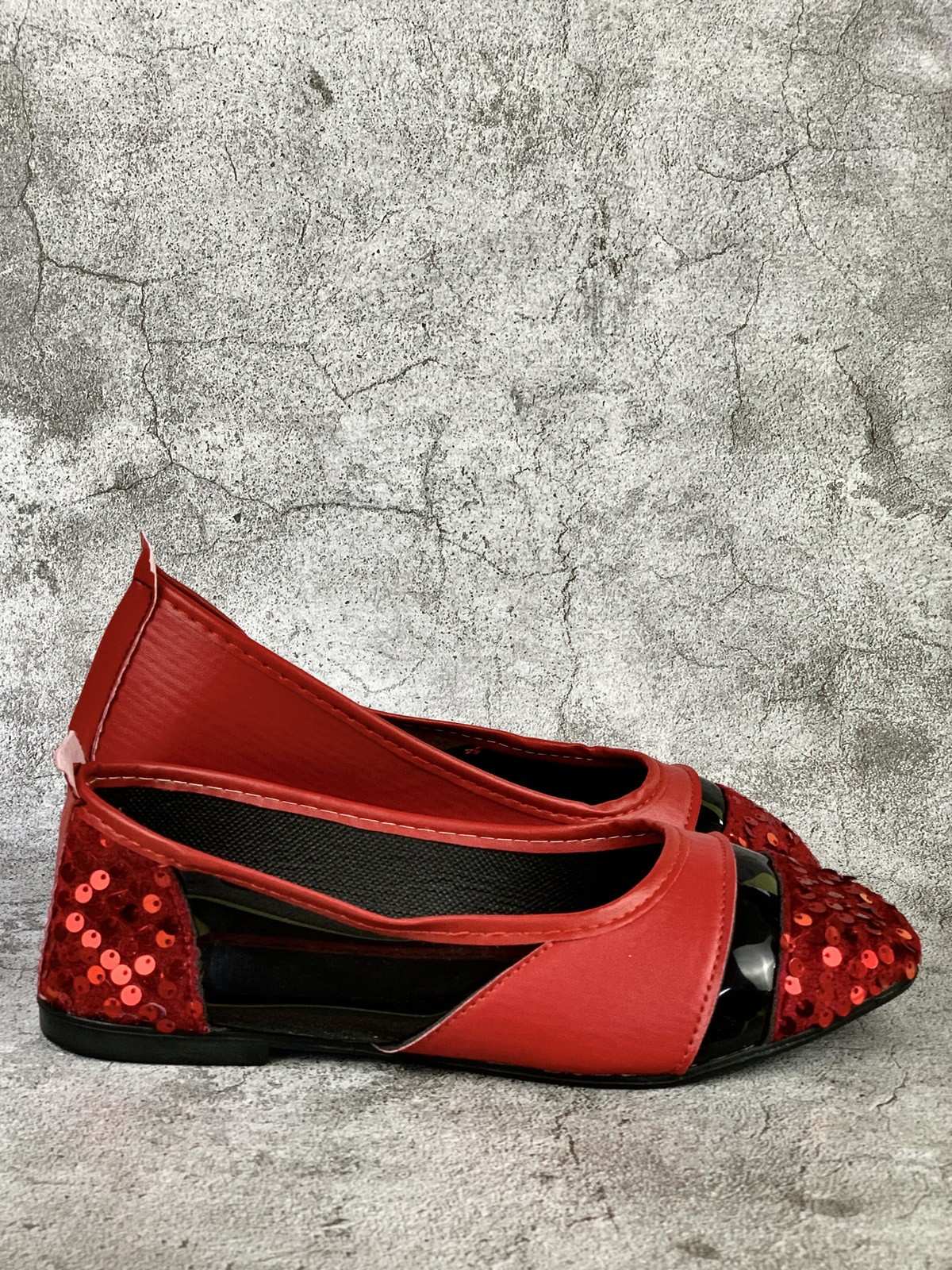 النساء - حذاء أحمر بدوائر مشرقة