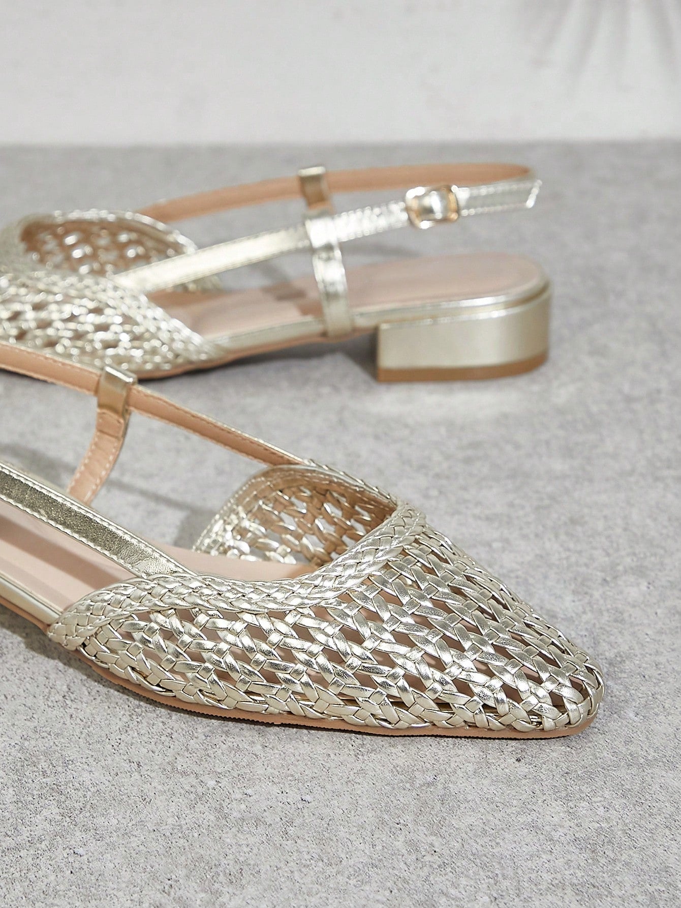 women SHUZIA Women Comfortable Slingback Ballet Flat Braiding Gold Heel Sandals Wedding Shoes