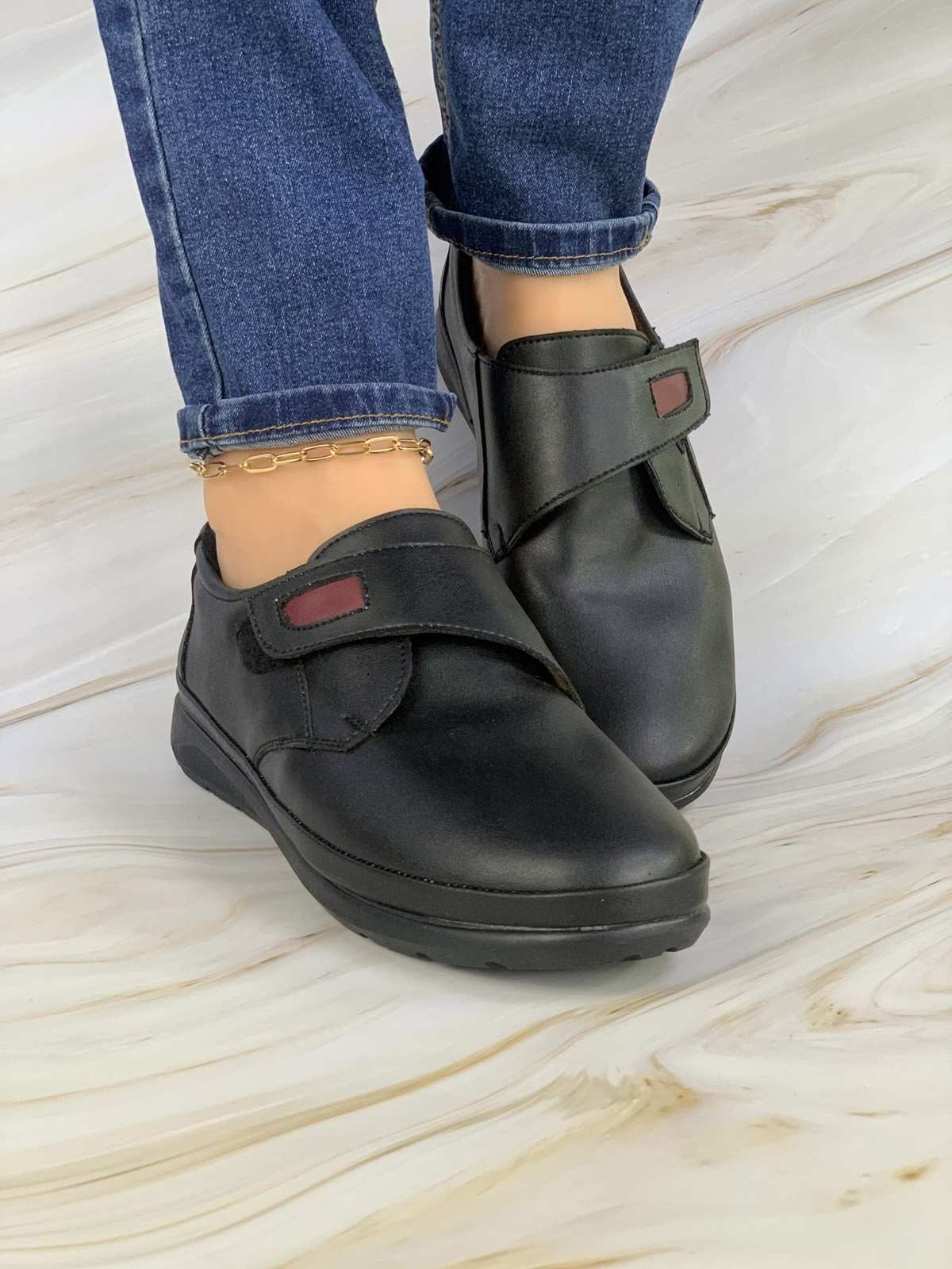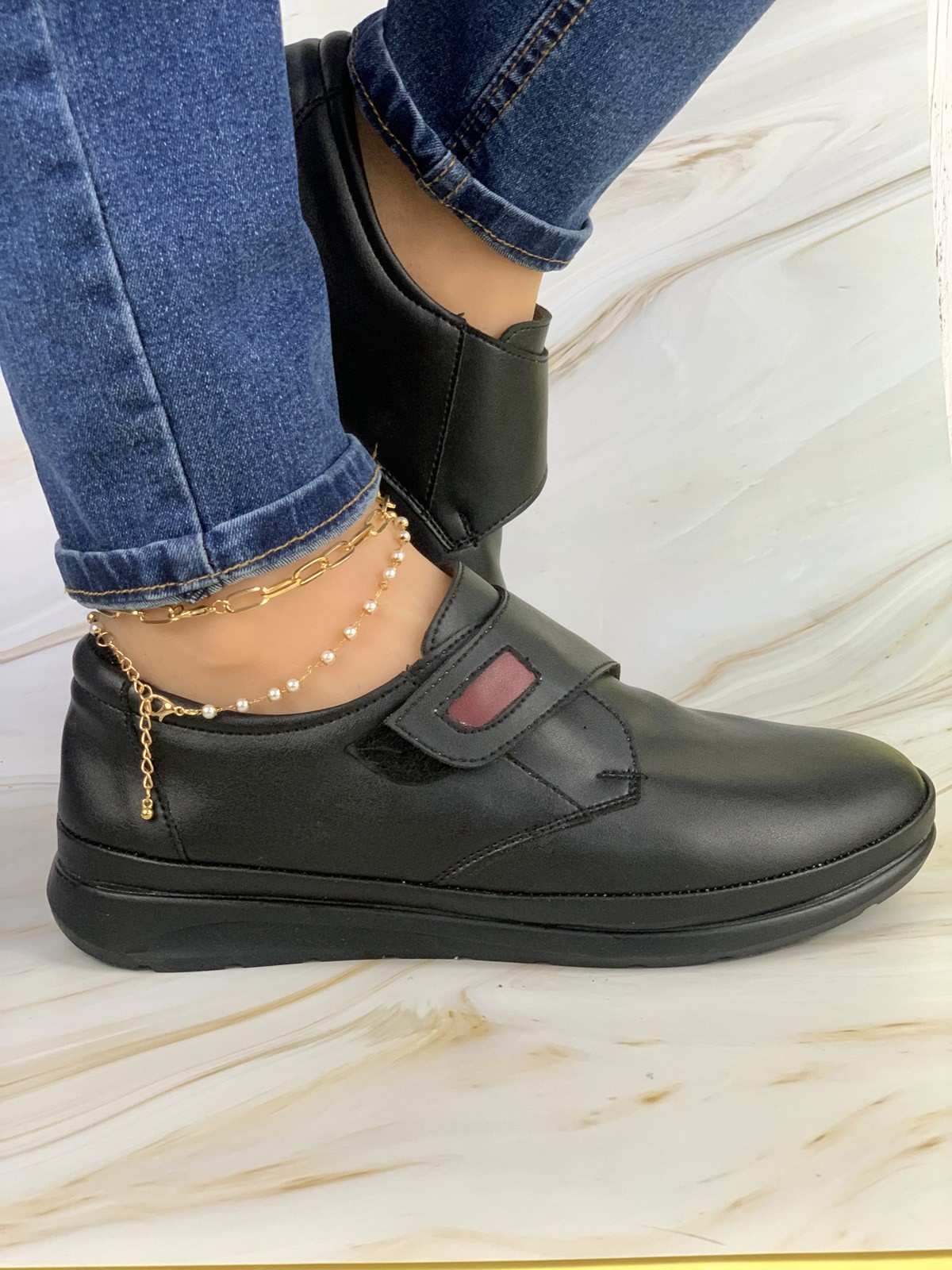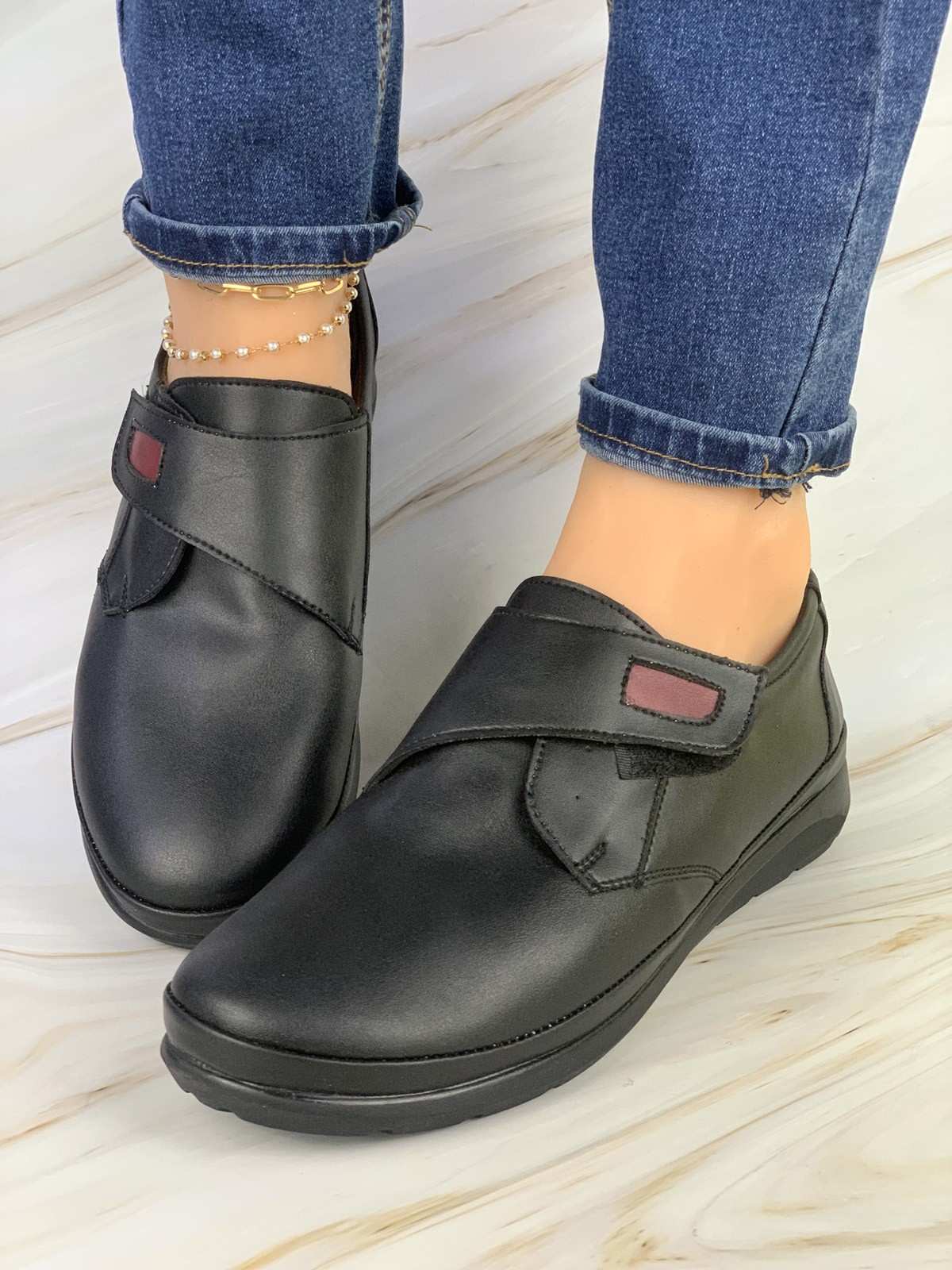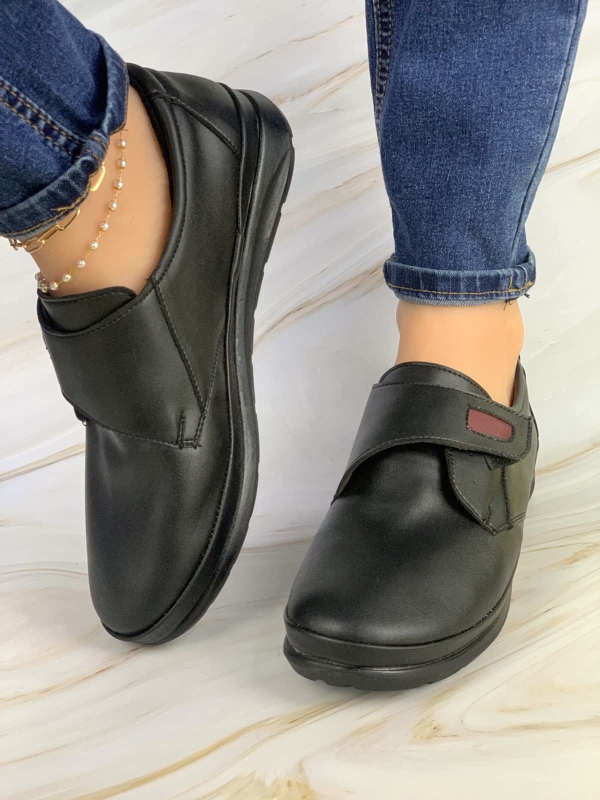 حذاء طبي نسائي مريح أسود لاصق Tsic Shack بكعب متوسط