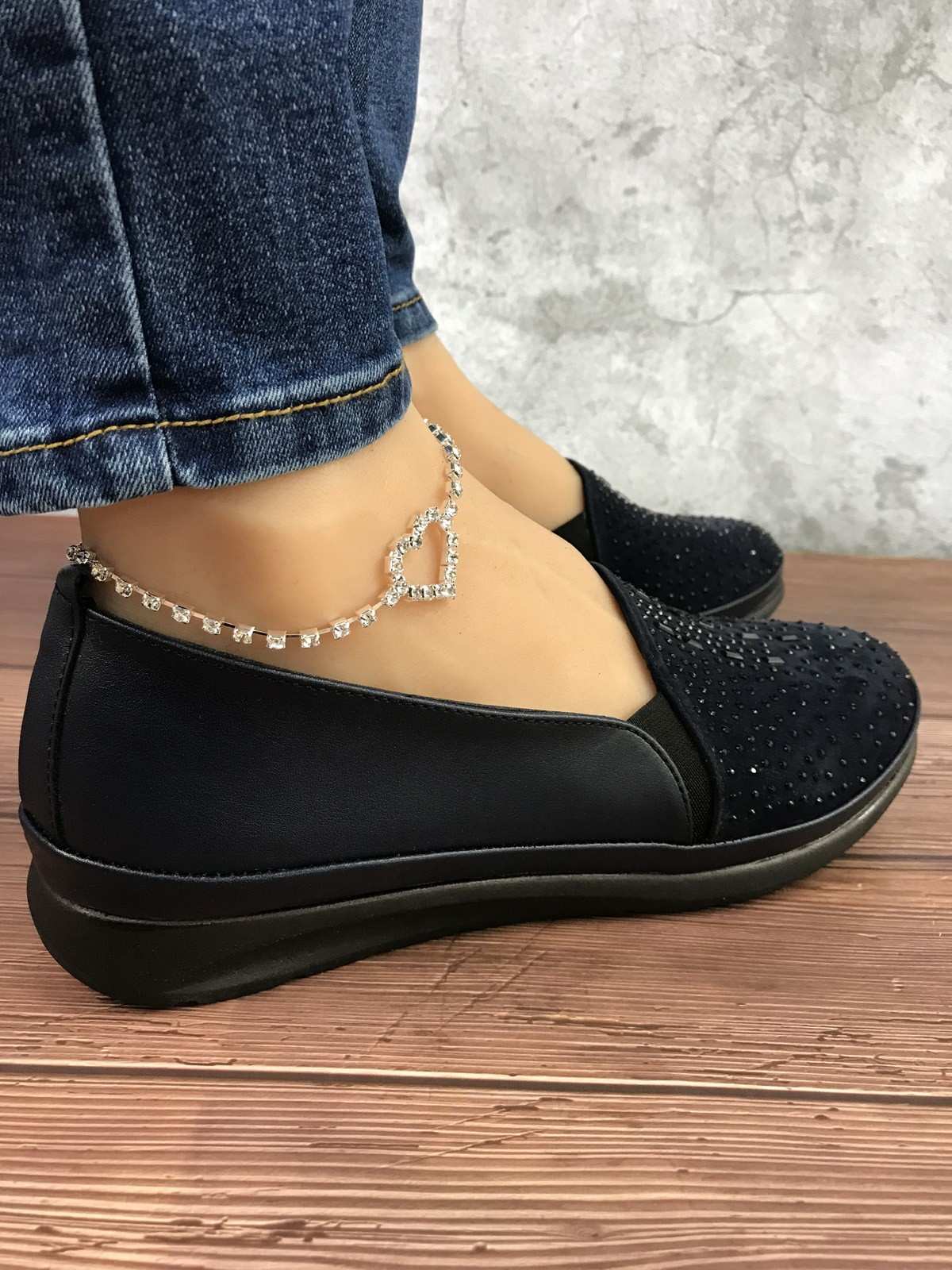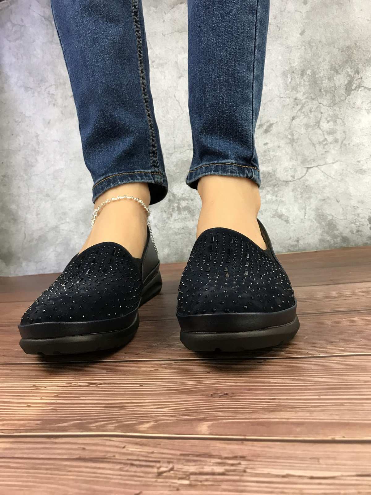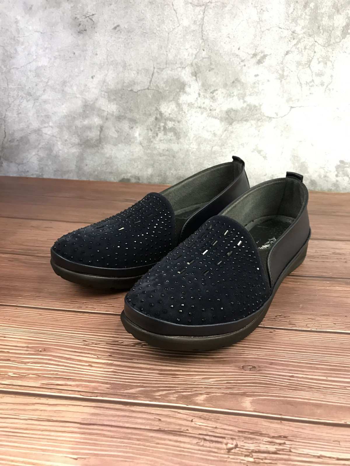حذاء قماش نسائي باللون الأزرق الداكن مع خرز، ونعل مطاطي