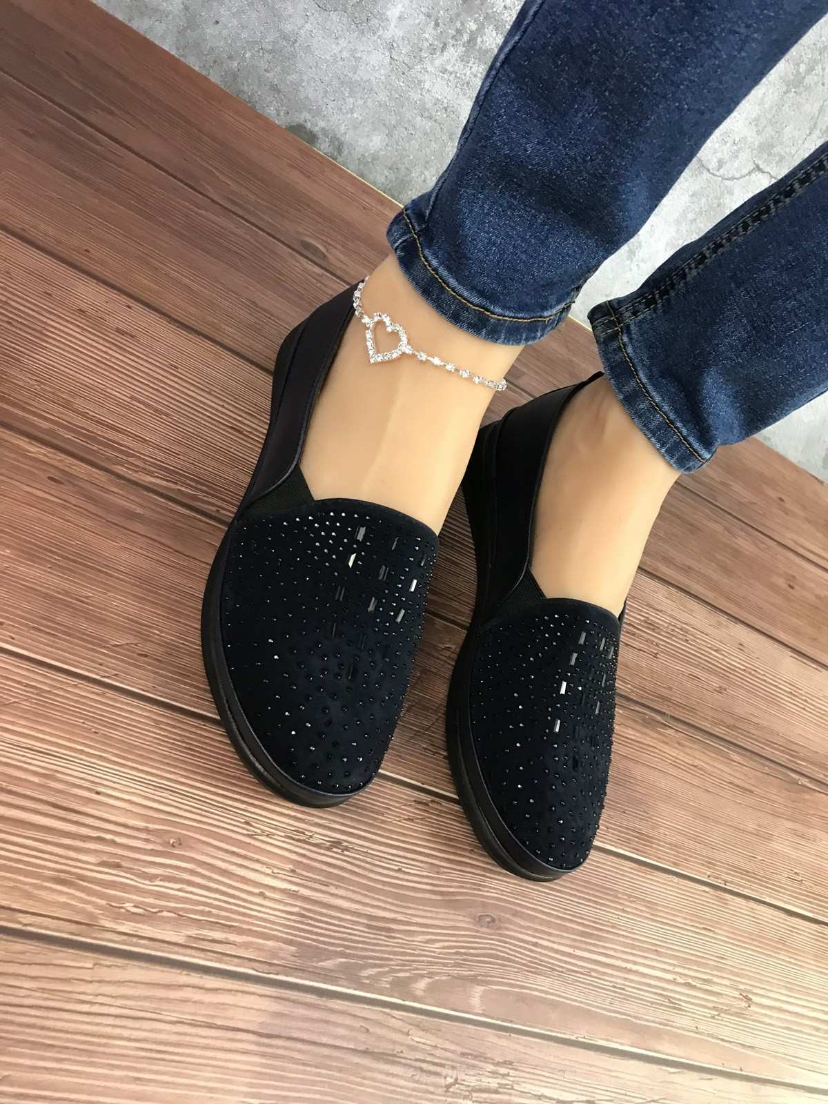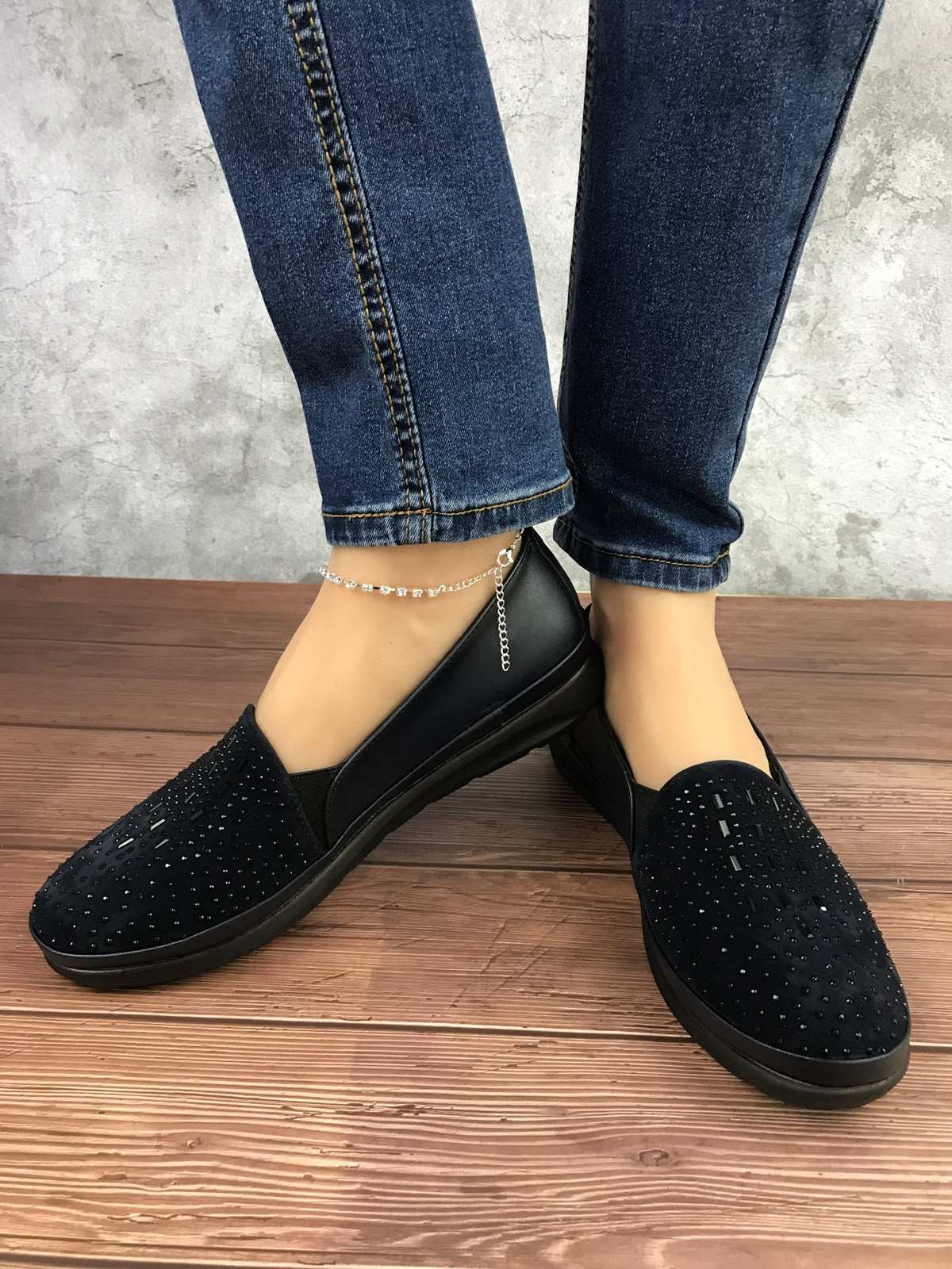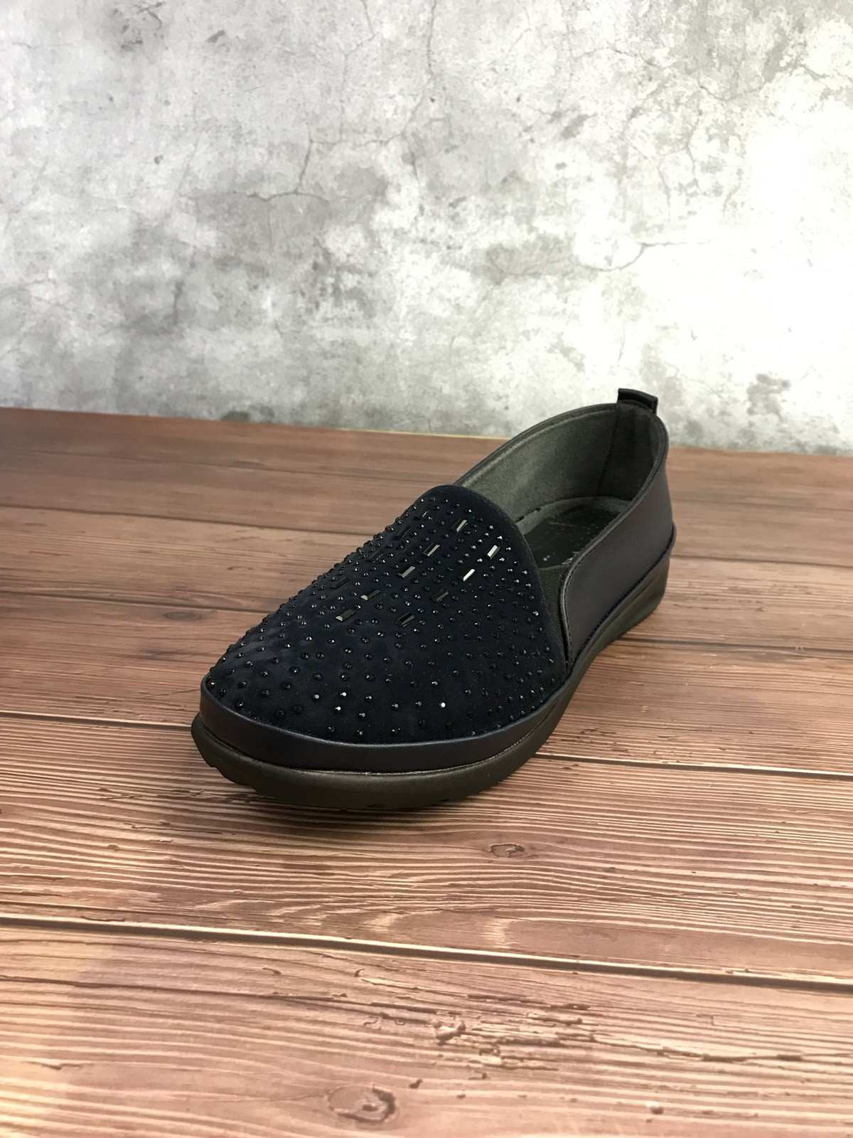 حذاء قماش نسائي باللون الأزرق الداكن مع خرز، ونعل مطاطي