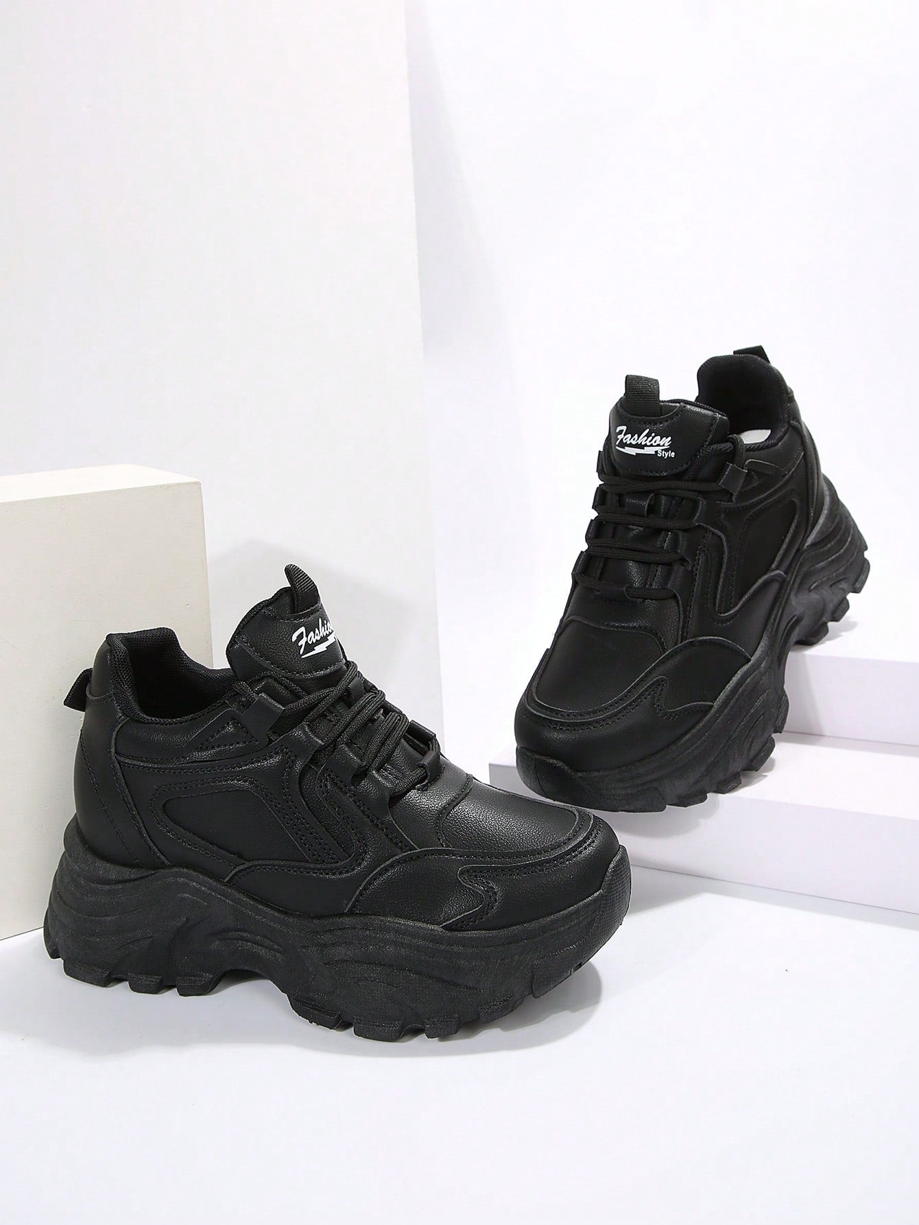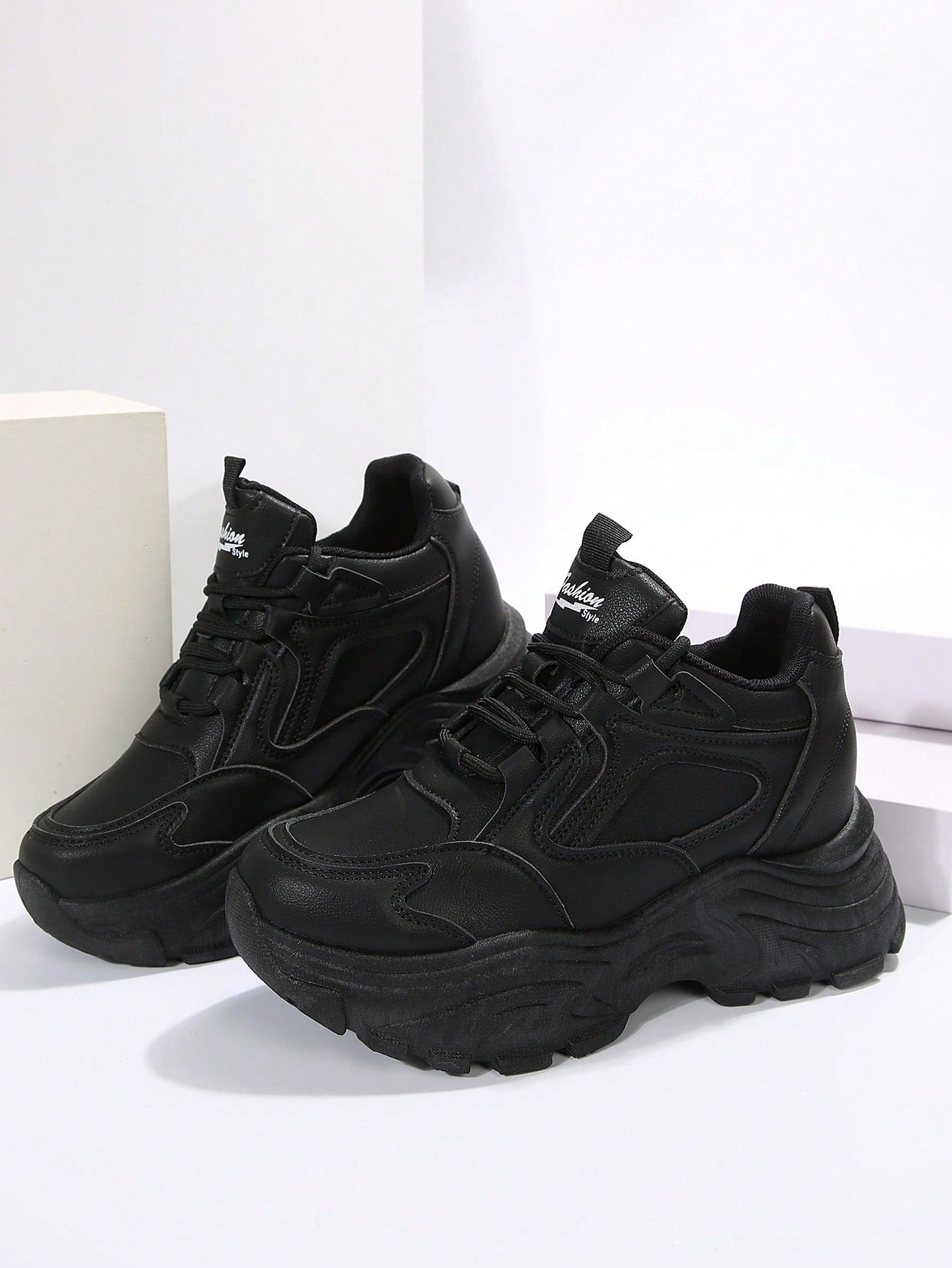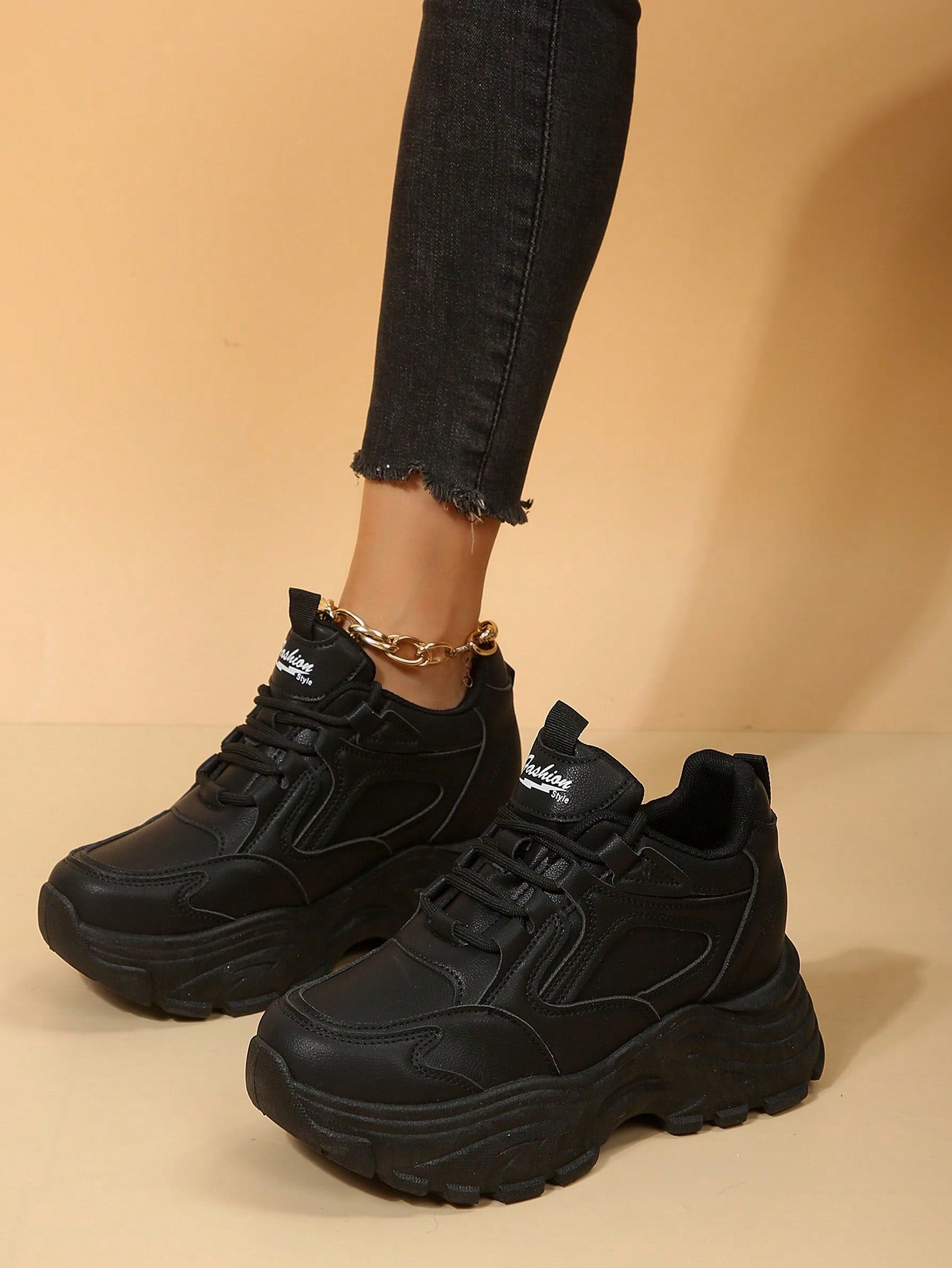 Women's Platform Wedge Casual Sport Sneakers, Black