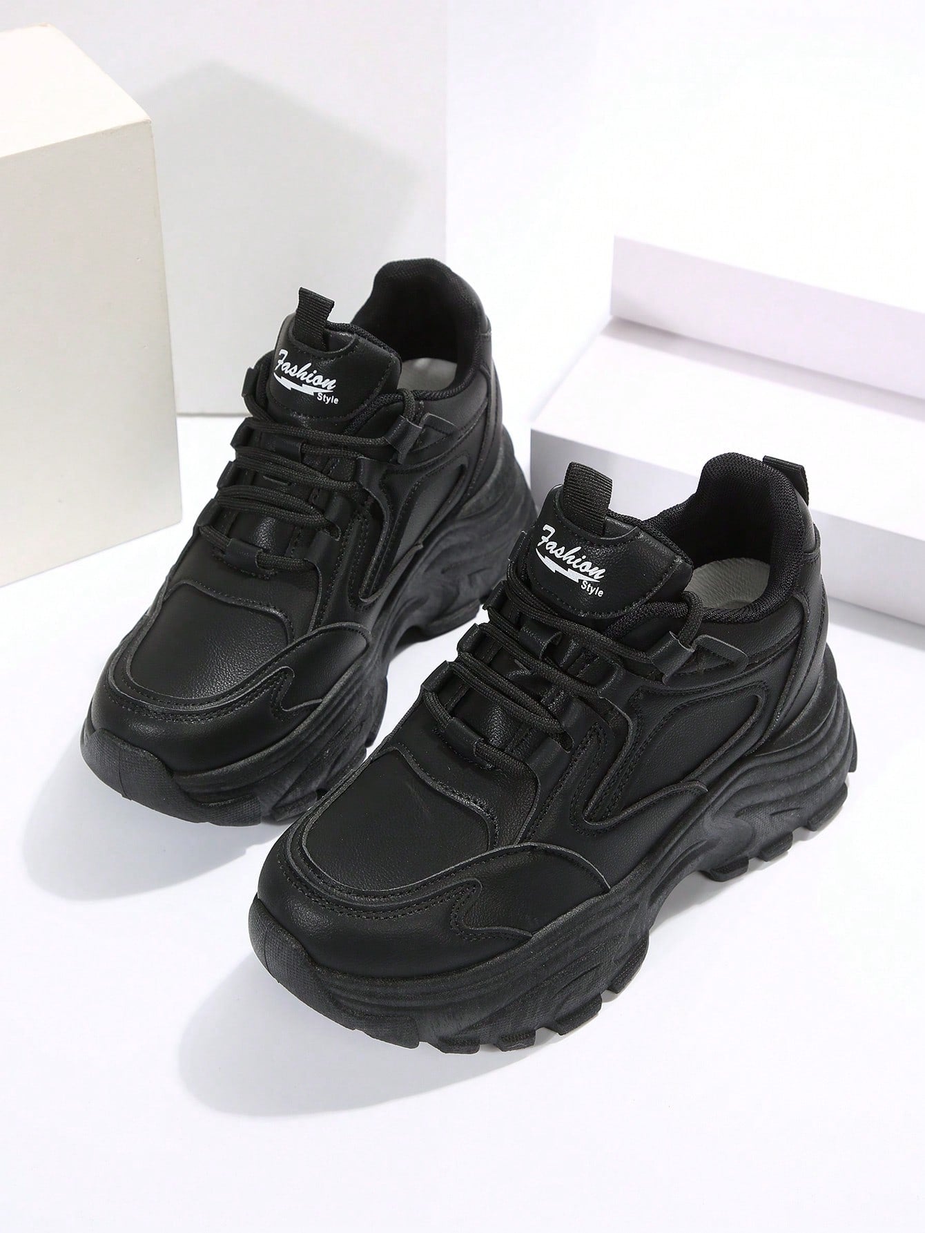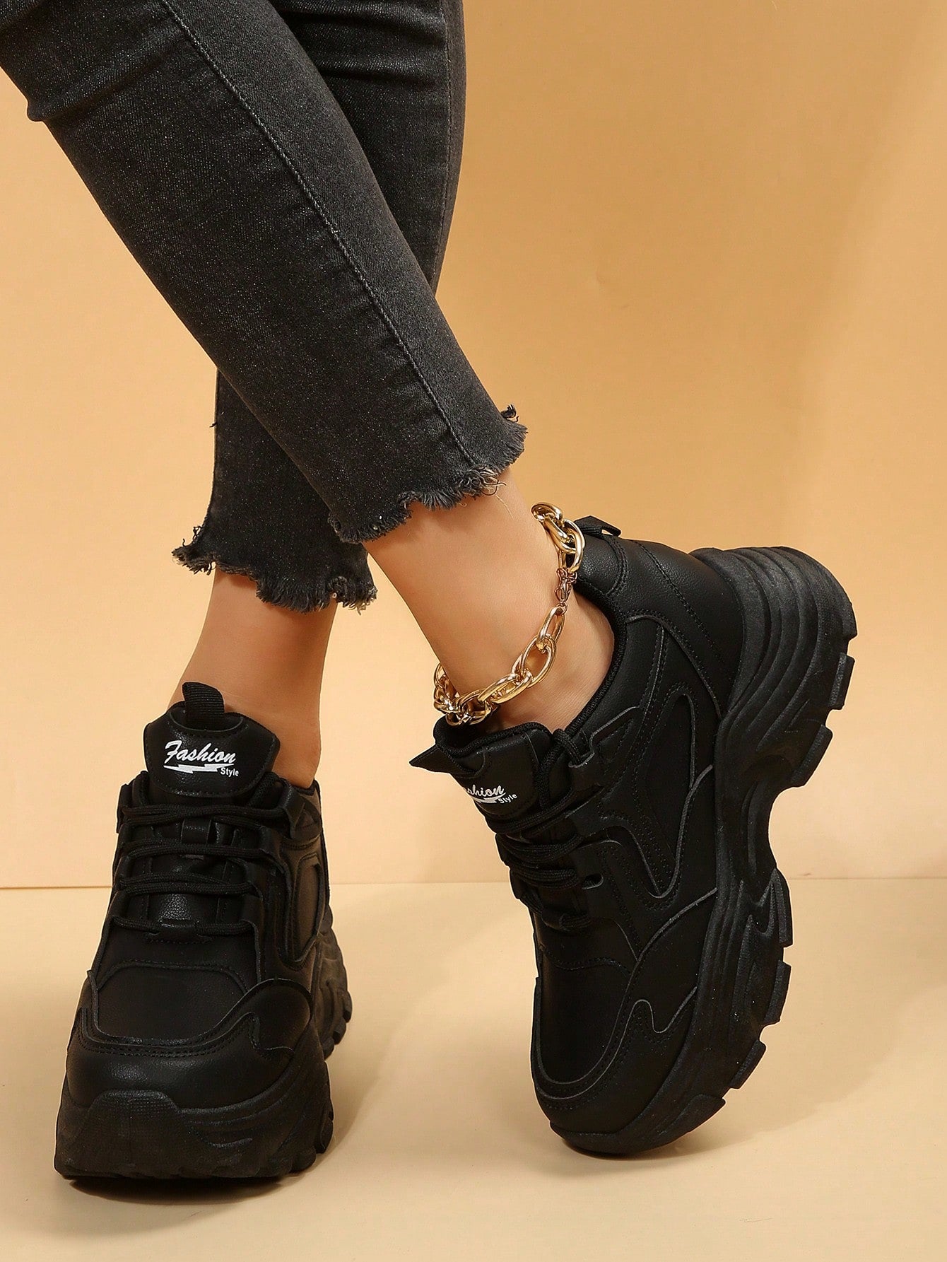 حذاء رياضي كاجوال بكعب إسفيني للنساء، أسود