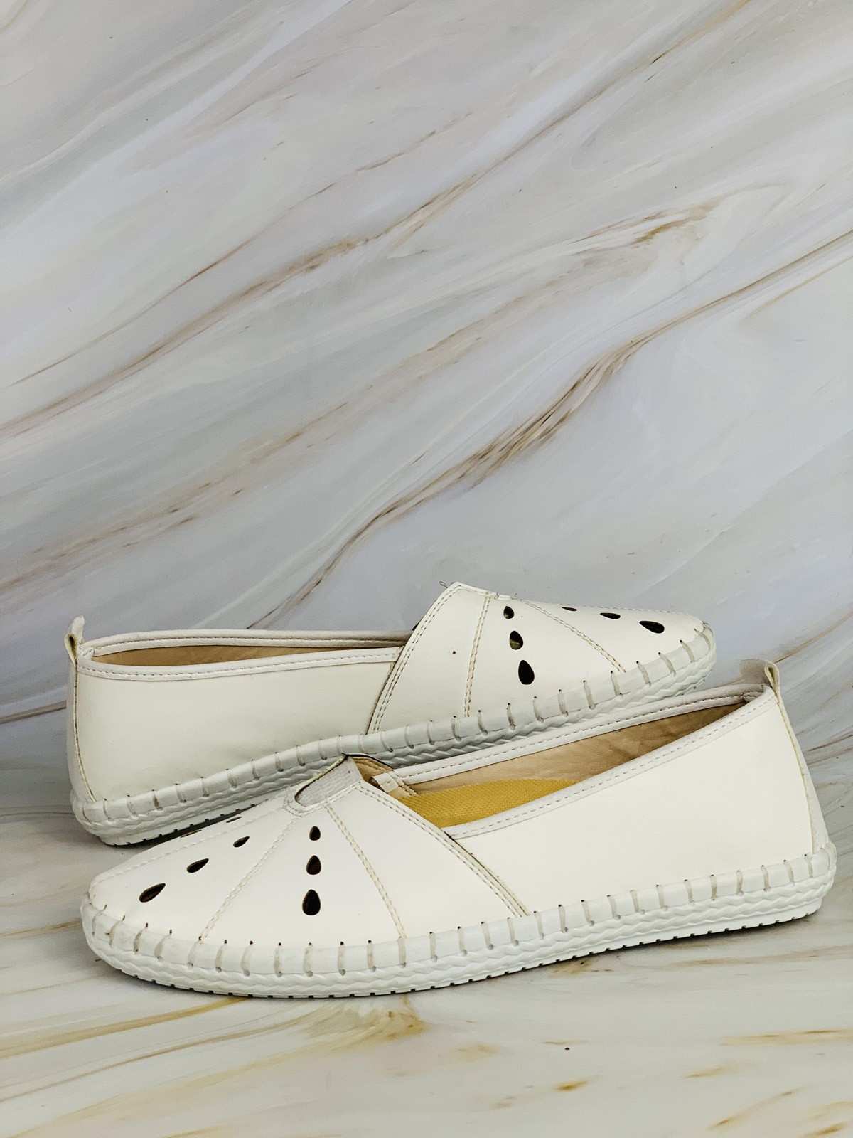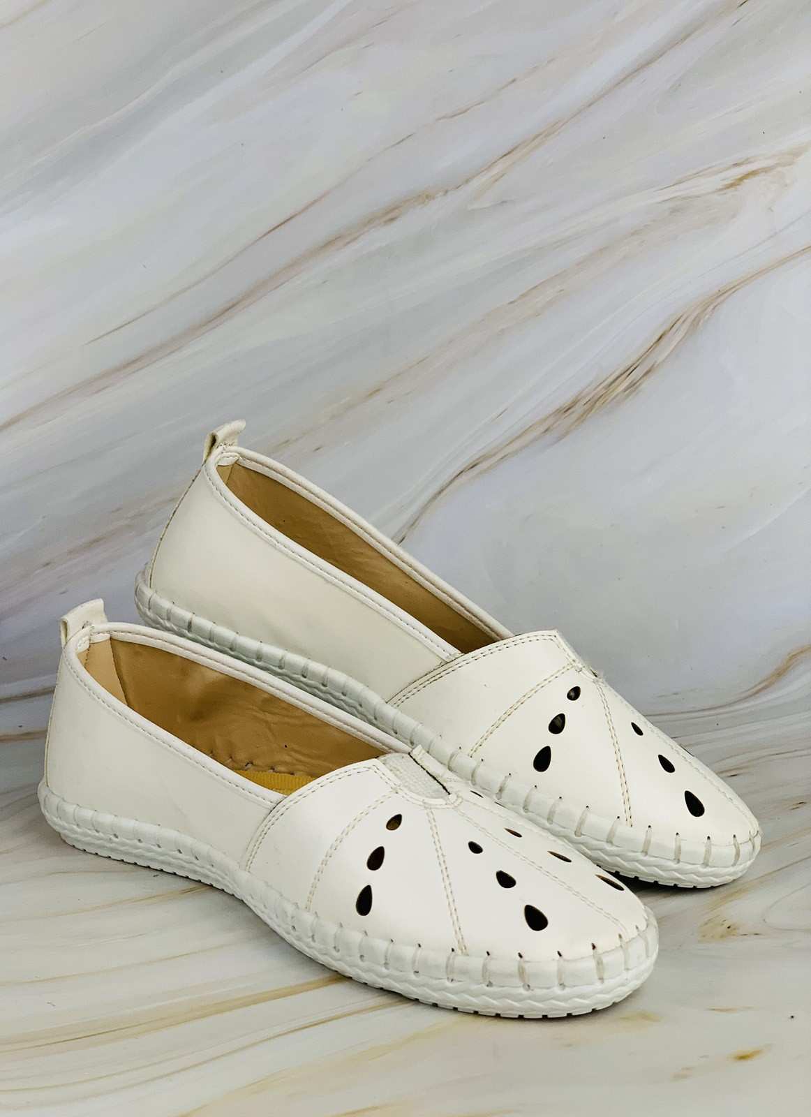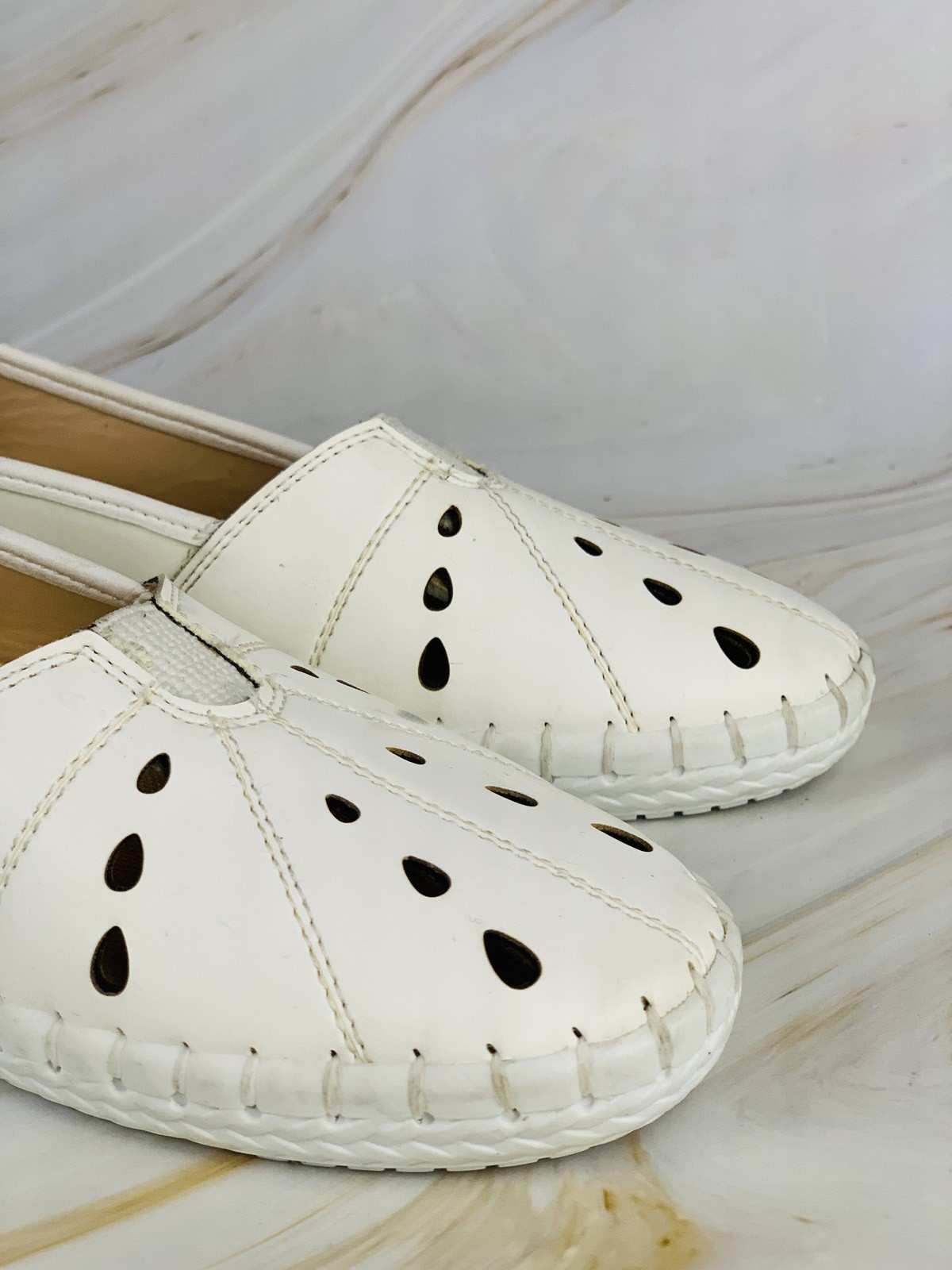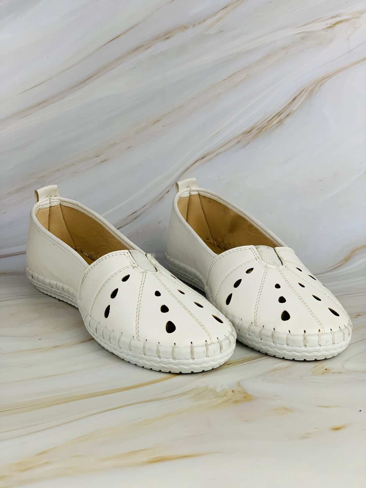 حذاء رياضي أبيض نسائي بفتحات تهوية مزخرفة