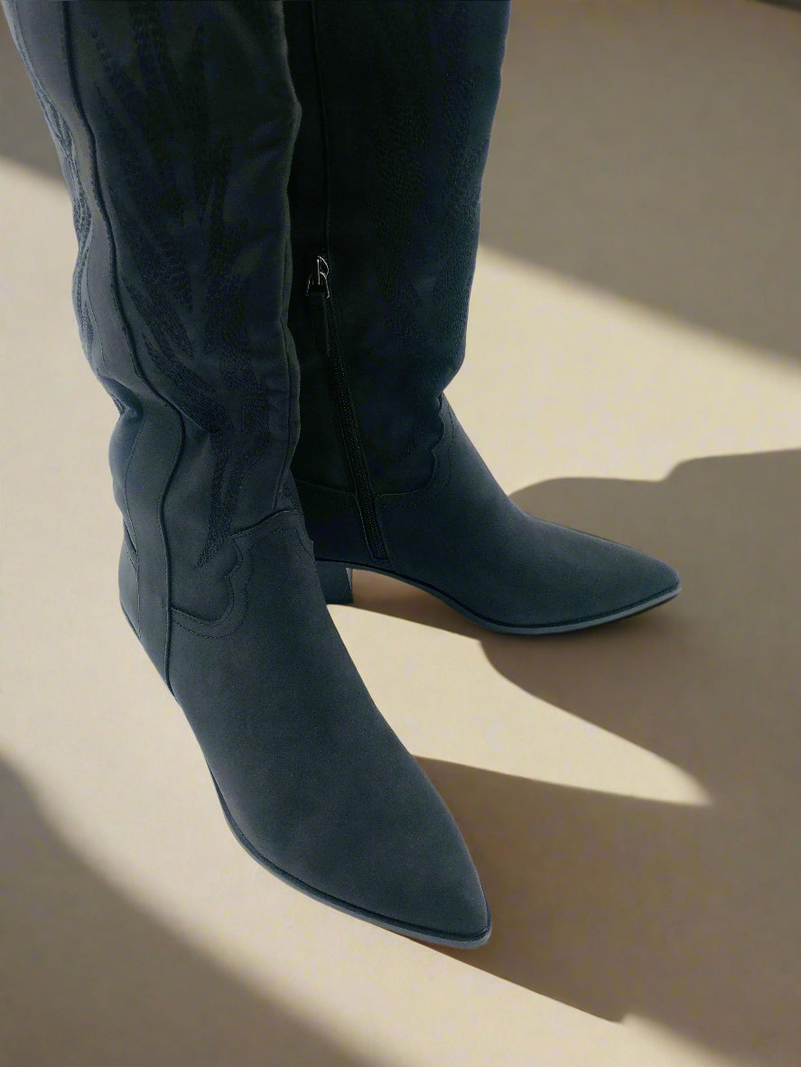 جزمة متوسطة الطول بمقدمة لوزية - أسود