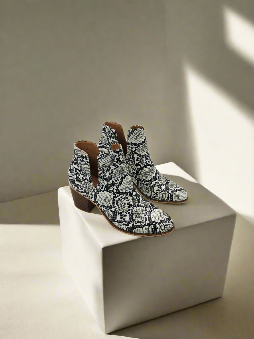 حذاء تشيلسي للكاحل باللونين الأسود و الأبيض بنقشة جلد الأفعى